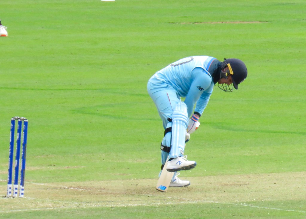 England’s innings started with Jason Roy surviving an LBW call, from the bowling of Trent Boult, the umpire said no, the DRS said umpires call. Phew!