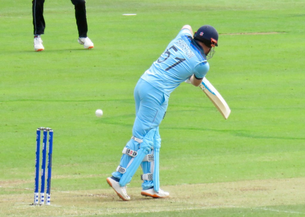 De Grandhomme came on from the Pavilion end and put down a catch, Bairstow had fired the ball back at him hard, but it was catchable. England’s 50 came up in the 14th over with a streaky Four from the edge of Bairstow’s bat.