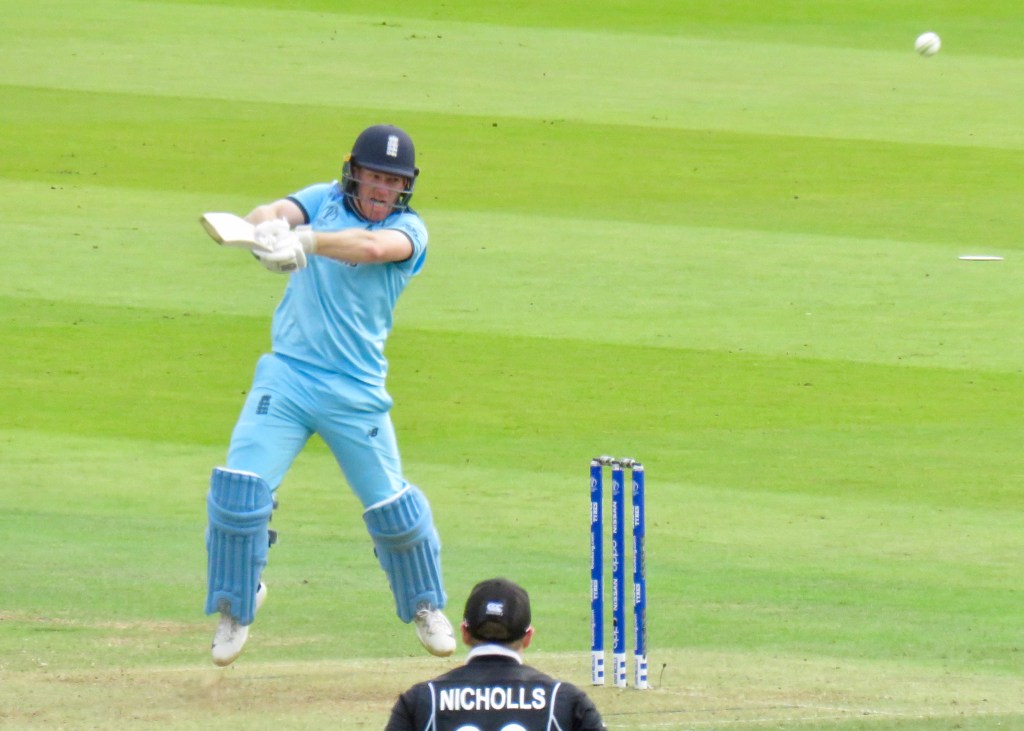 However there was to be no big score for Roy in this final, he was lucky with a ball from Matt Henry, it sailed past his bat, but, no such luck with the next, he nicked to Tom Latham, and was out for 17. England were 28 for 1 in the 6th over.