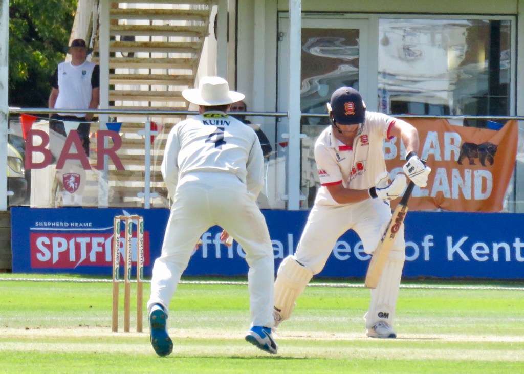 That of course kept Kent in the running and the Essex fans biting their nails, Westley and Ten Doeschate did the being patient thing. Westley had batted for 77 minutes for his 25 before he left a ball from Claydon, he left, Claydon hit, he was gone and Essex were 82 for 5. Ten Doeschate was despatched by Claydon in his next over, caught by Robinson, he’d made 17 and Essex were 84 for 6, still in need of 69 to win this match. Kent needed 4 wickets.