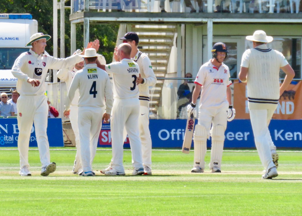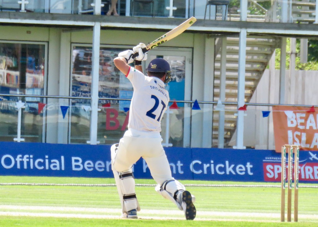 In 18.5 overs Kent were bowled out for 40 runs! So, what happened? Sam Cook basically, it felt like he was going to take a wicket with virtually every ball. He bowled 9 overs, including 2 maidens, in the space of those 54 balls he took 7 wickets for just 23 runs, it was literally incredible! I think the best thing to do here is to list the wickets, it’s the kind of scorecard you’ll rarely see. Kent have 4 lower scores – 18, 20, 27 and 37 all in the 1800’s. This 40 all out surpassed their next lowest of 47 which happened 166 years ago.