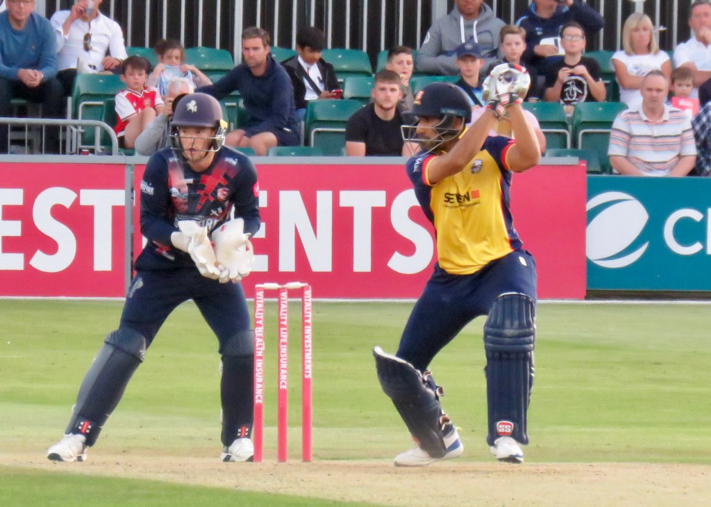 Bell-Drummond opened Kent’s innings with Zak Crawley. Jamie Porter dismissed Bell-Drummond for 10, when Bopara took a stunning catch! Kent were 47 for 1 and Fat du Plessis was in at 3, he’s at 11 in the World rankings for T20. He scored 32 from 21 balls, hitting a Four and 2 Sixes. This was a man who could take the game away from Essex, step up Bopara, another catch and another wicket, this time from the bowing of Adam Zampa.