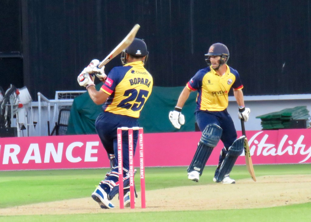 Bopara finished the innings on 47 from 27, a second not out in 2 days, helping his personal averages and Essex to 189 for 6.