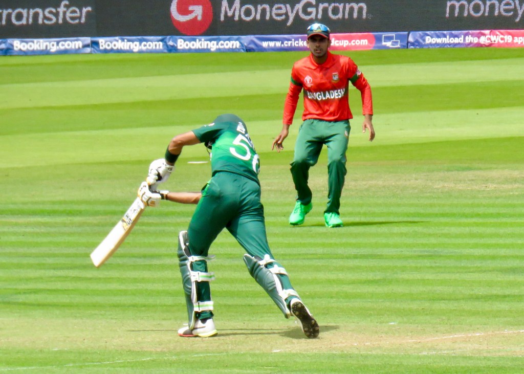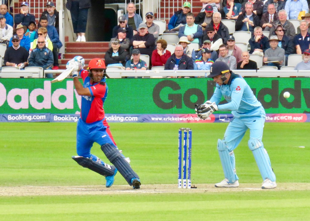 Lord’s was next up, with Pakistan v Bangladesh, that multiplied the sound levels no end! Both sets of fans are incredibly passionate and great fun! Pakistan batted first and made 315 for 9, the centurion this time being Imam ul -Haq, he scored 100 in 100 balls, being out in an unusual way, hitting his wicket. I’d seen Shoaib Malik do it in a spectaular way earlier in the summer, so that was twice, ever for me. Babar fell just short of his century with 96 from 99 balls.