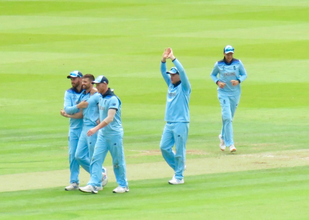 England made 226 for 2 in just over 32 overs. Jason Roy who’d missed a number of games, top scored with 85 from 65 balls. England were in the World Cup Final!