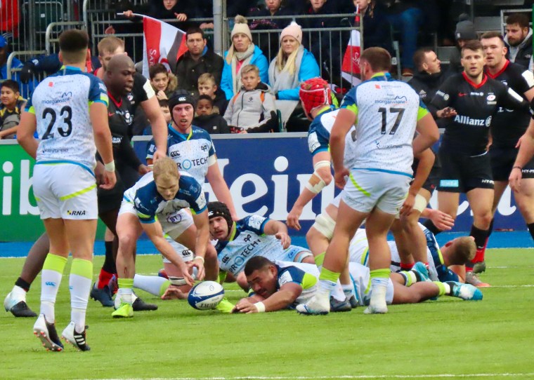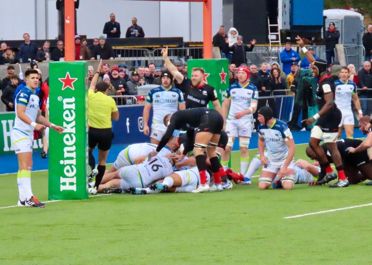 What those stats all add up to is an emphatic win for Saracens, they scored 5 tries, with Segun powering in, at speed, for 2, Lewington combining with Segun to score out on his own wing. Add to that two muscle/forwards tries from Singleton and Barrington and a penalty try awarded, just before it was touched down.