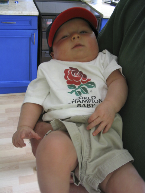 So, how did it happen? Debs was pregnant with Ben during the 2003 World Cup and an England rugby kit was bought before Ben was born, boy or girl, it was being worn. Coincidentally Ben was born in the same hospital as both Jonny Wilkinson and Toby Flood!