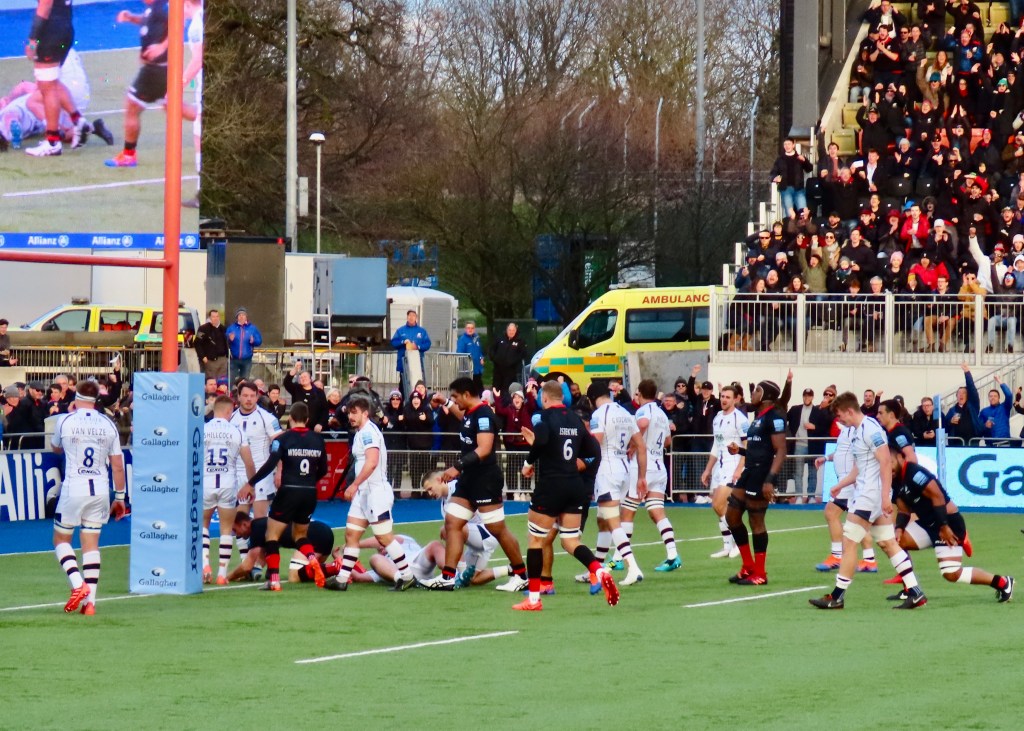 And now to the rugby, Saracens fielded a strong team, with a mix of experienced senior and up and coming young players. The combination proved to be one that produced 10 tries for the home team. So many I’m going to give the try scorers a bullet list!