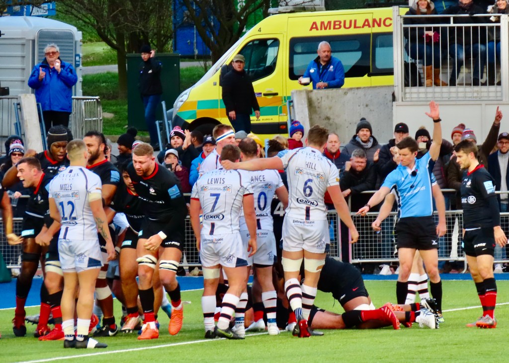 Unfortunately this match won’t be remembered for the 10 Saracens tries, but for a shocking incident involving the Warriors replacement Lock Michael Fatailofa. He went into a challenge with his head in the wrong position, he fell to the ground and didn’t move. It was awful to see, his legs were in a really awkward position, it took a good 10 minutes for him to be taken from the field straight to an ambulance.
