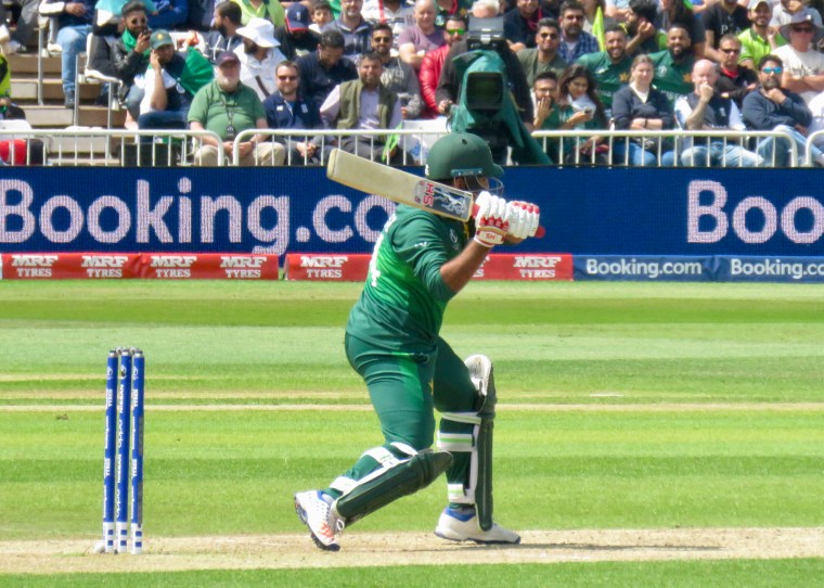 Babar, who’d come in at 3 was joined by Hafeez, neither are big hitters but both are a delight to watch. They put on 88 in 12 overs, it was hard to see where a wicket was going to come from. It took a second Woakes/Moeen combination to see Babar back into the pavilion. Another boundary catch and Babar was gone for 63.