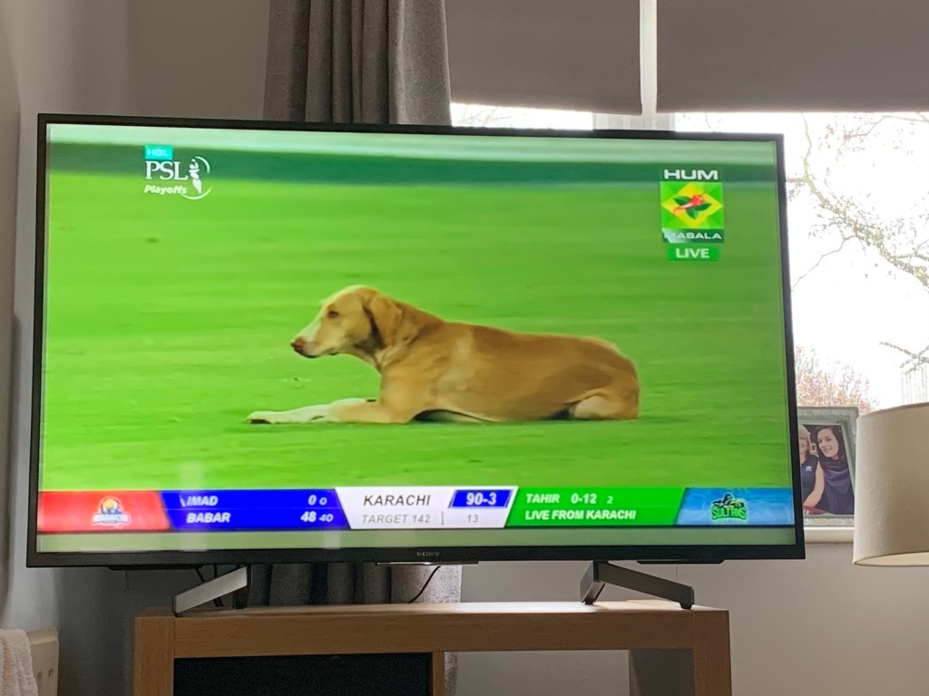 I mentioned a second meme moment, so must mention the dog that decided to join the game and settle himself down on the outfield – Dog Stopped Play – is an unusual one!