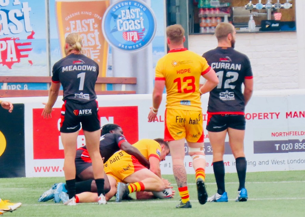 The score had moved to London Broncos 32 Swinton Lions 24. Jarrod Sammut had really been instrumental throughout for Broncos and he has the last word with a great run being finished off with a leap over the line, the leap was under the posts leading to a successful conversion. The game finished on Broncos 38 Swinton 24. Although disappointing for the travelling fans their team gave them something to be happy about, I heard one of them describe the game as ‘very honourable’. It was an enjoyable game, no question.