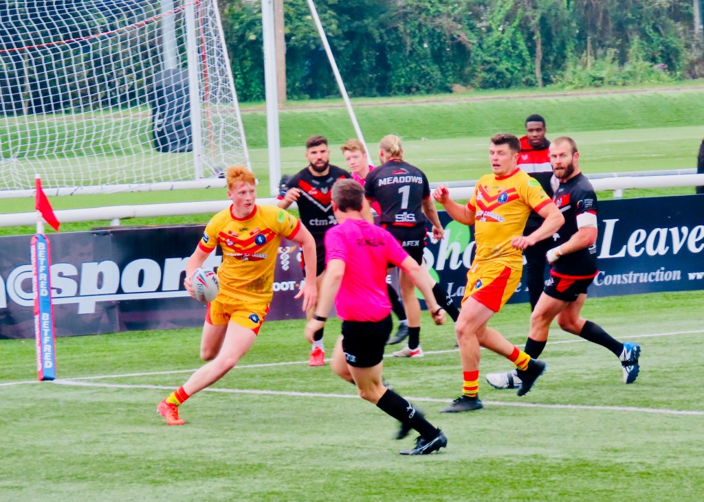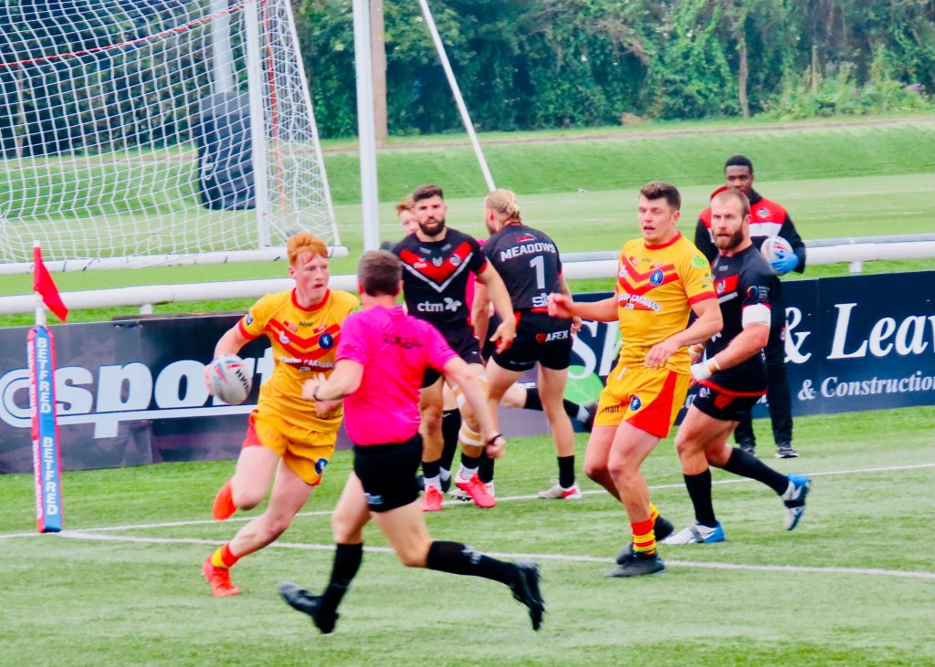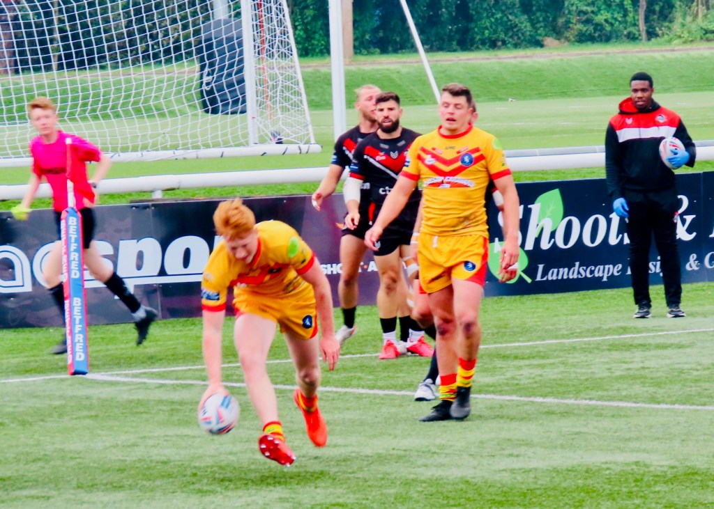There are sevral play makers across the game that stand out and are well known throughout, one such, Jarrod Sammut. He’s been playing his trade for 10 years in this country, including a season with Wigan, he makes things happen and that was most certainly the case for Broncos second try. He put up a high ball and was then there to bundle the receiving Swinton player into touch. That gave the ball back to Broncos, with scrums no longer used to re-start the game things are so much quicker and lo, Broncos moved the ball to the speedster Boafo again and he had his second try. Chris Hankinson who’d spent some time at Swinton was on kicking duties, and he added another 2 points to his tally, having also converted the first try.