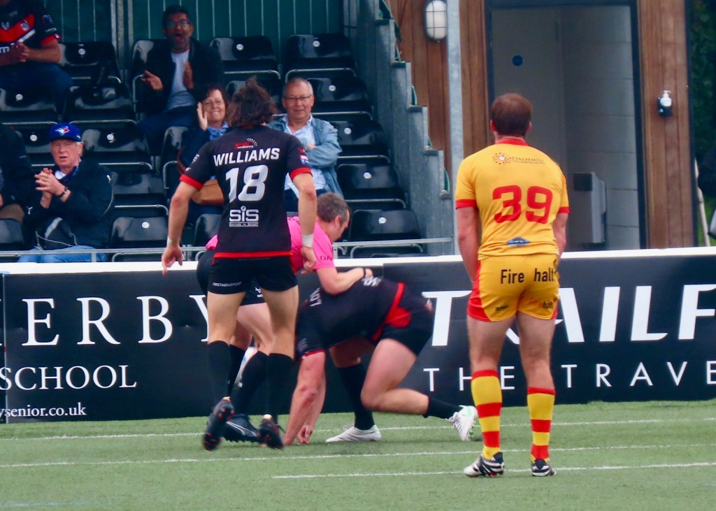 Will Lovell, a player I’ve watched at both Broncos and Skolars , was the next scorer, having looked at my photos, he seemed to get tangled up with the referee, but Sir was unable to prevent him scoring and Broncos increased their lead,.