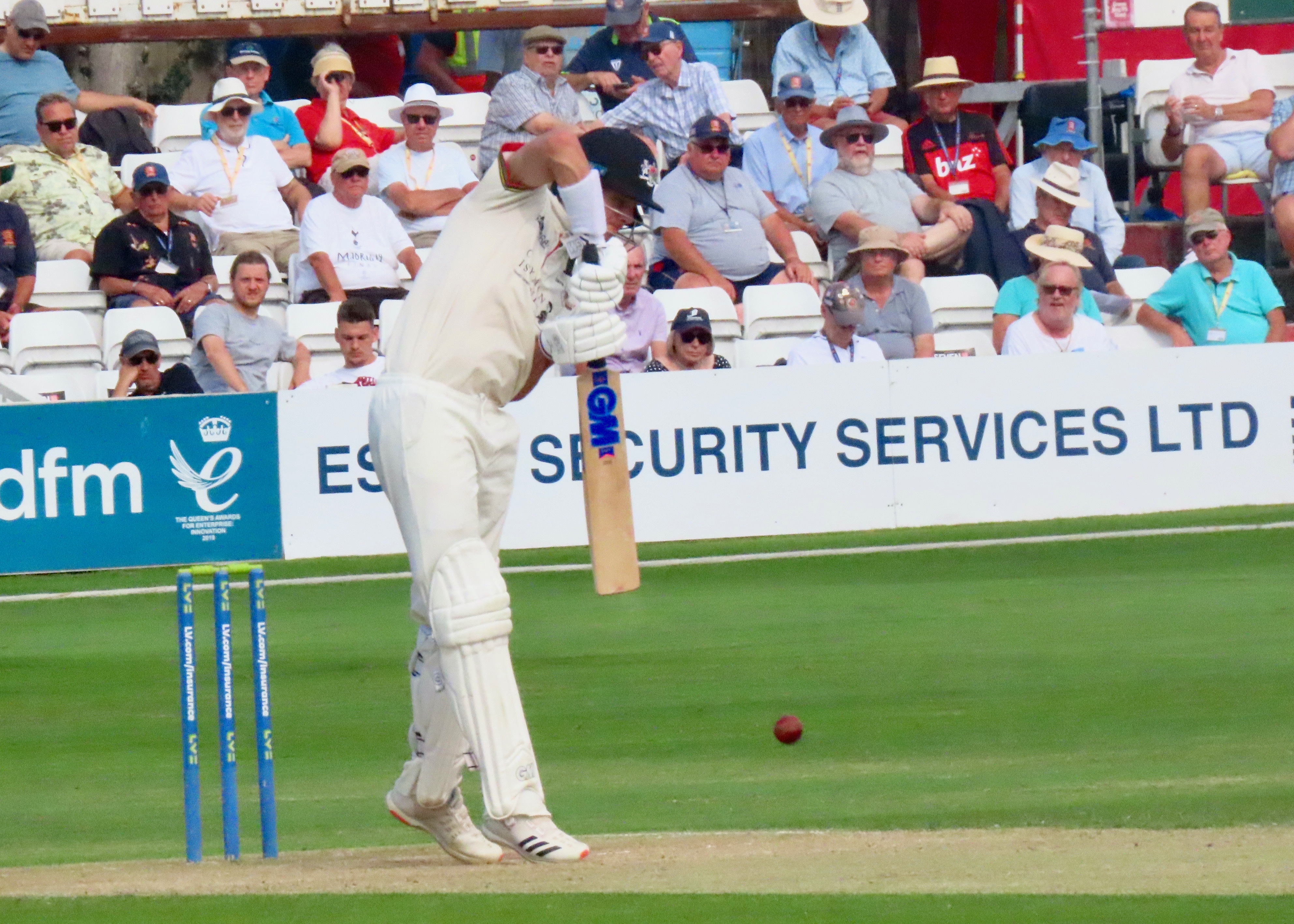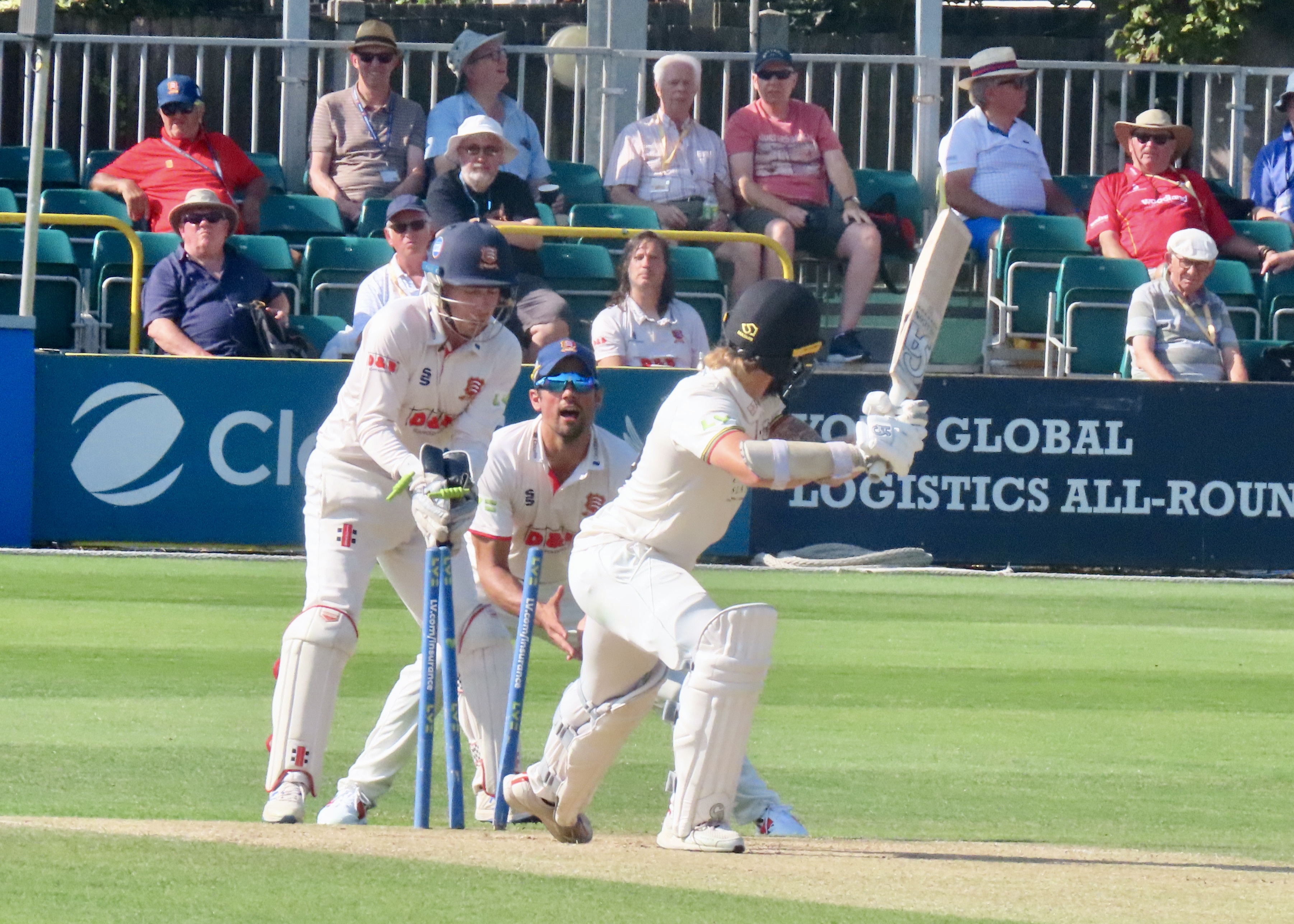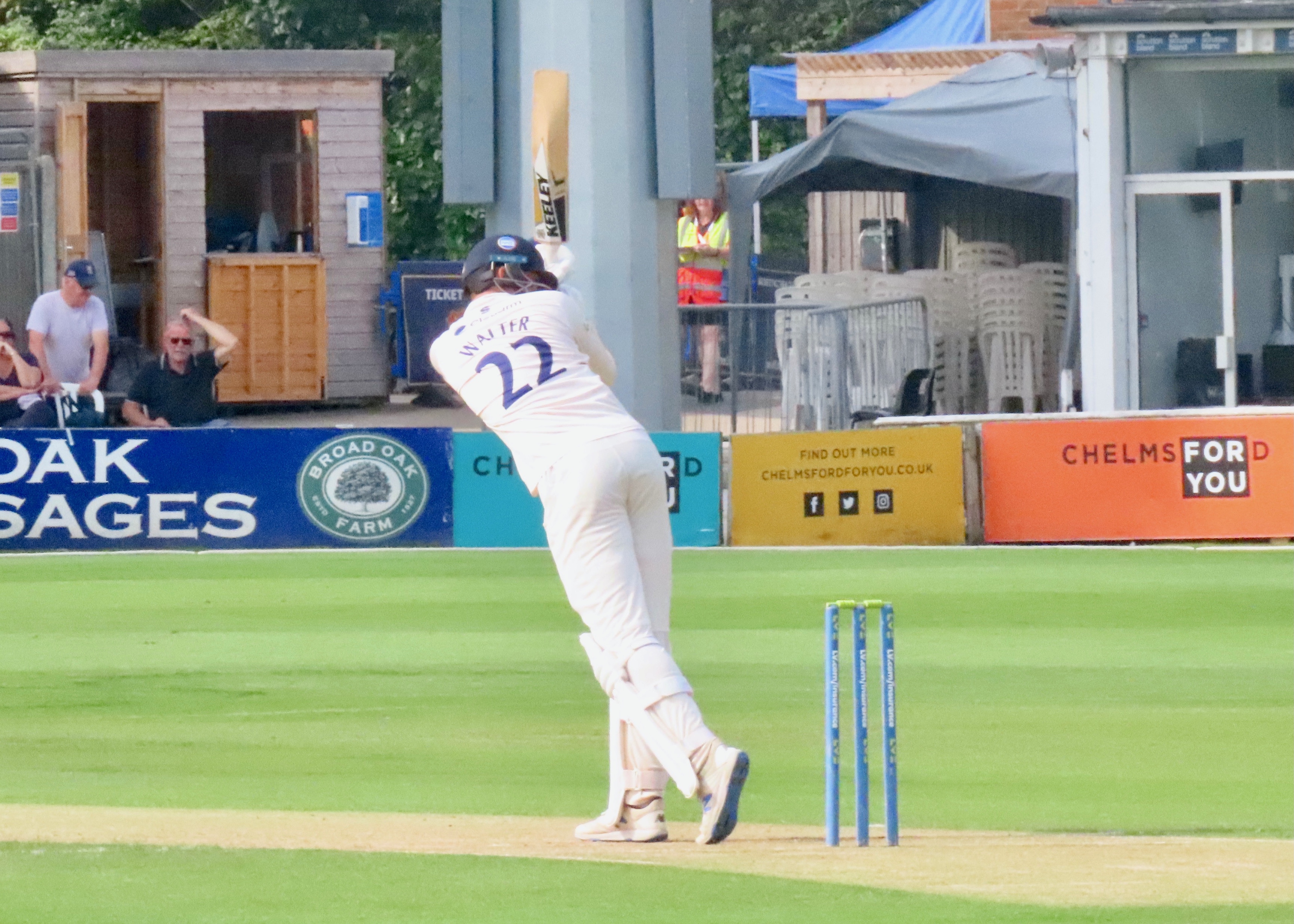 It was a glorious day in Chelmsford and I was back in one of my happy places, I had been there for some white ball cricket, including a Rachel Heyhoe Flint Trophy match, but nothing can match a county cricket match at my home ground. Gloucestershire’s first innings score tells us that no one shone, Ryan Higgins top scored with 25, battling in difficult conditions for 60 balls. Jamie Porter took 4 for 32 in 10 overs, Sam Cook 3 for 27 in his 10 overs and Simon Harmer 3 for 2 in his 3 overs. The innings lasted for just 28 overs. You can never judge a wicket until both teams have batted and Essex fell to 32 for 4 in 19.5 overs, Paul Walter came in at 5, a player who hasn’t had the best of summers, he made me eat my words as he scored 96 from 241 balls, batting for 4.5 hours. It was beyond disappointing that he missed his maiden century by just those 4 runs. He shared a 6th wicket partnership of 79 with Adam Wheater (34 from 77 balls) who’s as small as Walter’s tall! Simon Harmer contributed a useful 45 from 69 balls and remarkably the bowling duo of Cook and Porter put on 32 for the last wicket, with Porter hitting his first 6 in county cricket, a cracker it was too! Glouceatershire had a more determined second innings, with 20 year old opener Ben Charlesworth scoring 49 from 124 balls, he shared a partnership with James Bracey of 58, Bracey made 50 from 122 balls before Harmer took a great catch from the bowling of Cook. There were 2 run outs in this innings, with direct hits from Josh Rymell and Shane Snater, who says county cricket isn’t exciting! A win for Essex