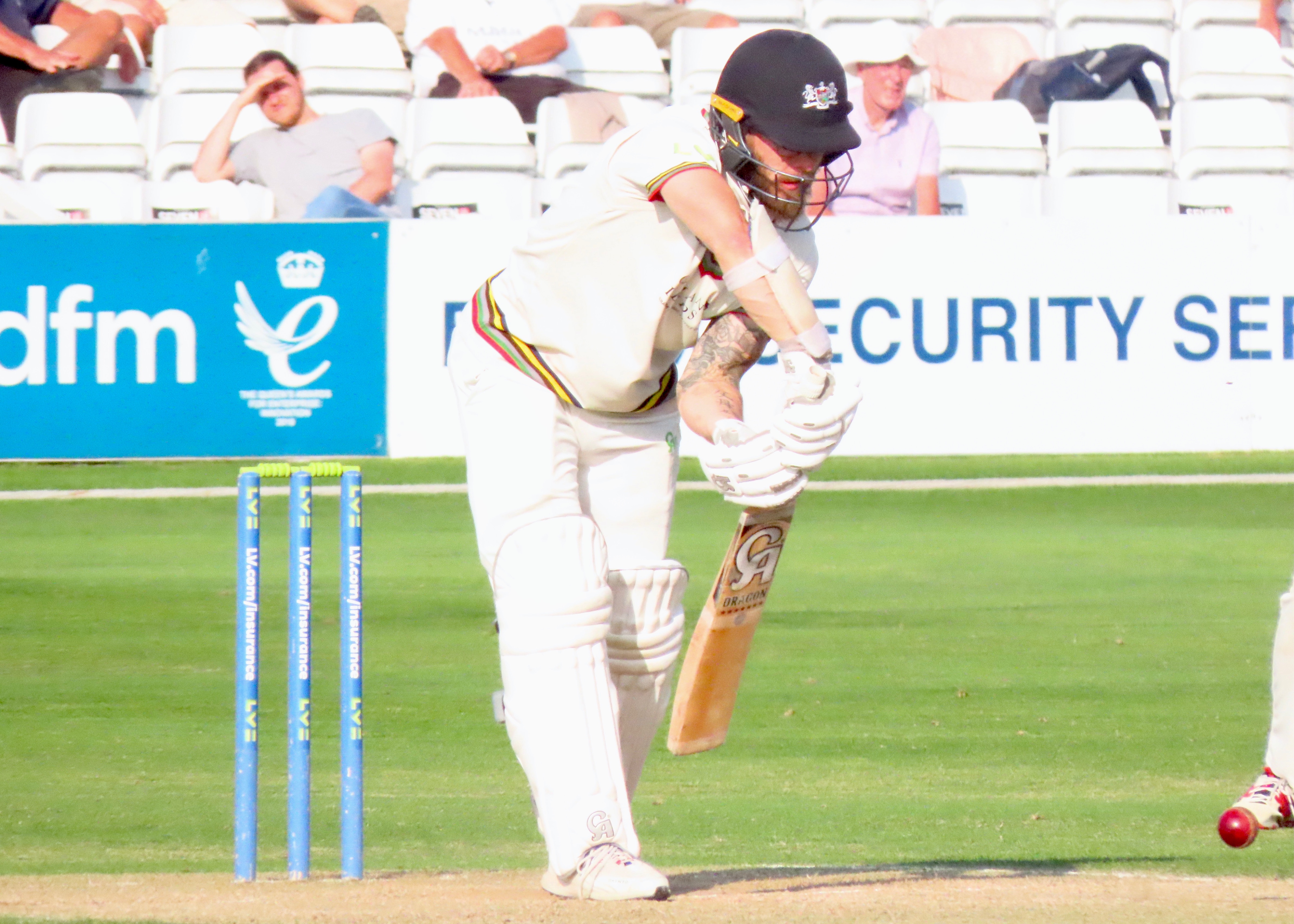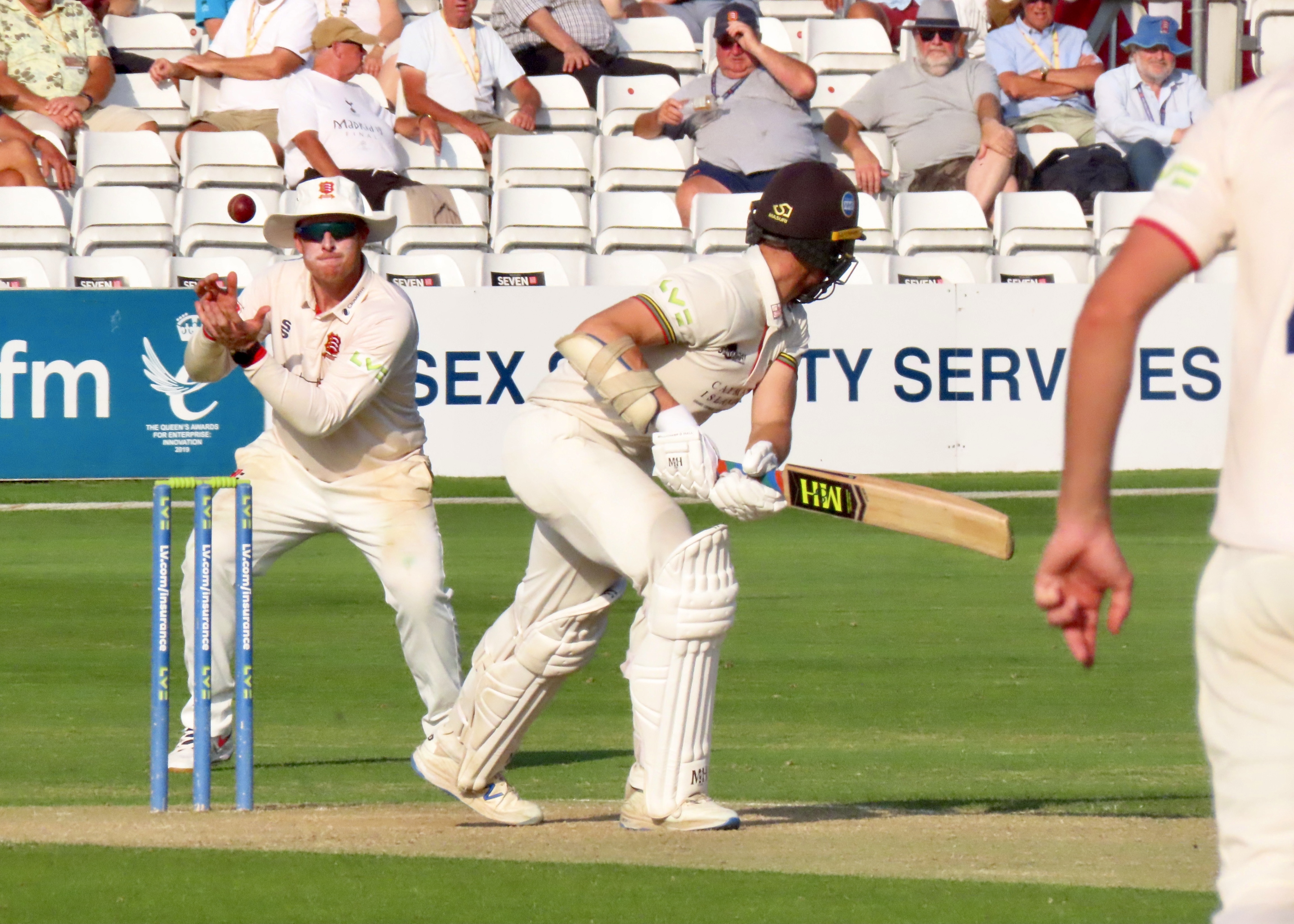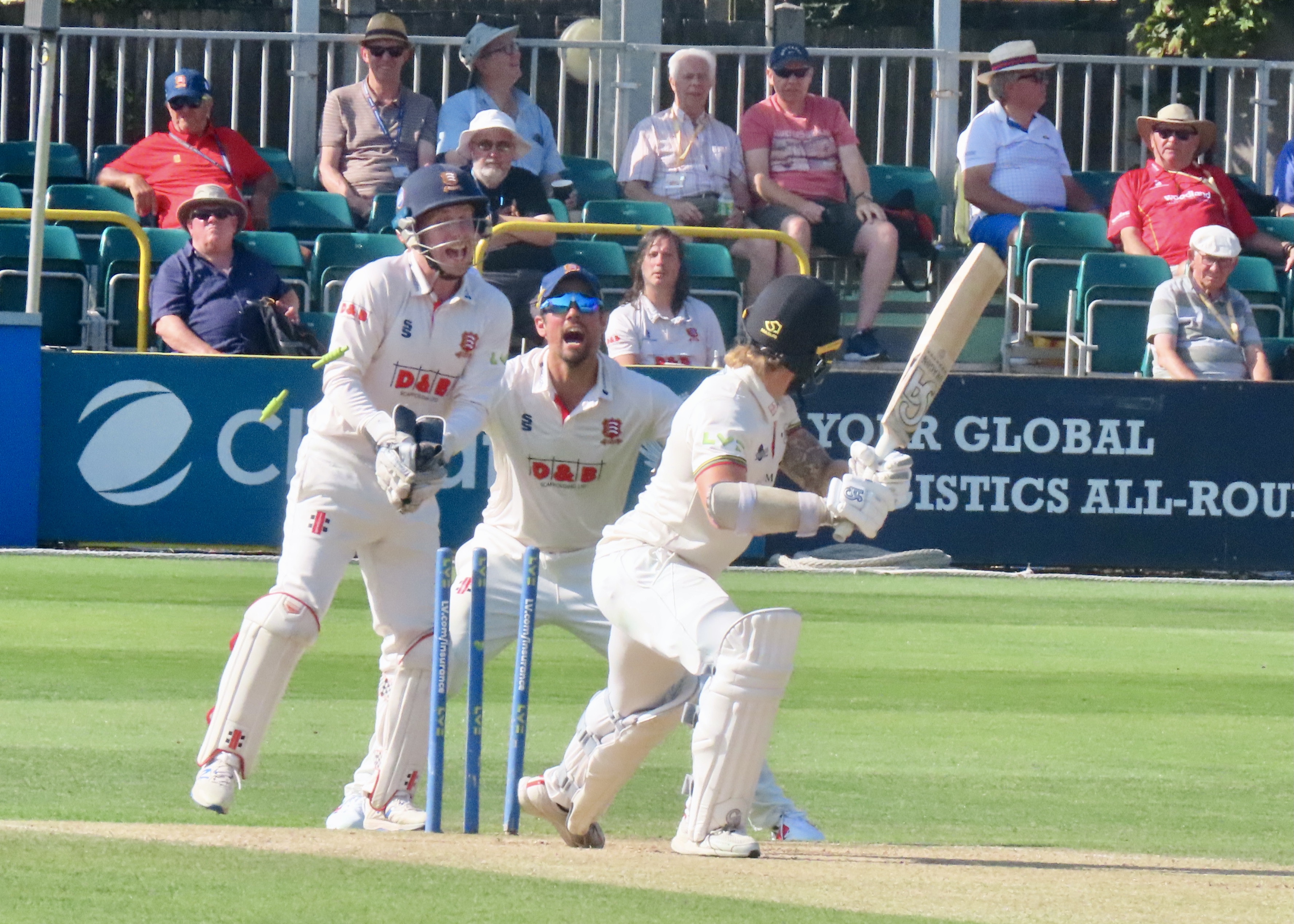 It was a glorious day in Chelmsford and I was back in one of my happy places, I had been there for some white ball cricket, including a Rachel Heyhoe Flint Trophy match, but nothing can match a county cricket match at my home ground. Gloucestershire’s first innings score tells us that no one shone, Ryan Higgins top scored with 25, battling in difficult conditions for 60 balls. Jamie Porter took 4 for 32 in 10 overs, Sam Cook 3 for 27 in his 10 overs and Simon Harmer 3 for 2 in his 3 overs. The innings lasted for just 28 overs. You can never judge a wicket until both teams have batted and Essex fell to 32 for 4 in 19.5 overs, Paul Walter came in at 5, a player who hasn’t had the best of summers, he made me eat my words as he scored 96 from 241 balls, batting for 4.5 hours. It was beyond disappointing that he missed his maiden century by just those 4 runs. He shared a 6th wicket partnership of 79 with Adam Wheater (34 from 77 balls) who’s as small as Walter’s tall! Simon Harmer contributed a useful 45 from 69 balls and remarkably the bowling duo of Cook and Porter put on 32 for the last wicket, with Porter hitting his first 6 in county cricket, a cracker it was too! Glouceatershire had a more determined second innings, with 20 year old opener Ben Charlesworth scoring 49 from 124 balls, he shared a partnership with James Bracey of 58, Bracey made 50 from 122 balls before Harmer took a great catch from the bowling of Cook. There were 2 run outs in this innings, with direct hits from Josh Rymell and Shane Snater, who says county cricket isn’t exciting! A win for Essex