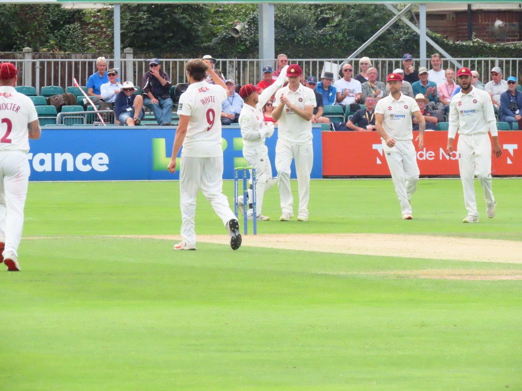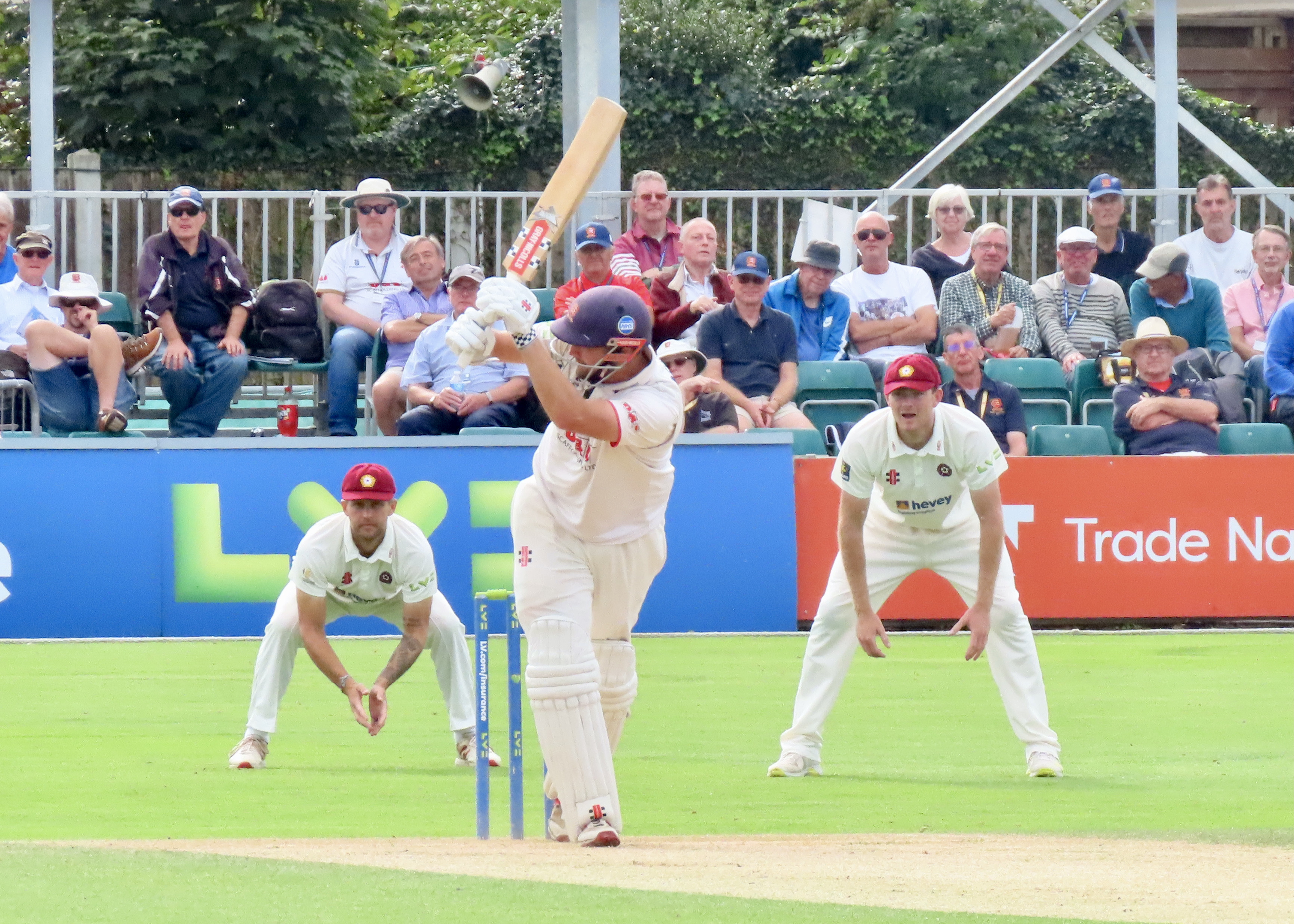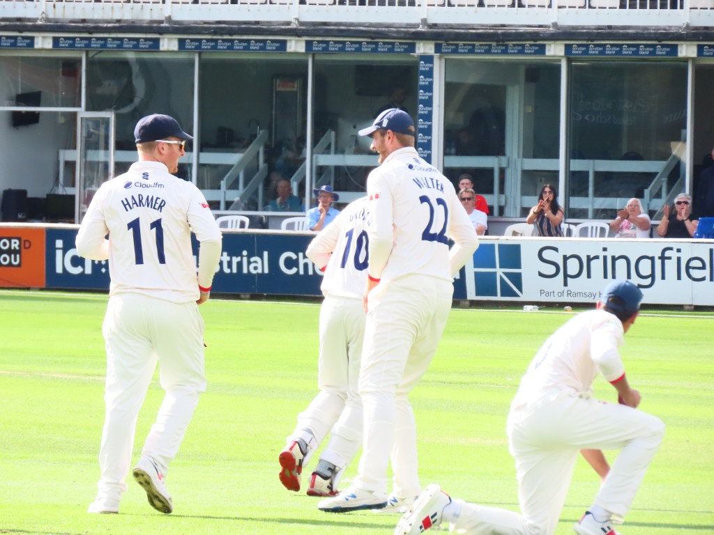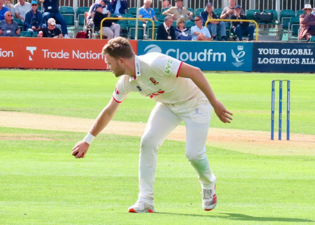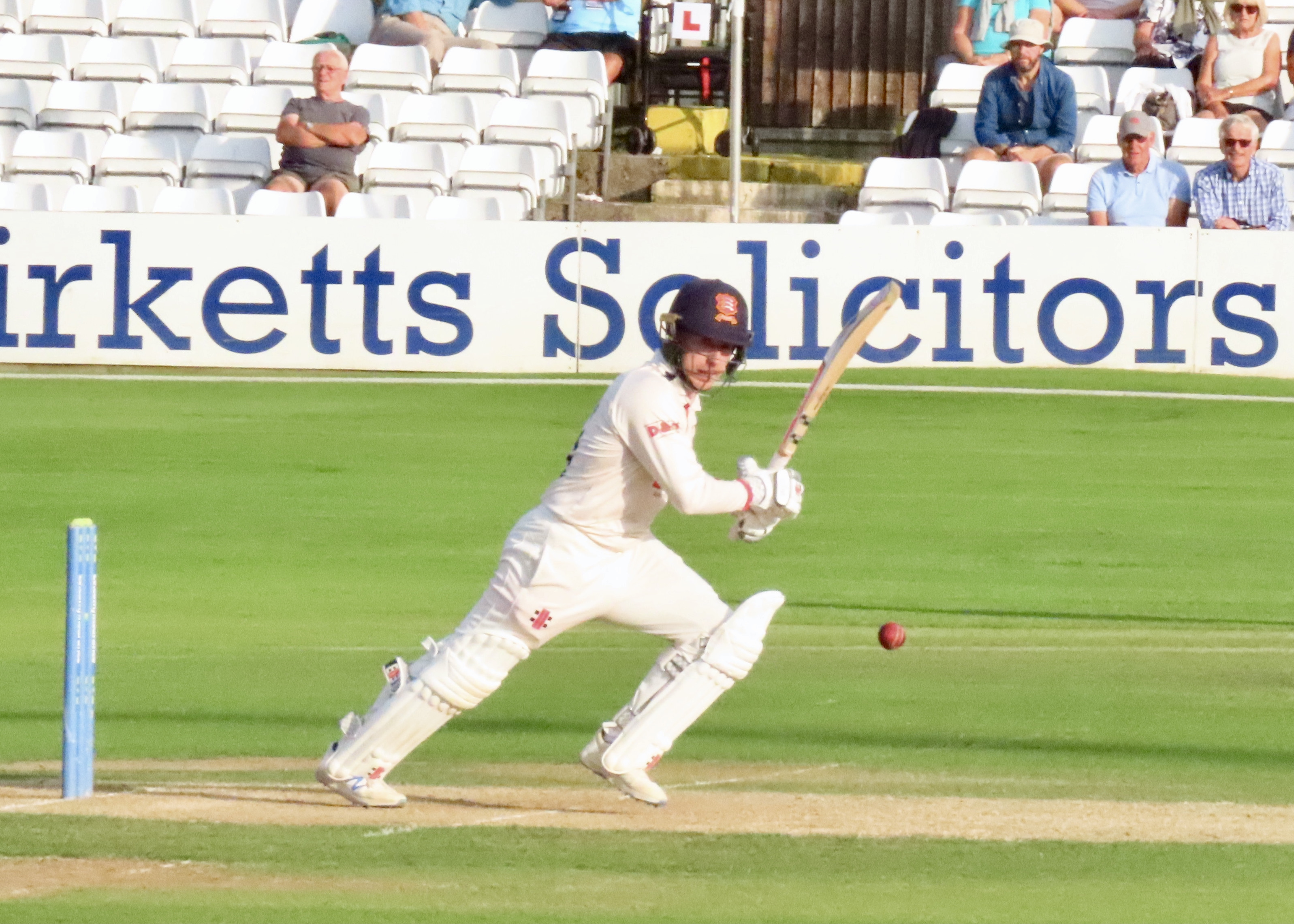 Those 7 wickets were soon followed by the 3 required to finish the innings; just 21 runs were added, giving the total of 81 All Out. Remarkably Emilio Gay made 38 of those runs; facing 74 balls over nearly 2 hours. Sam Cook took 5 for 21 in his 12 overs. The whole innings was over in 34.5 overs. Would Essex fare better? Well, a little, they lasted for 43.2 overs and scored a huge 170 runs, with Adam Wheater being the top scorer with just 34. Tom Taylor and Jack White took 4 wickets each.