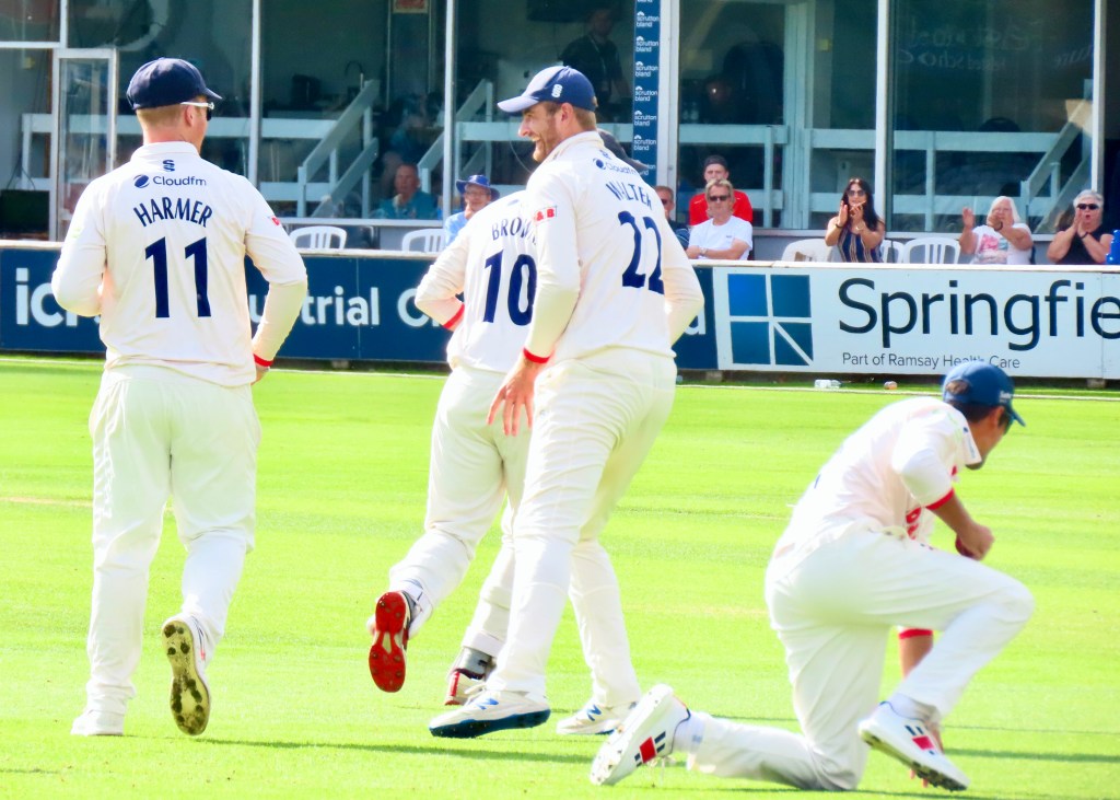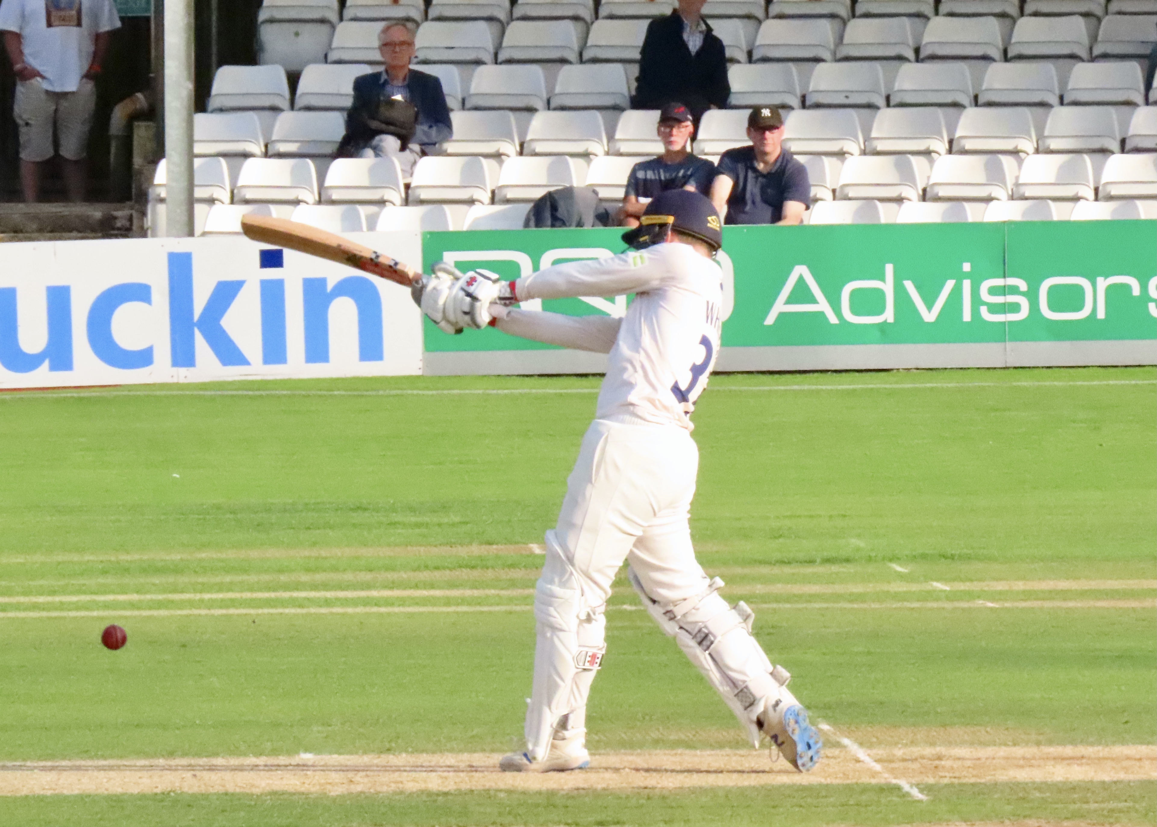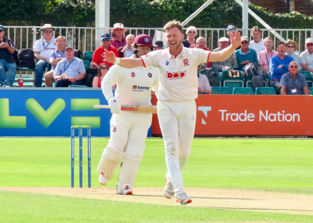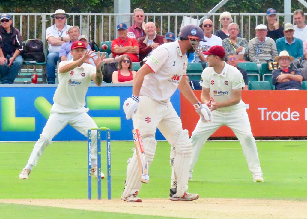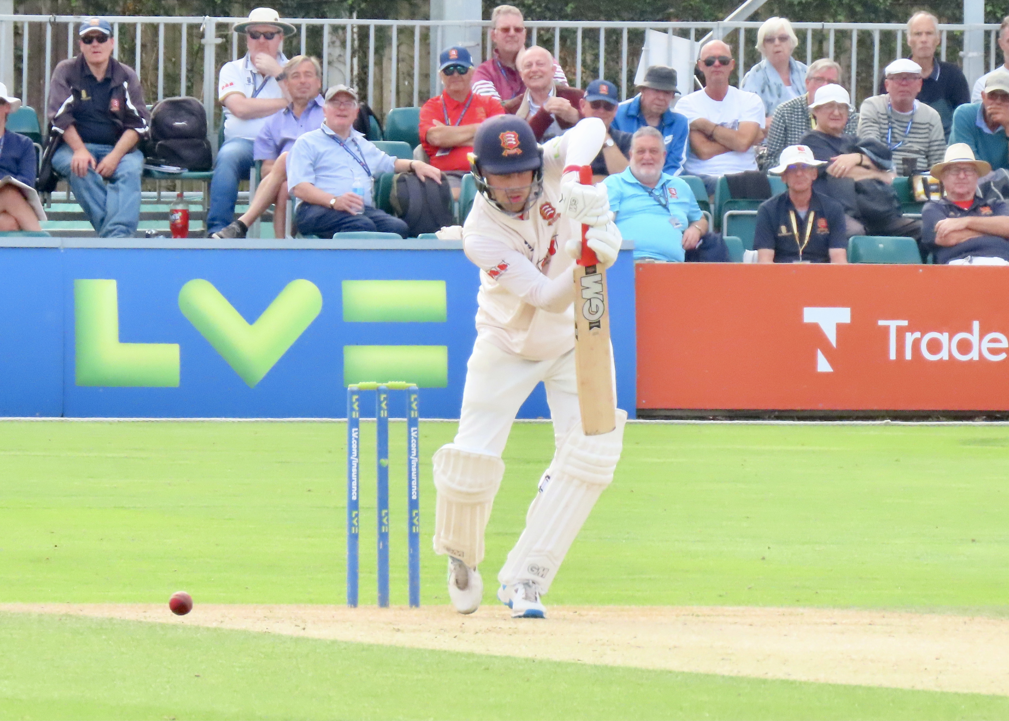 Those 7 wickets were soon followed by the 3 required to finish the innings; just 21 runs were added, giving the total of 81 All Out. Remarkably Emilio Gay made 38 of those runs; facing 74 balls over nearly 2 hours. Sam Cook took 5 for 21 in his 12 overs. The whole innings was over in 34.5 overs. Would Essex fare better? Well, a little, they lasted for 43.2 overs and scored a huge 170 runs, with Adam Wheater being the top scorer with just 34. Tom Taylor and Jack White took 4 wickets each.