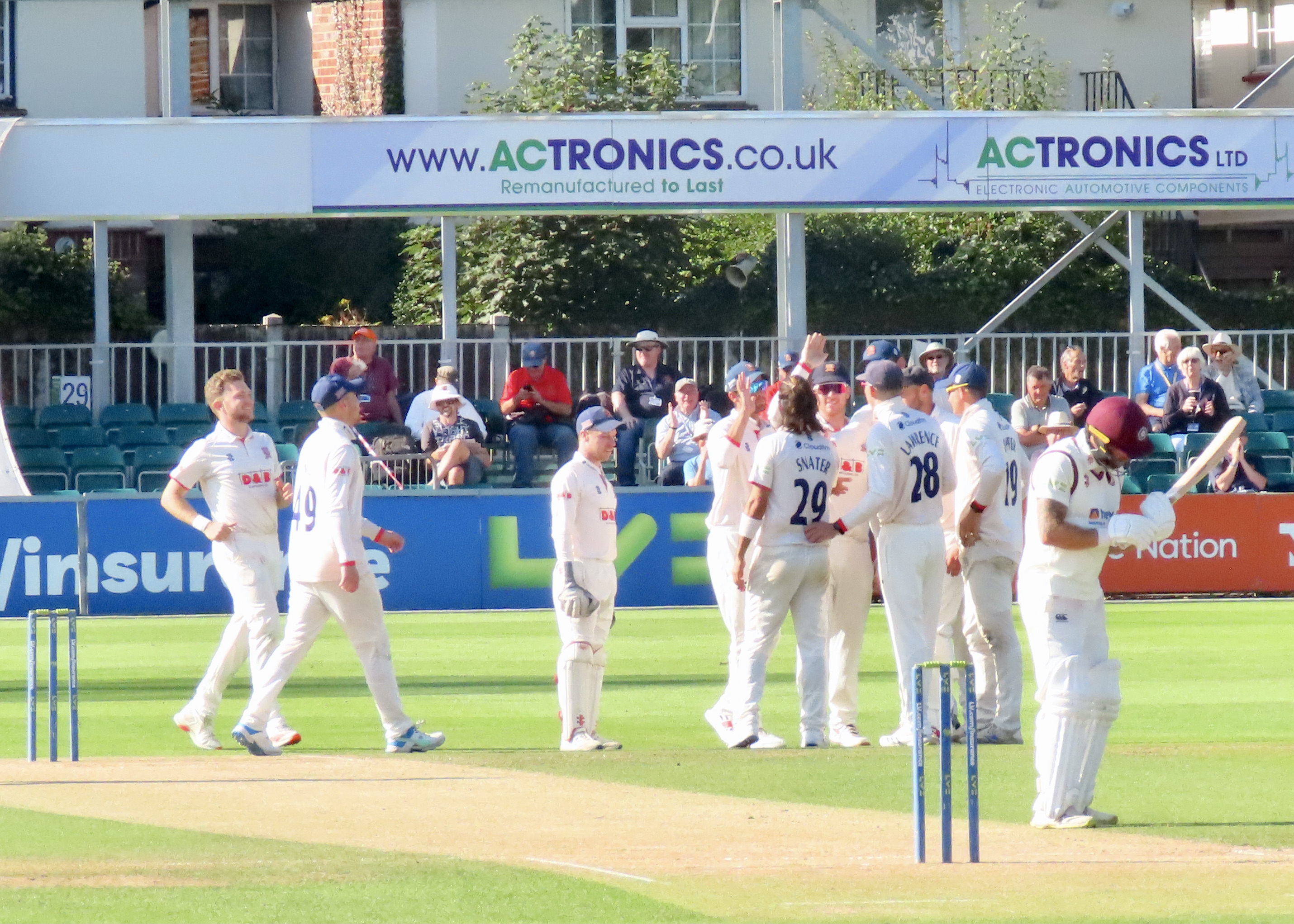 I went to sit with some friends for the start of Northants second innings, I predicted 4 wickets down by the end of play, there were actually 5, with just 23 runs on the board! That was pretty poor on the part of the batters, but worse was to follow in the morning, on a glorious morning Essex took the further 5 wickets for a mighty 22 runs; only Luke Proctor seemed to be of a mind to hang around, I think I saw some of the worst shots I’ve seen played on a professional cricket pitch as Sam Cook took another 5, for 20 runs this time, we had 30 minutes of cricket and some truly woeful batting (sorry Northants fans). Several visiting fans had booked a hotel for the duration, to be heartily let down by their team, The bowling across the board was high quality from both teams, but to be bowled out in 18.2 overs is shameful. A Win for Essex .