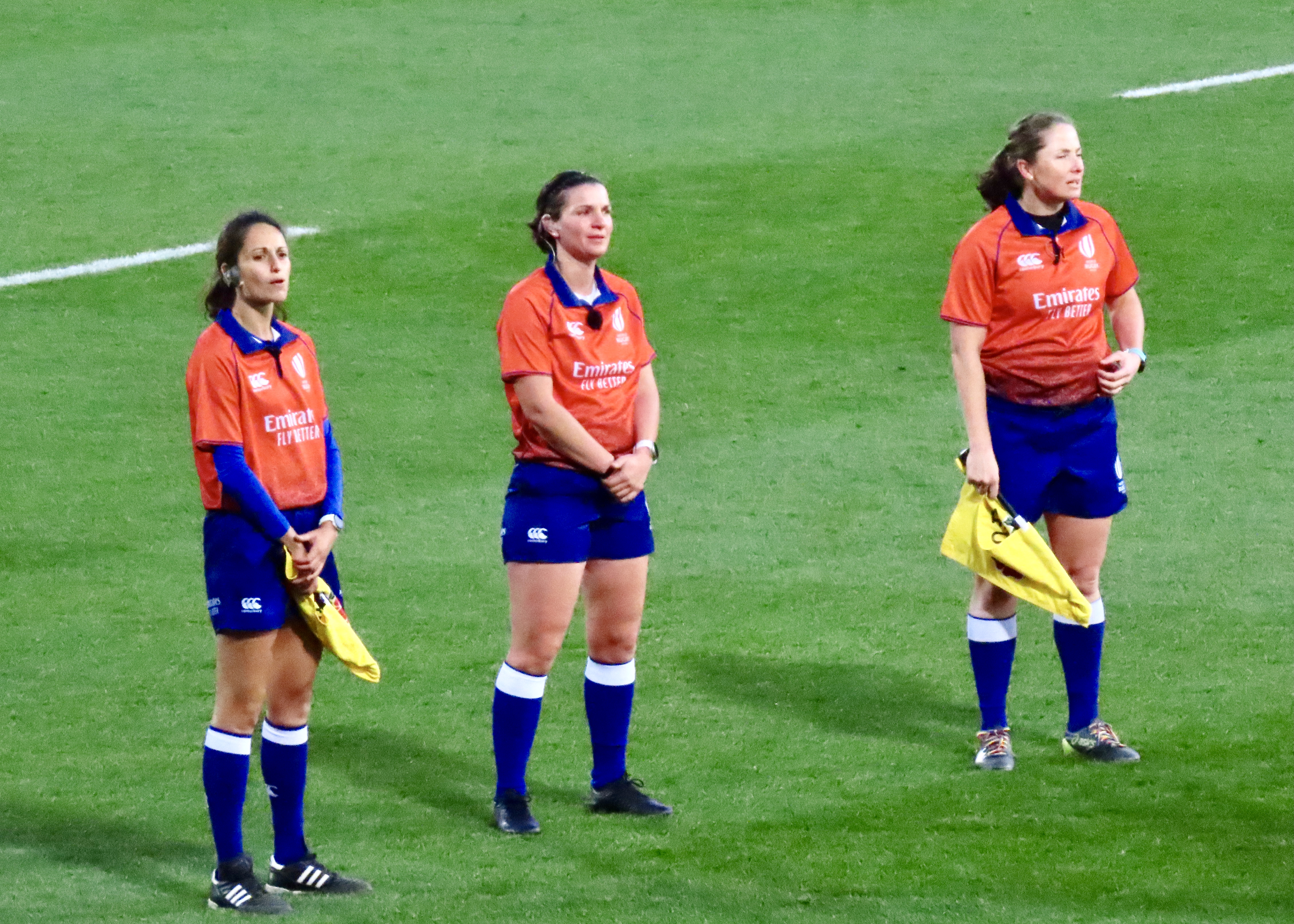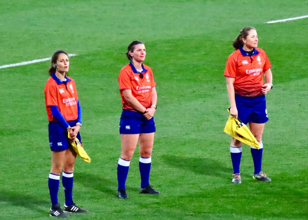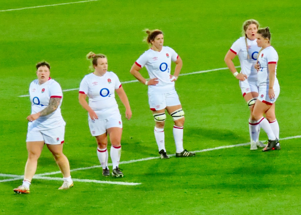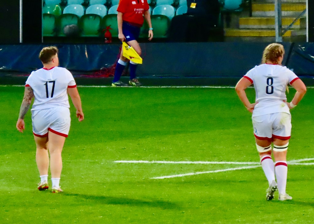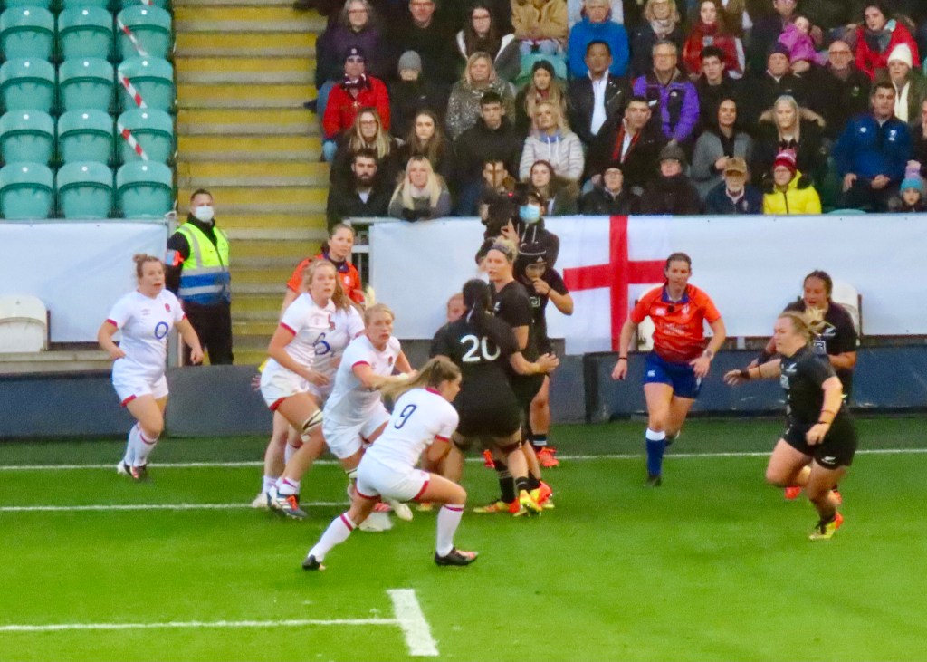 England looked close to their third try 5 minutes later after yet another penalty and another line out in the New Zealand 22, but the ball went flying wide at the last moment. When the referee checked that happened because Kendra Cocksedge had got a hand to the ball, the result of that was a penalty try and a yellow card for a ‘deliberate knock on’.