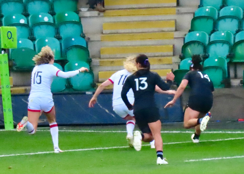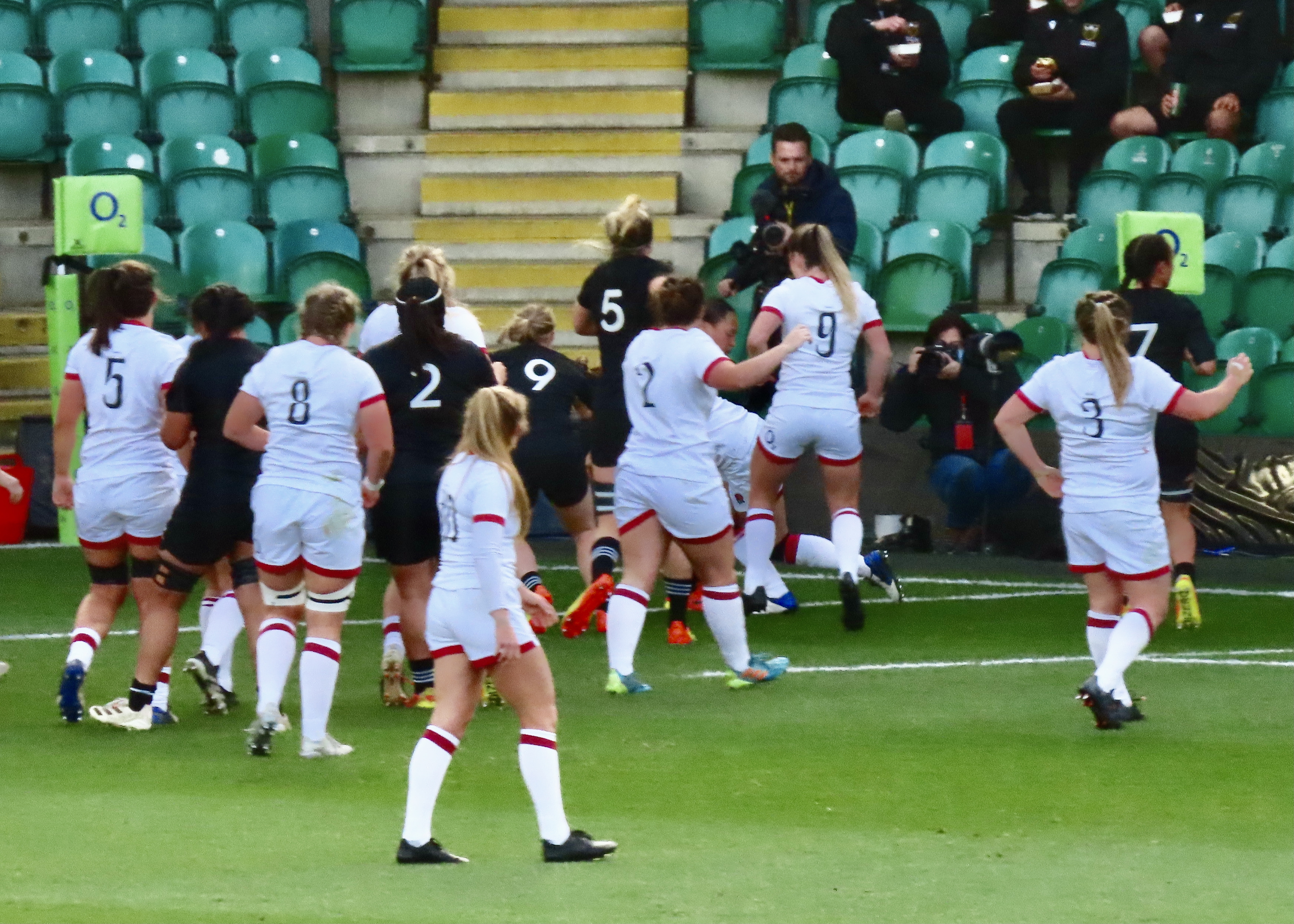 The Black Ferns had the final word with their third try, a second for Woodman as the ball went out to her after a scrum. The try wasn’t converted leaving the final score as England 56 Black Ferns 15.