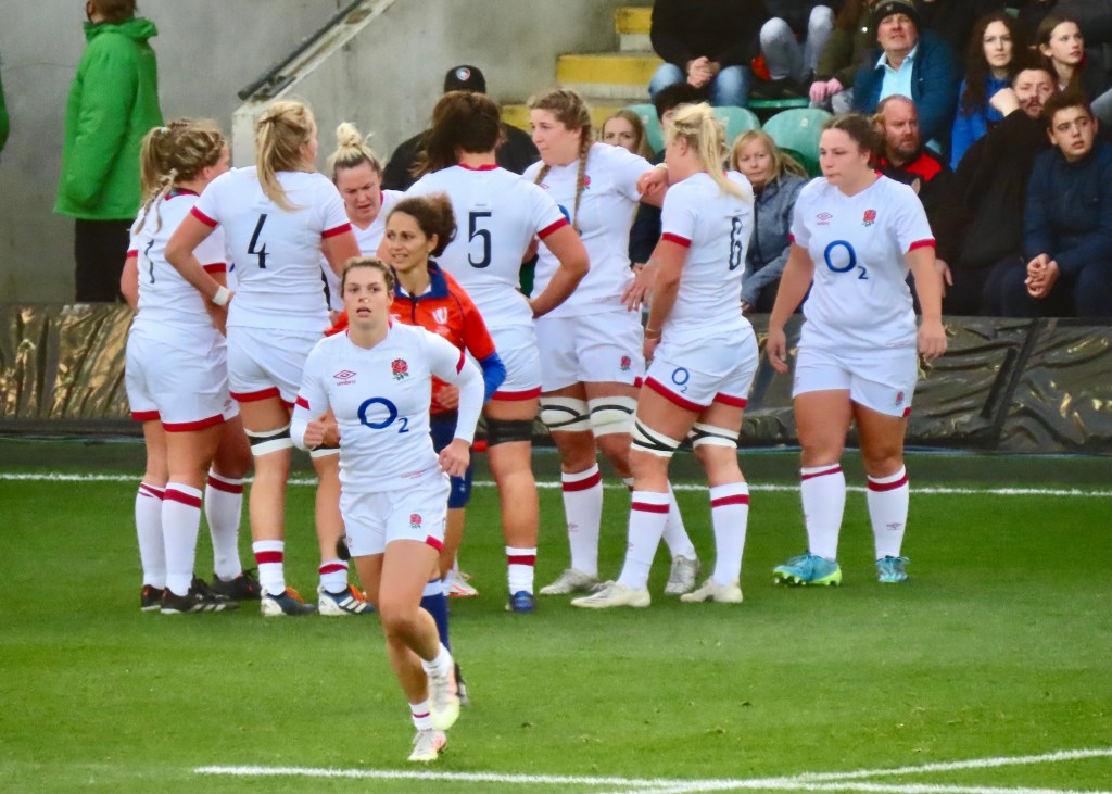 Saracens Poppy Cleall was appointed captain for this match and she oversaw a dominant performance. Harlequins hooker Amy Cokayne started as she meant to carry on, touching down for England’s first try after a driving maul from the line-out, with ground made after a penalty. Zoe Harrison, who gave as good a kicking display from the tee as I’ve seen on a rugby pitch, added the extras.