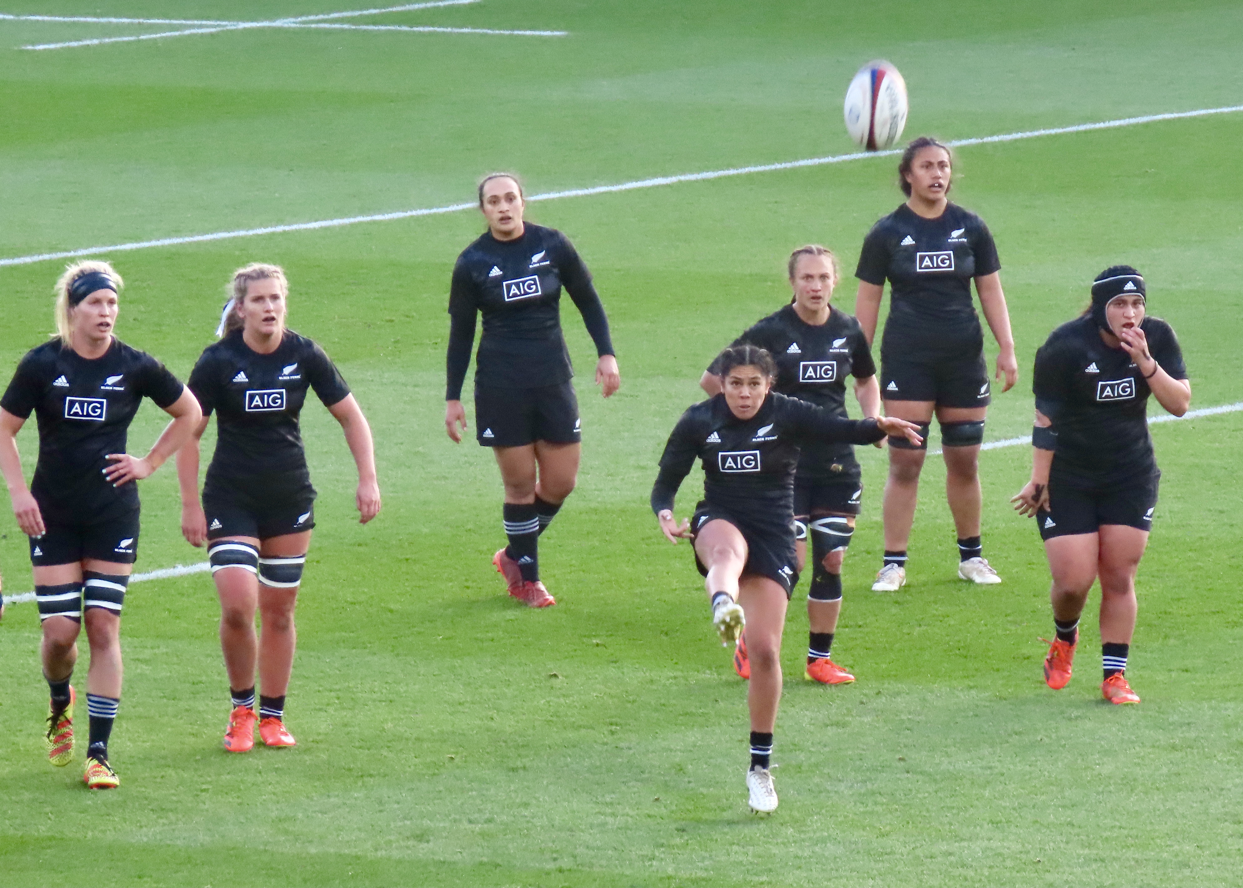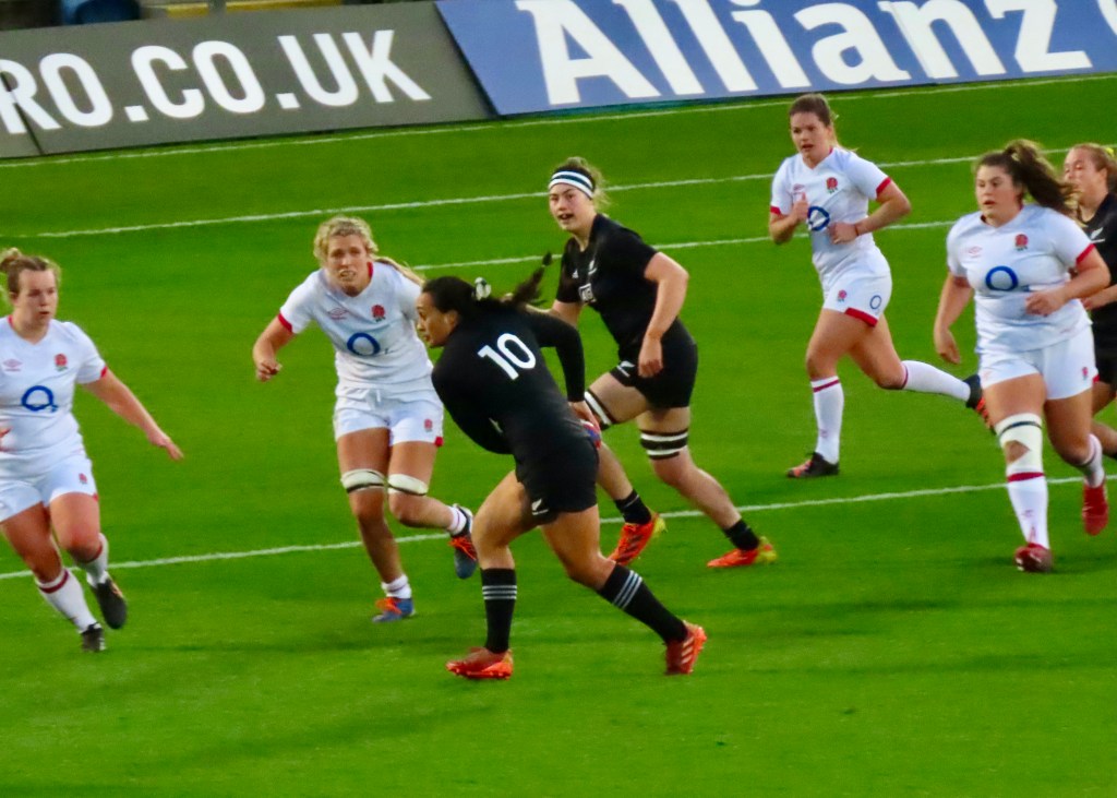 At last New Zealand had some attacking time close to the England line, a couple of English penalties saw them put on a warning, a scrum taken on the second saw the ball reach the Portia Woodman, (a player with a great record behind her, including being named the Women’s Sevens Player of the Year in 2015, being top try scorer in the Rugby Sevens at the 2016 Olympics and also being top scorer in the 2017 Women’s Rugby World Cup). The ball was spun out to her wing and at last the Black Ferns fans has something to cheer about. Cocksedge failed to convert the try.