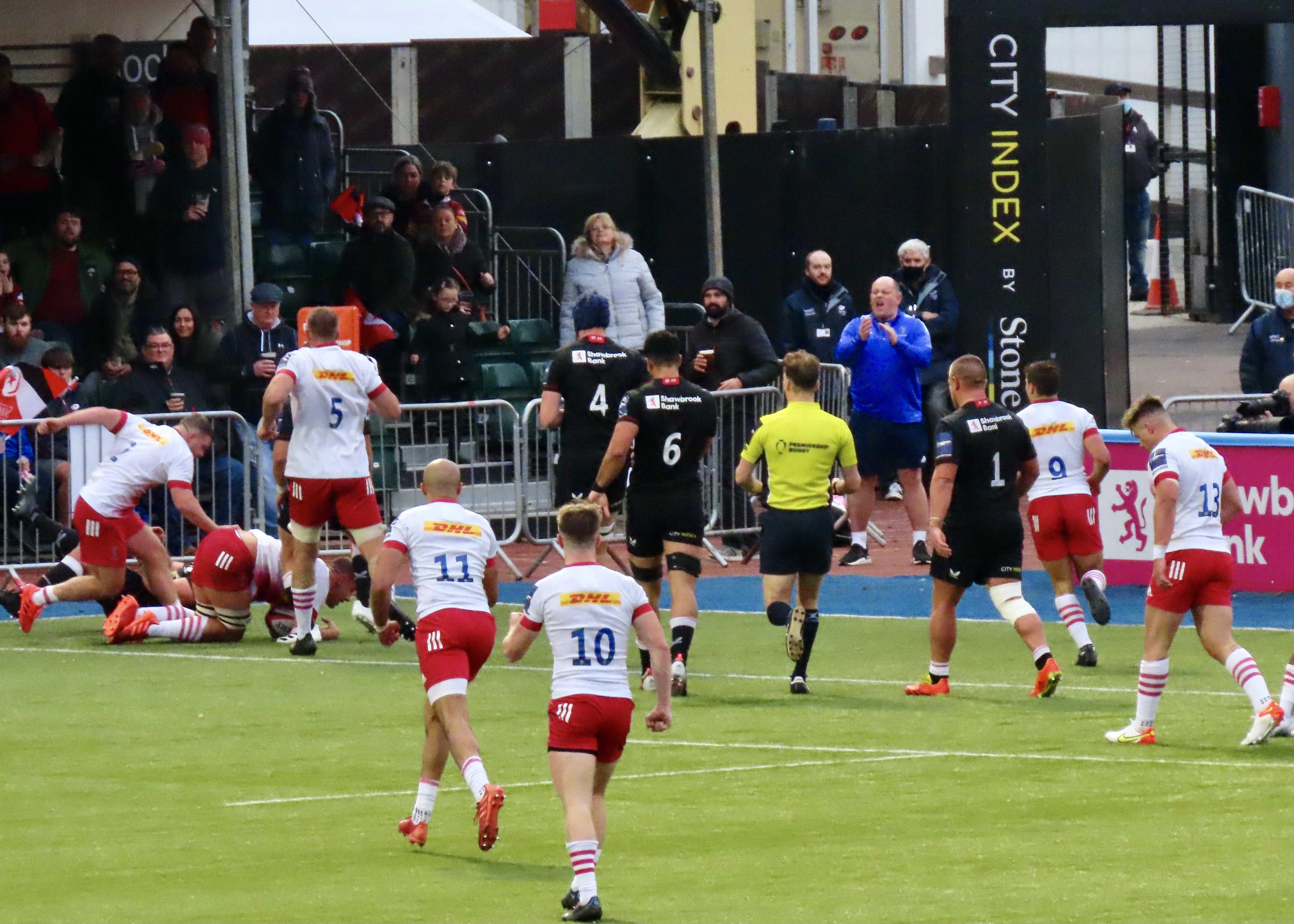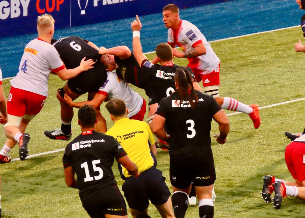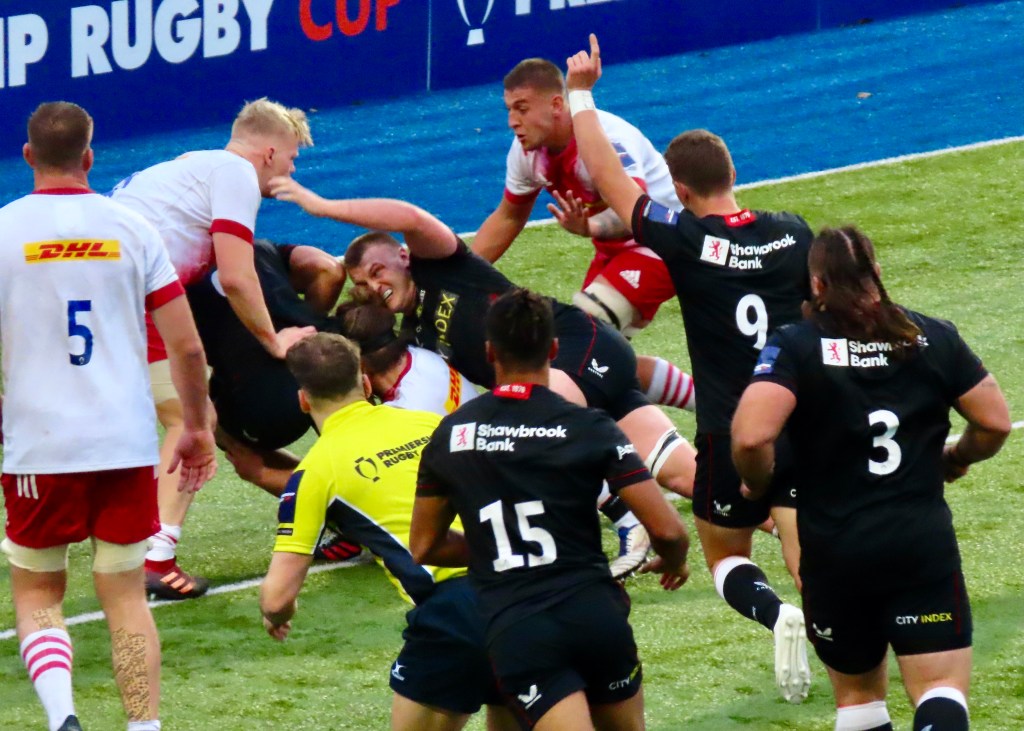 Saracens first try was all about the Forwards as Richard Barrington scored, a player signed from Jersey to play in the old Anglo-Welsh Cup in 2013; he now has 204 appearances and has helped Saracens win the aforementioned Anglo-Welsh Cup, three European Cups and four Premiership titles, he clearly isn’t one of those fresh faces! He forced his way over the line on 14 minutes after a scrum.
