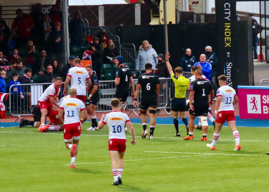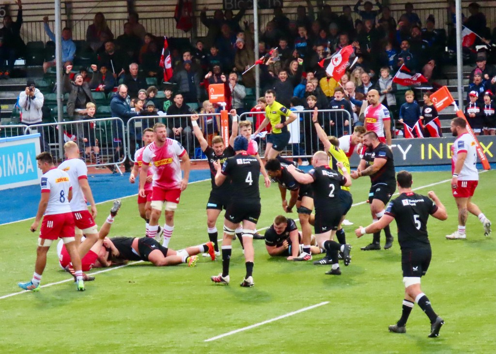 A series of penalties for Quins saw a series of line outs all won by Matas Jurevicius at the front of the line out, it took a couple of goes, but he eventually scored as the maul rolled over the line and Quins were on the scoreboard on 33 minutes.