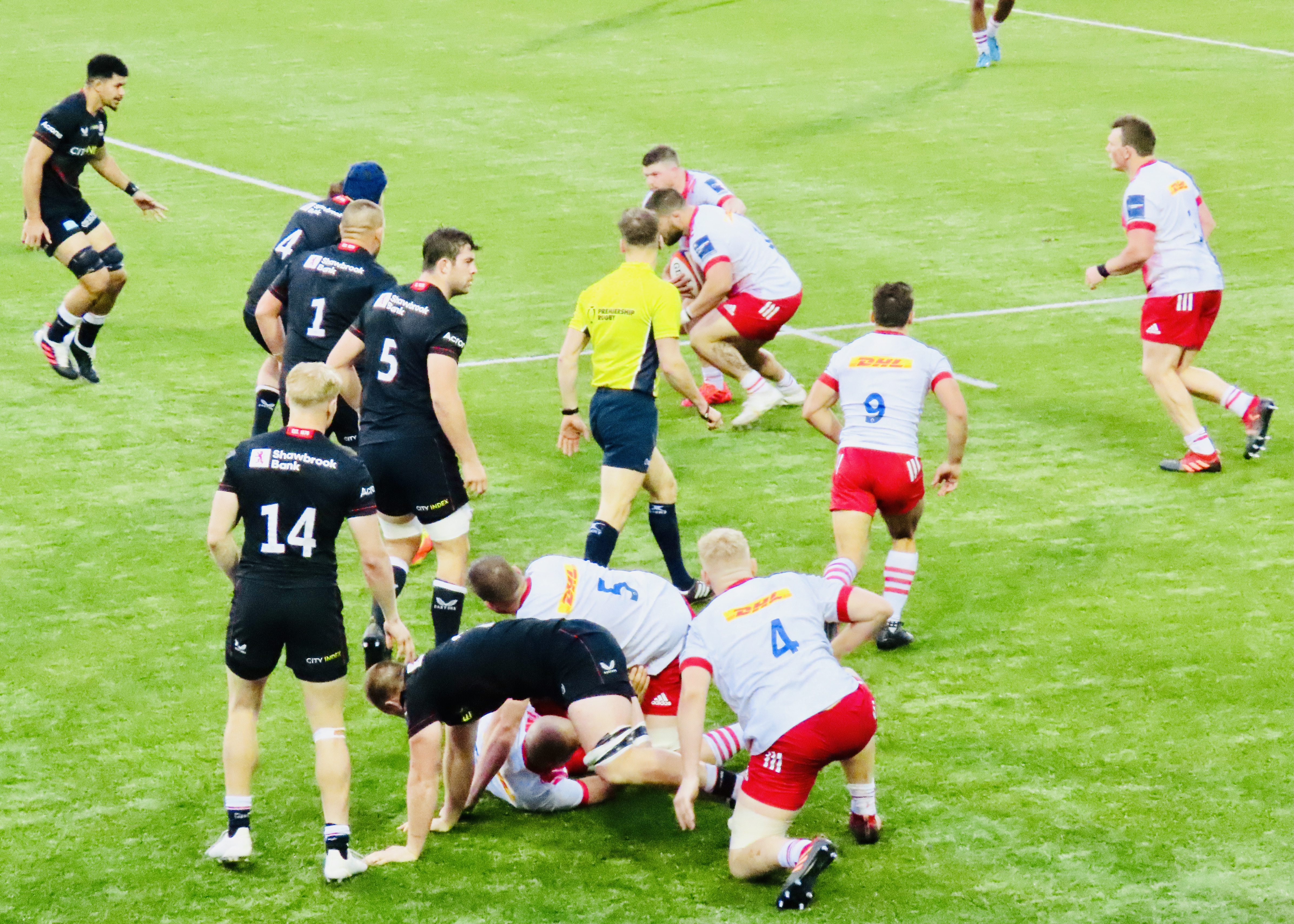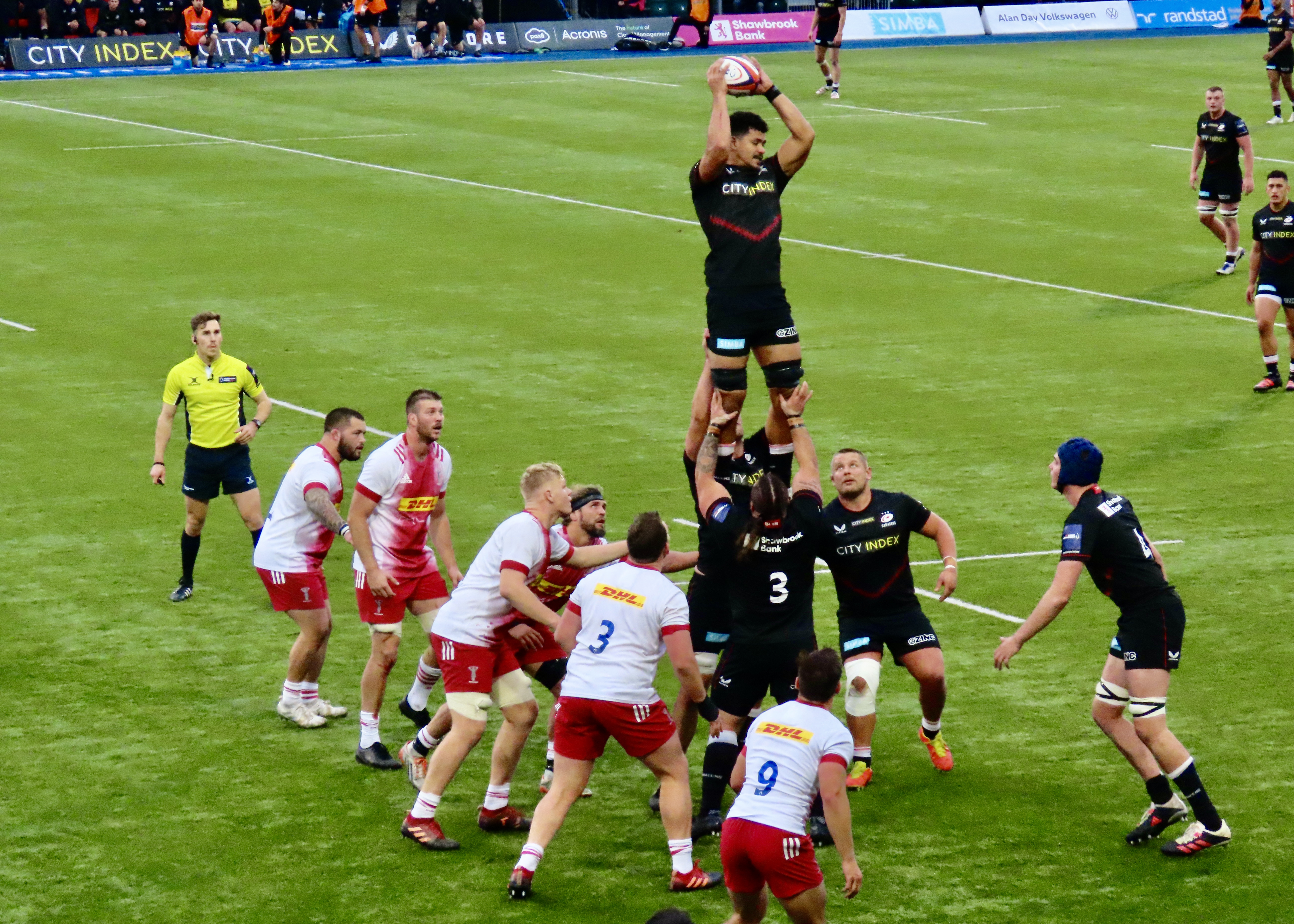 Both teams made a fair few substitutions which gave us a bit of a muddle for 10 minutes or so. The try of the game came for Harlequins, a great effort from Nick David who ran a good 30 metres, the conversion was good and we had a 7 point gap with 6 minutes remaining. It felt all very deja vu, but from the perspective of this Saracens fan I’m happy to report that the defence stood tall , in particular Elliot Obatoyinbo, who put in a try saving tackle, having made a couple of errors that contributed to an earlier try. Phew! Saracens brought the win home. The final score was Saracens 28 Harlequins 21.