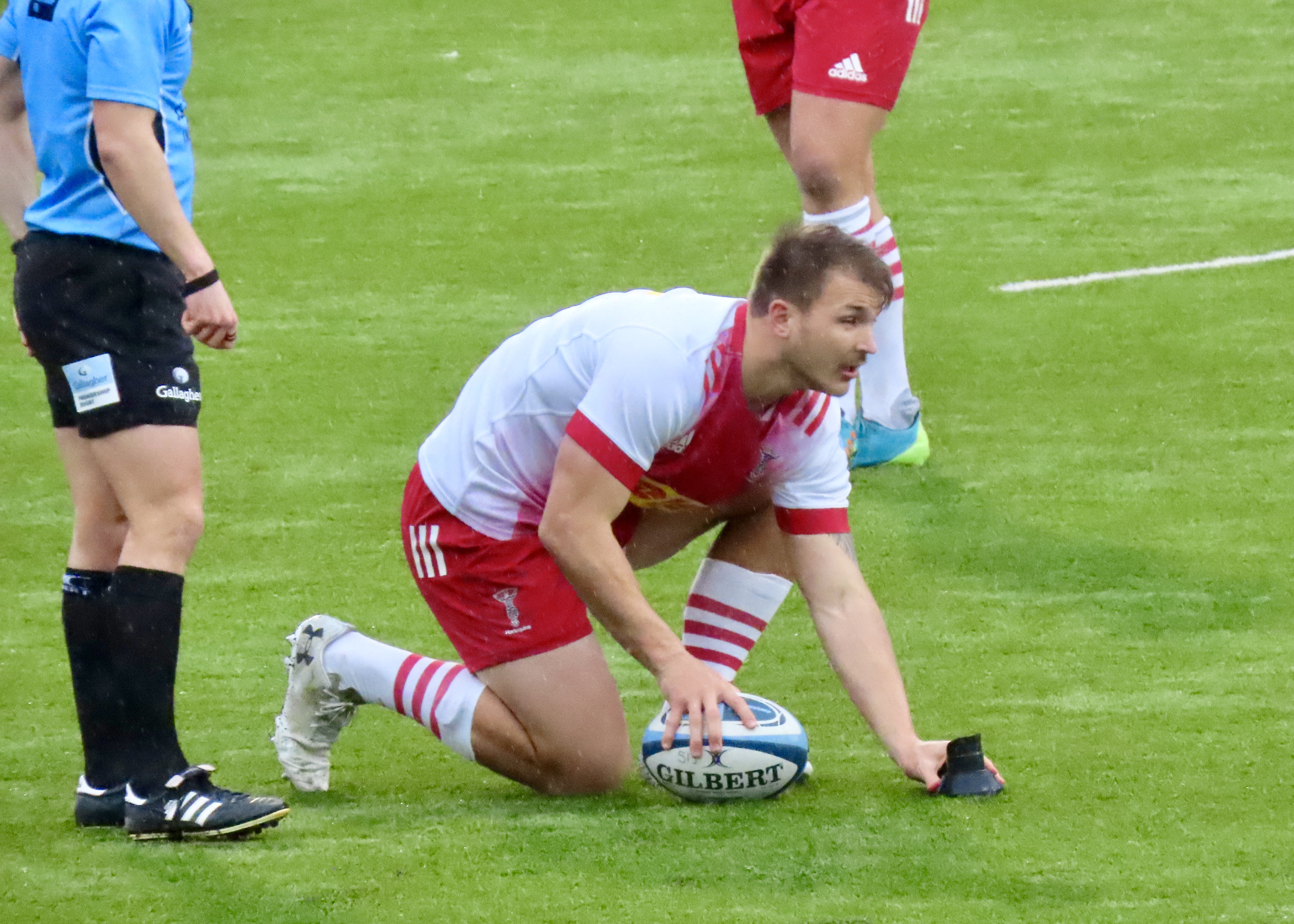 Qiuins were awarded a penalty after Morris took Luke Wallace out from the breakdown, taking him way past the ruck; Danny Care did Danny Care things after Quins had driven towards the line, he jinked one way then the next and went between 2 defenders to score. Tomaso Allen had the ball fall off the kicking tee, he thought quickly and picked the ball up to drop a kick through the posts. Quins had a 2 point lead after 18 minutes,
