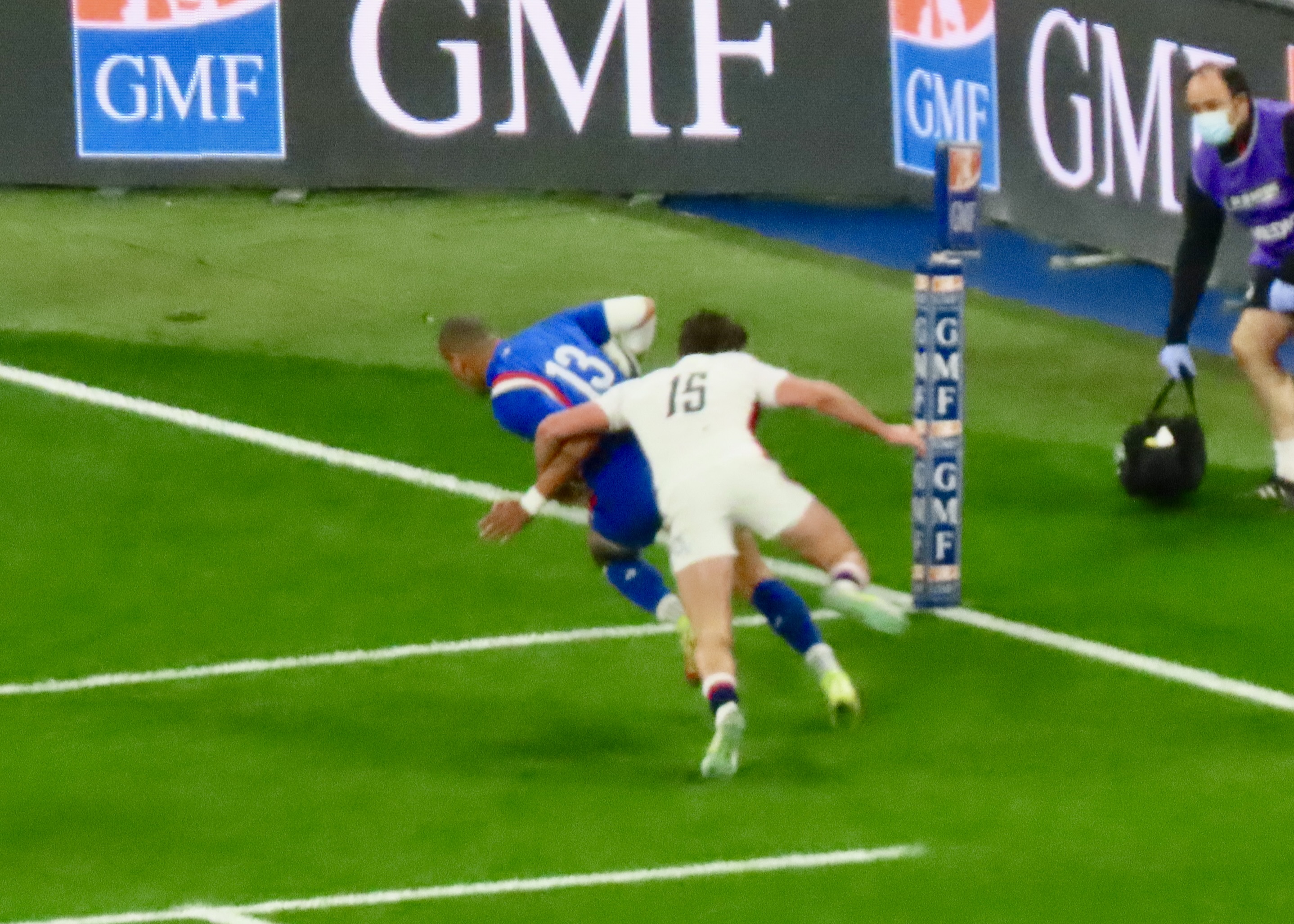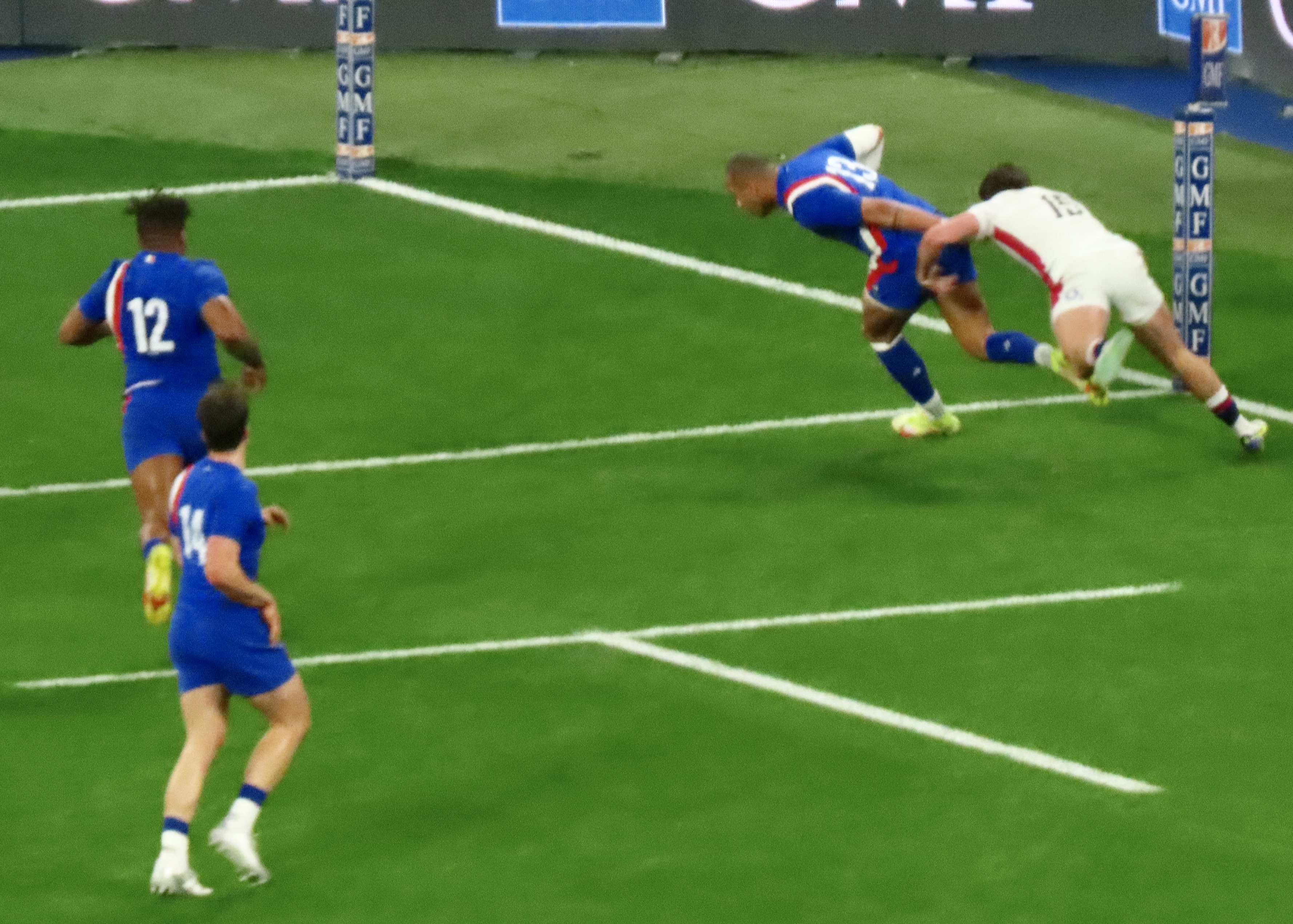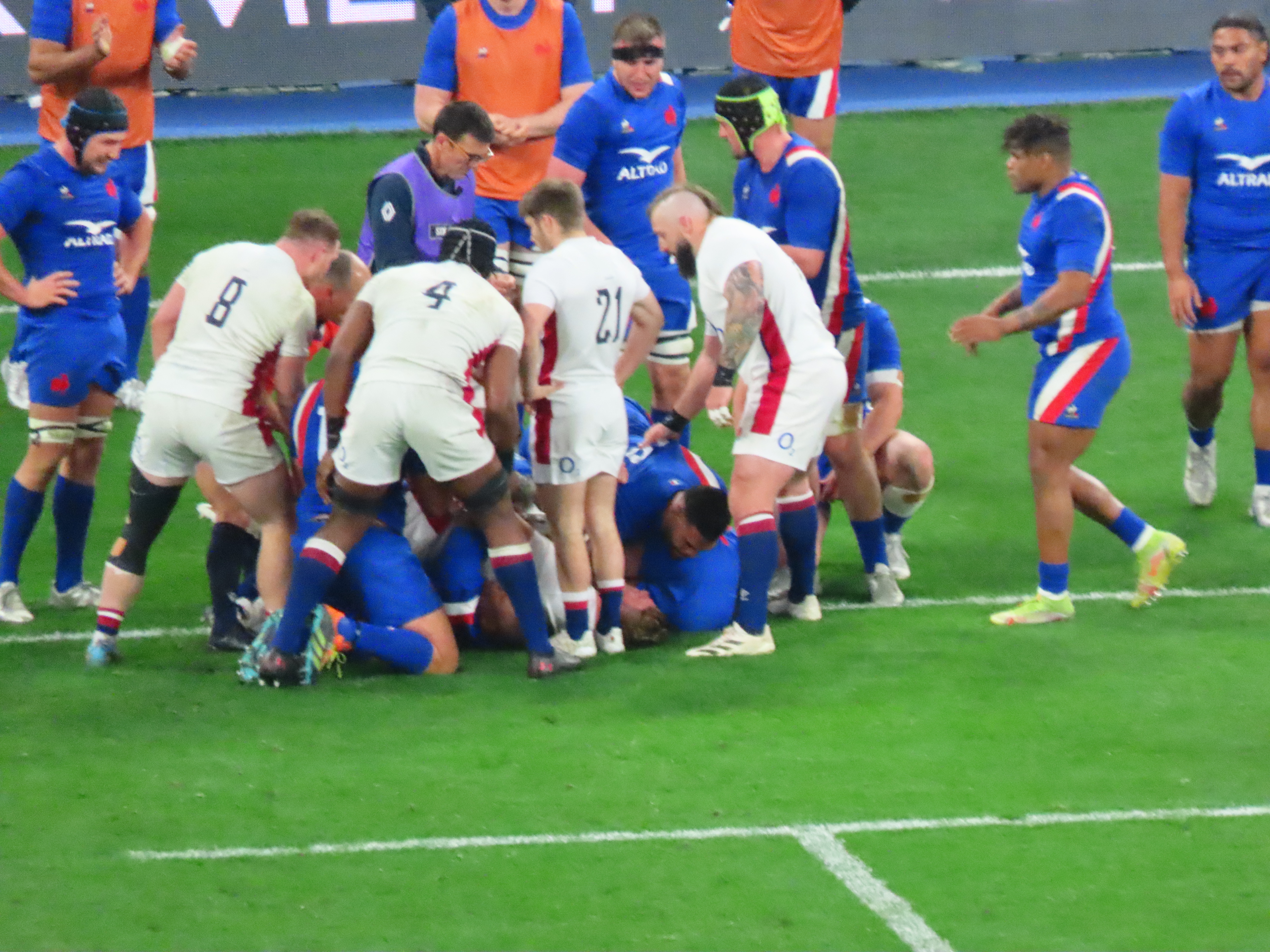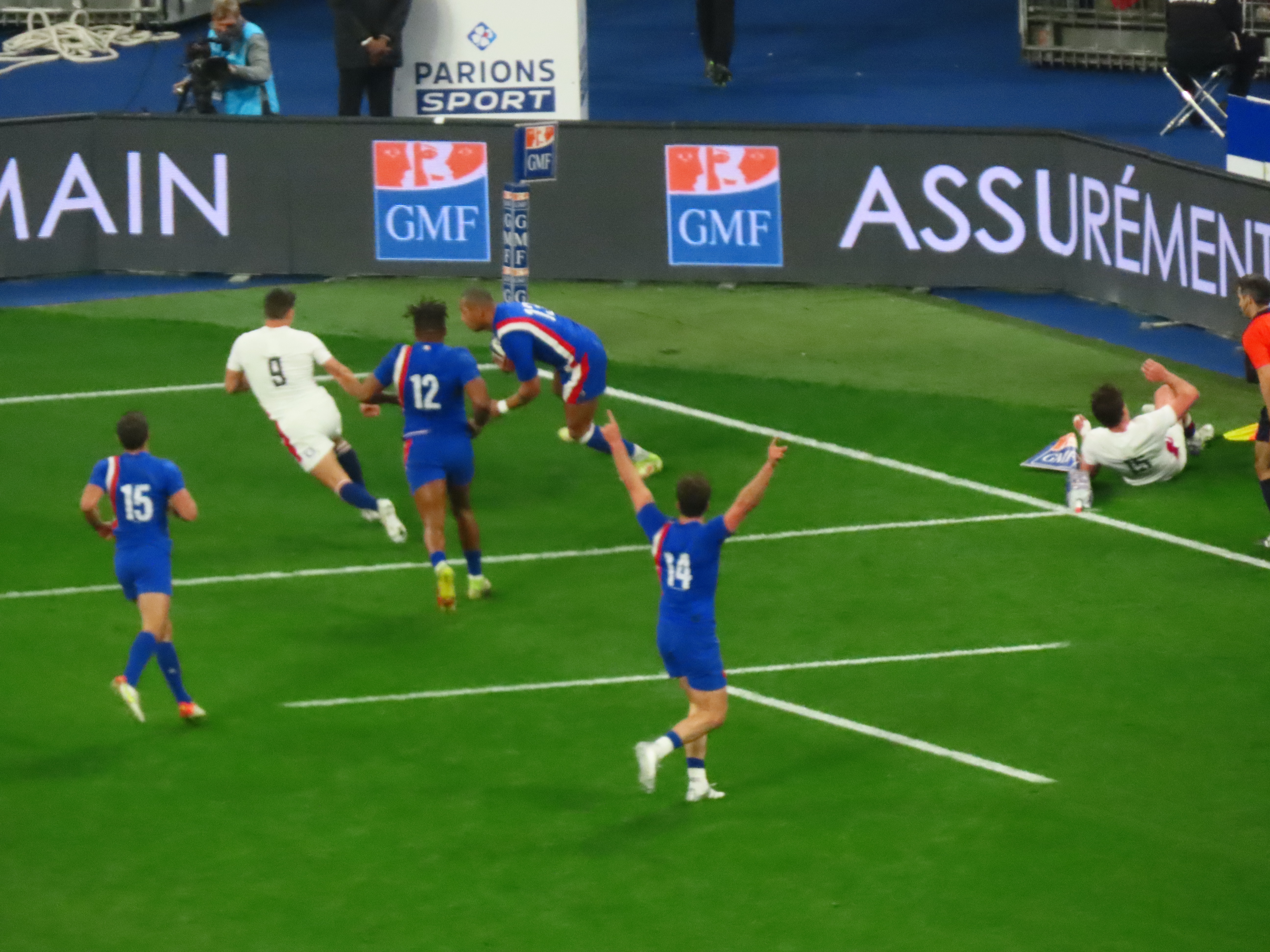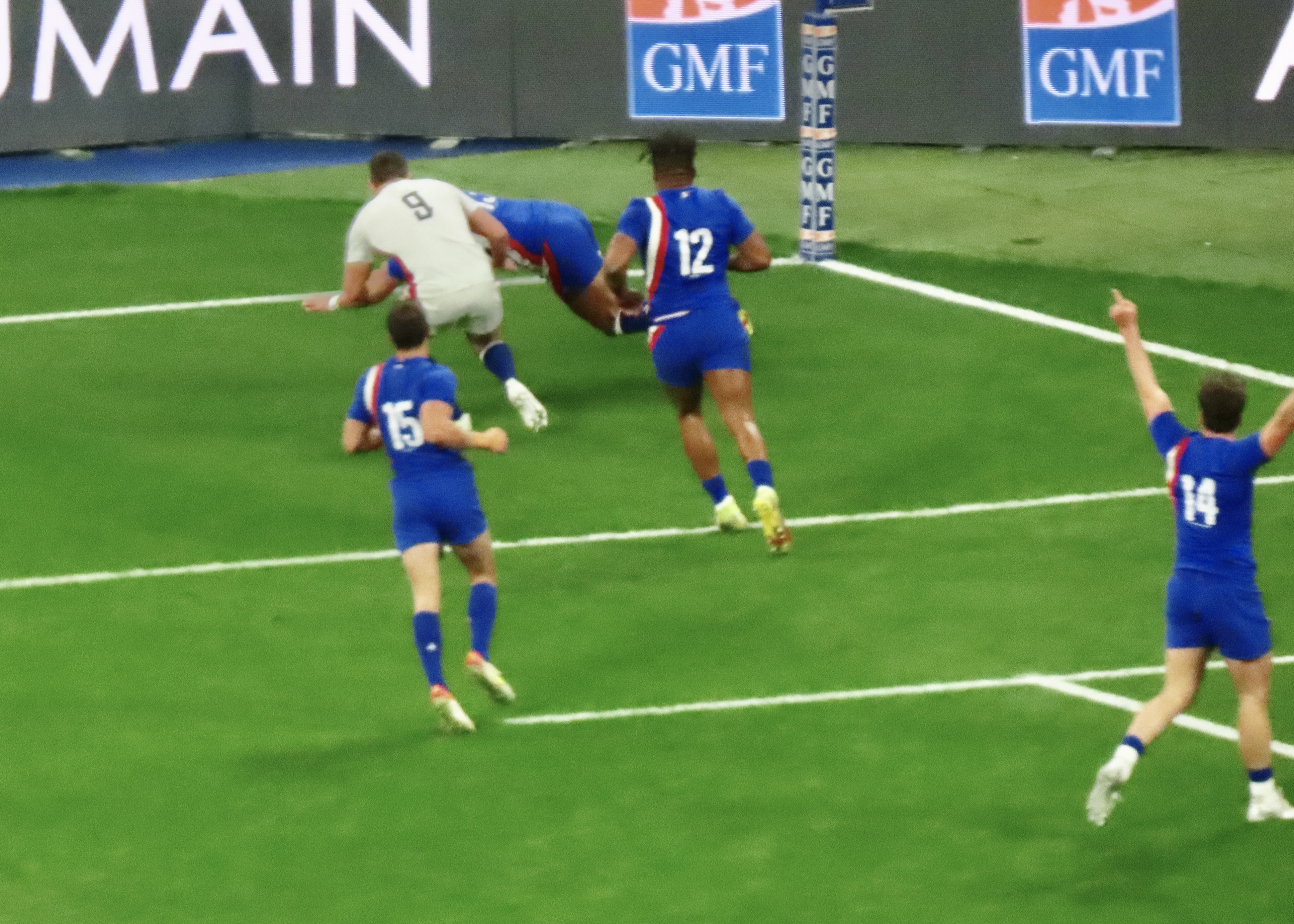 Ellis Genge, the Prop, just to clarify, was second on the metres run, with 78, England’s tactic of him taking the ball from most kicks down field and running it back, was a clarification of his fitness, but a strange tactic. And one that ultimately didn’t lead to much at all. Melvyn Jaminet was given an early penalty opportunity which he duly converted. France’s first try was scored by Gael Fickou, my first trip to the Stade to watch England was in 2014, Fickou came on as a substitute in a game England were winning, he took that win away with a great try, this one was taken in some style in 2022 too! I make no apologies for the raft of photos.