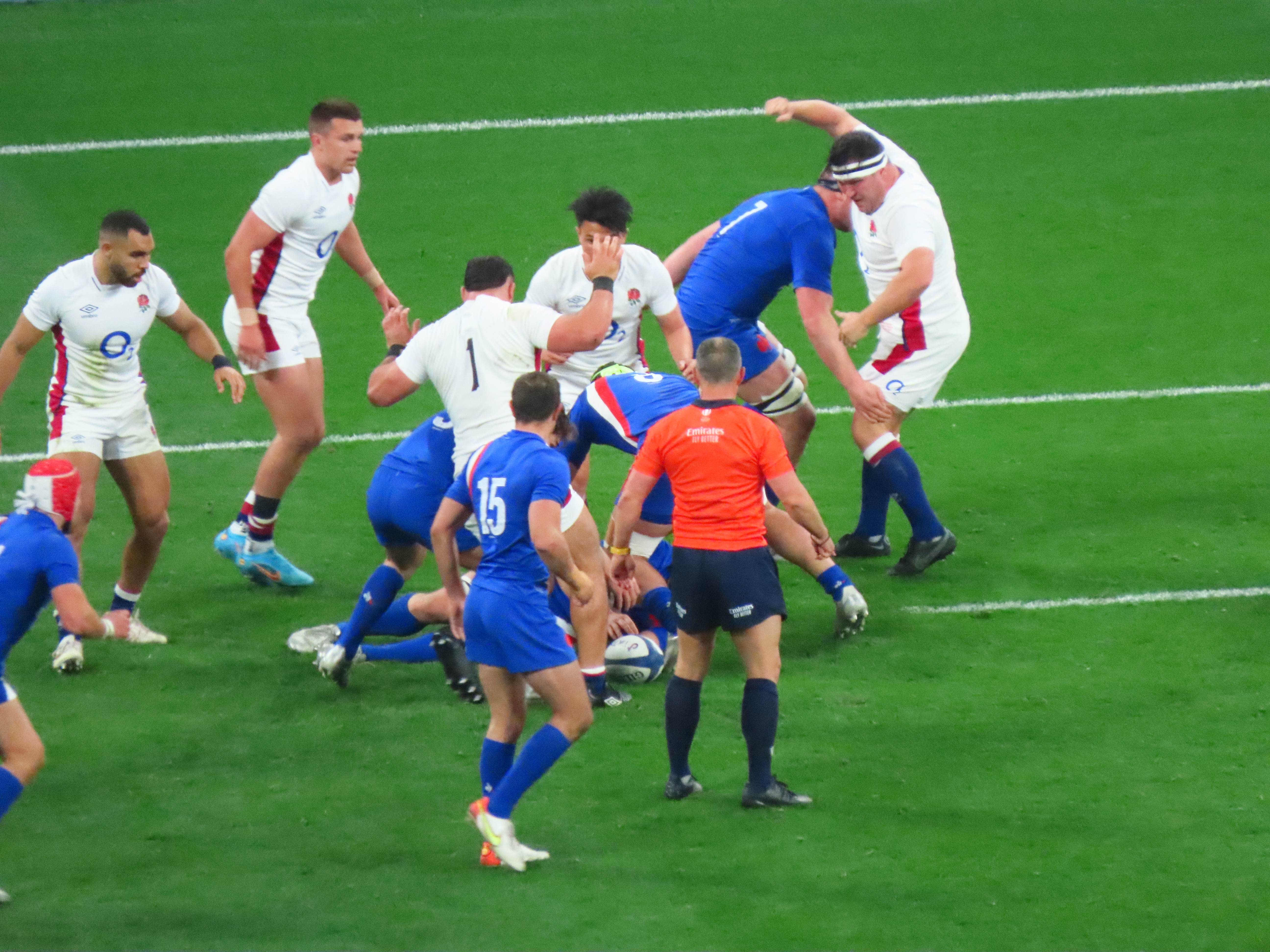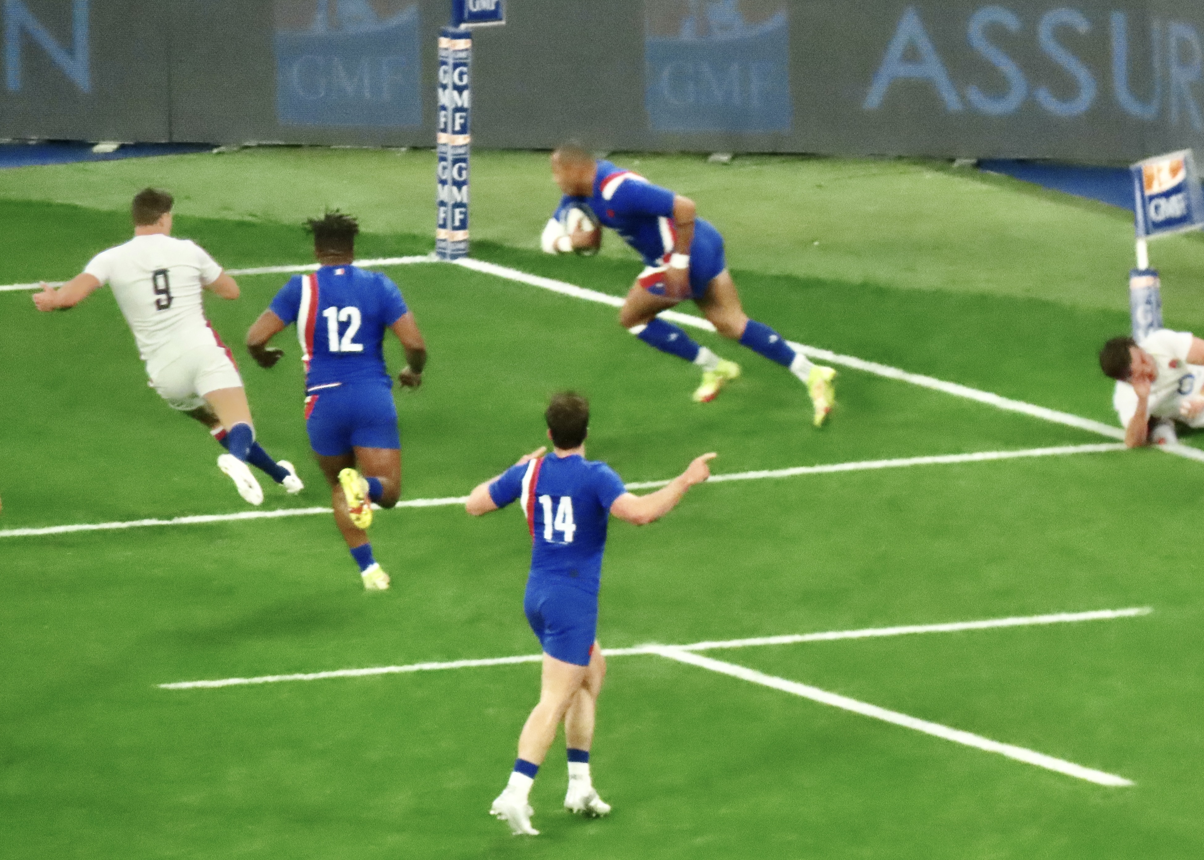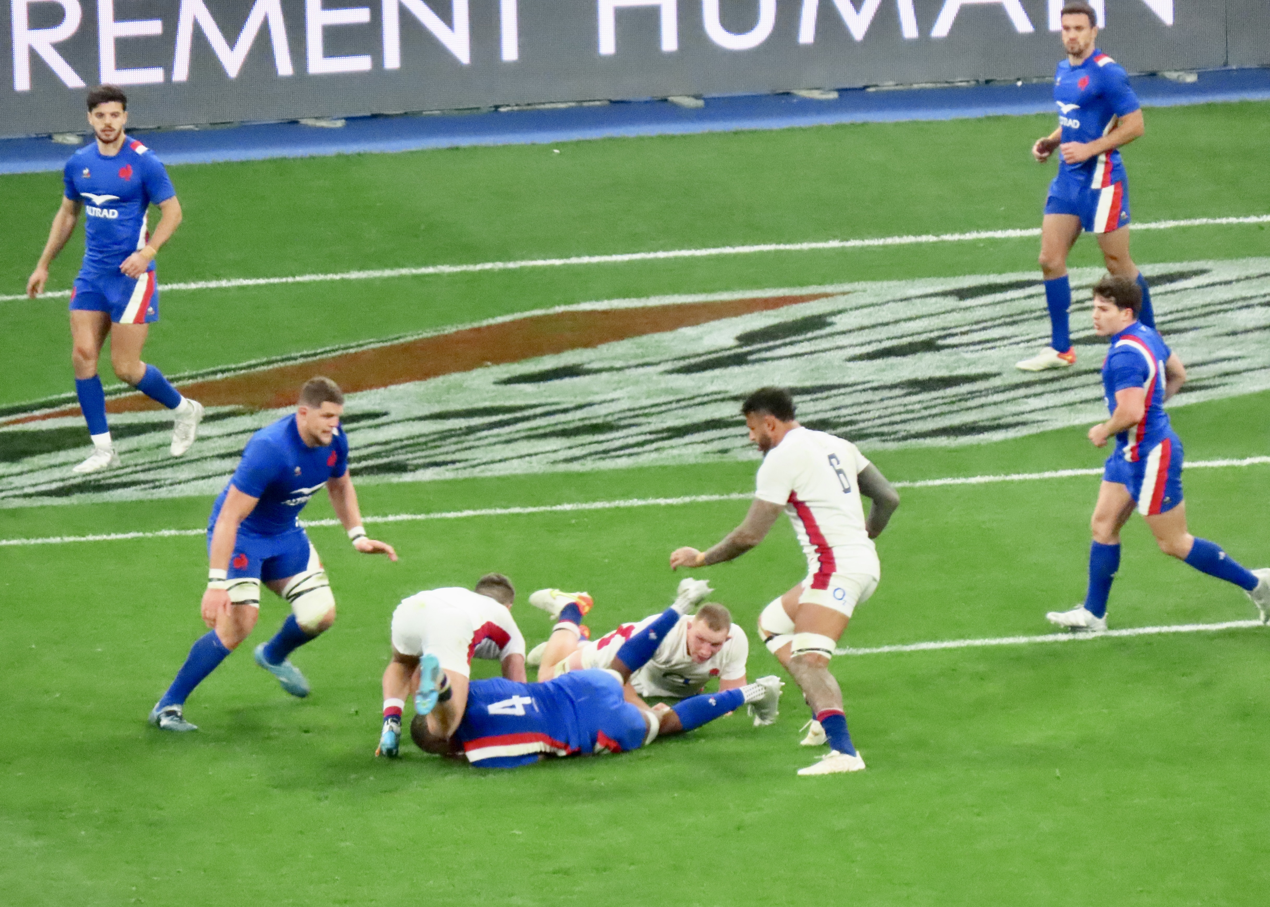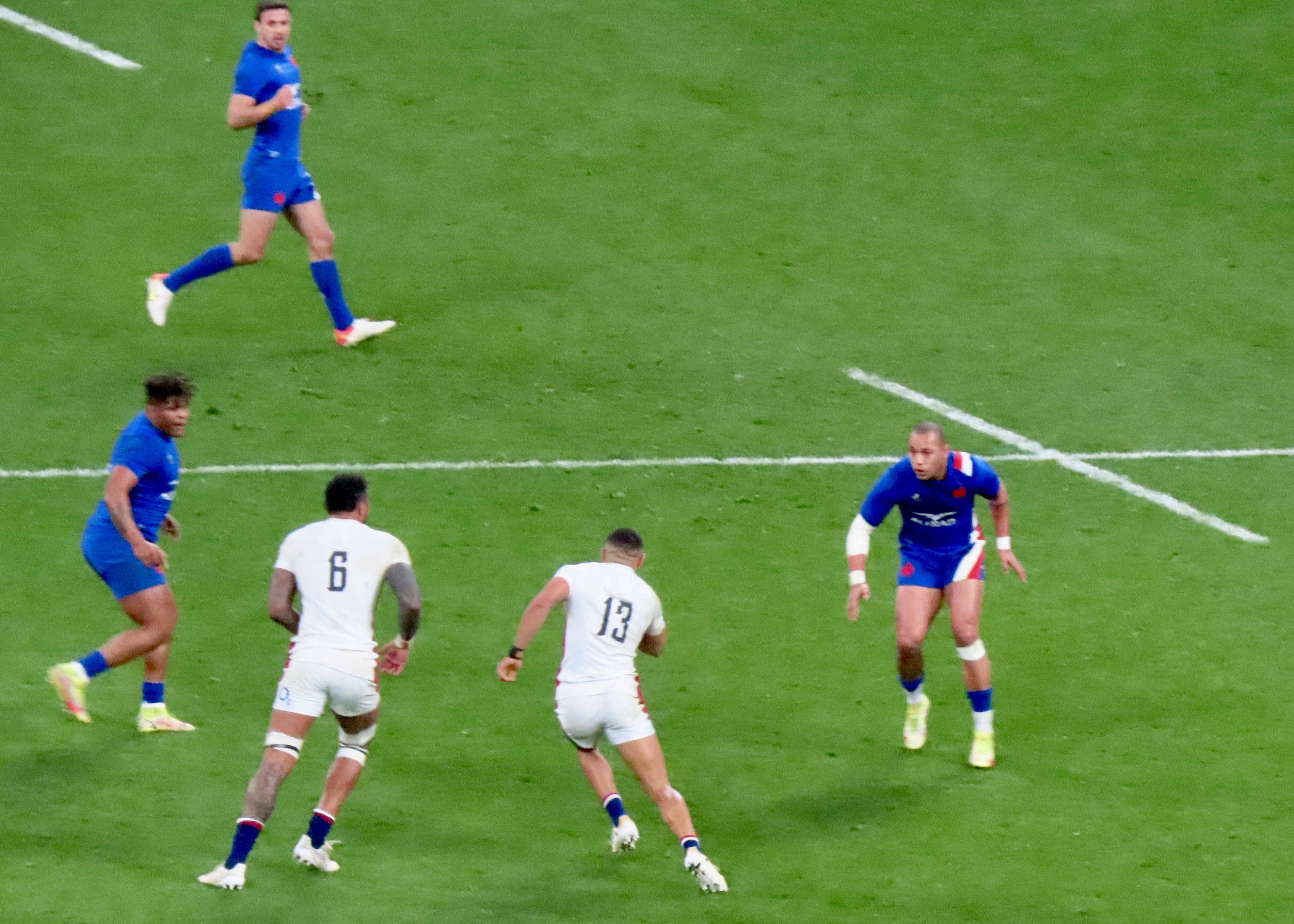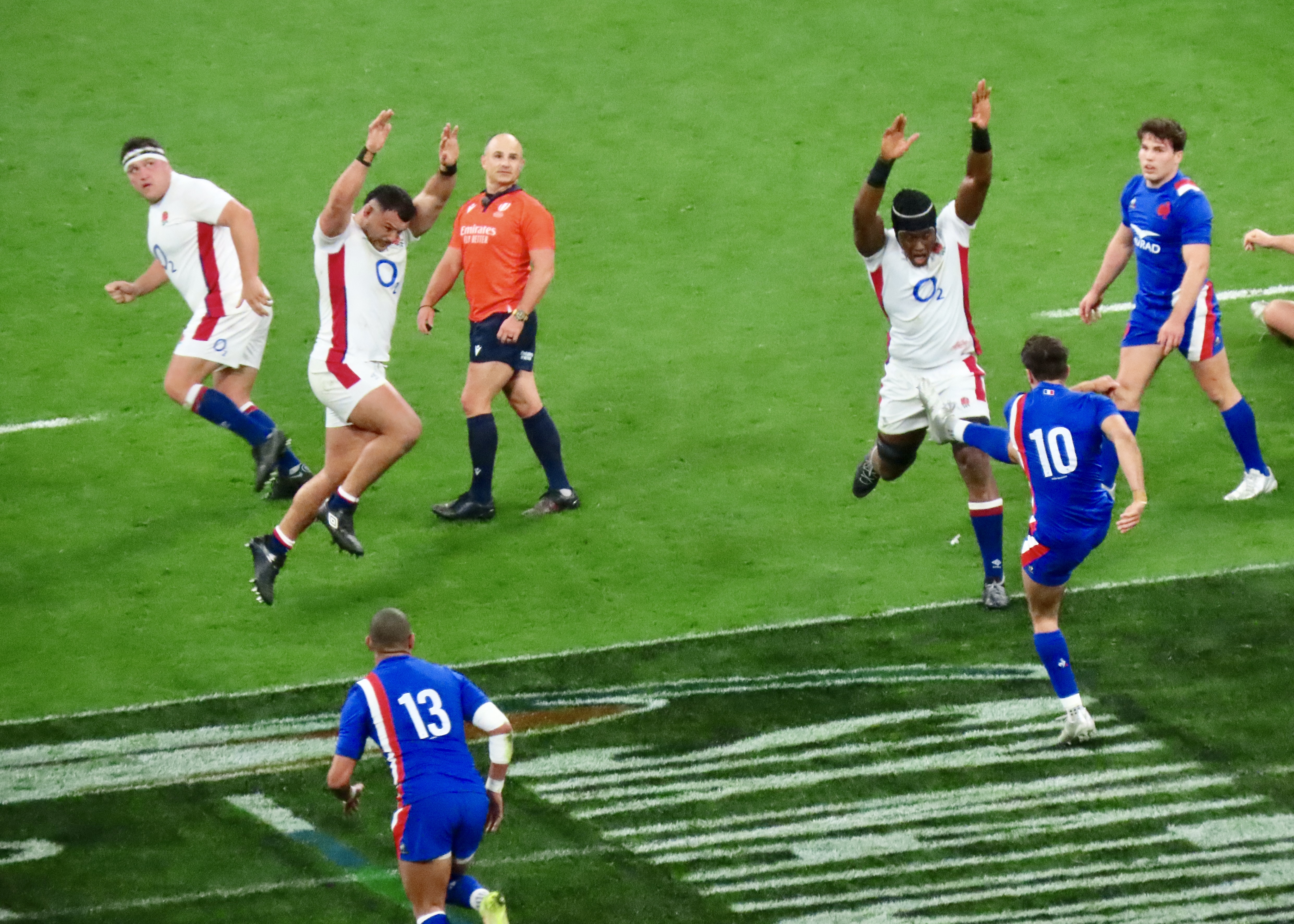 Ellis Genge, the Prop, just to clarify, was second on the metres run, with 78, England’s tactic of him taking the ball from most kicks down field and running it back, was a clarification of his fitness, but a strange tactic. And one that ultimately didn’t lead to much at all. Melvyn Jaminet was given an early penalty opportunity which he duly converted. France’s first try was scored by Gael Fickou, my first trip to the Stade to watch England was in 2014, Fickou came on as a substitute in a game England were winning, he took that win away with a great try, this one was taken in some style in 2022 too! I make no apologies for the raft of photos.
