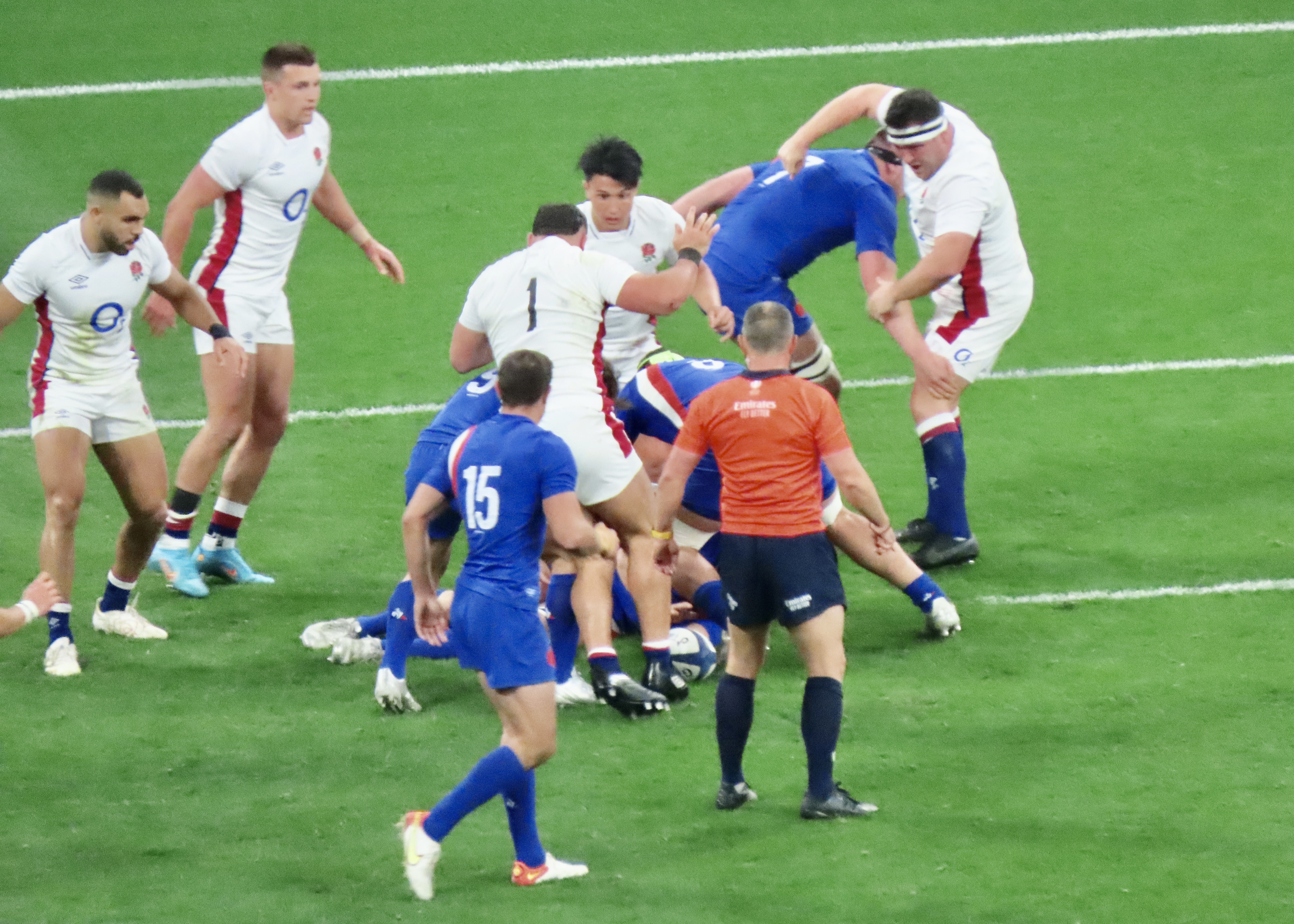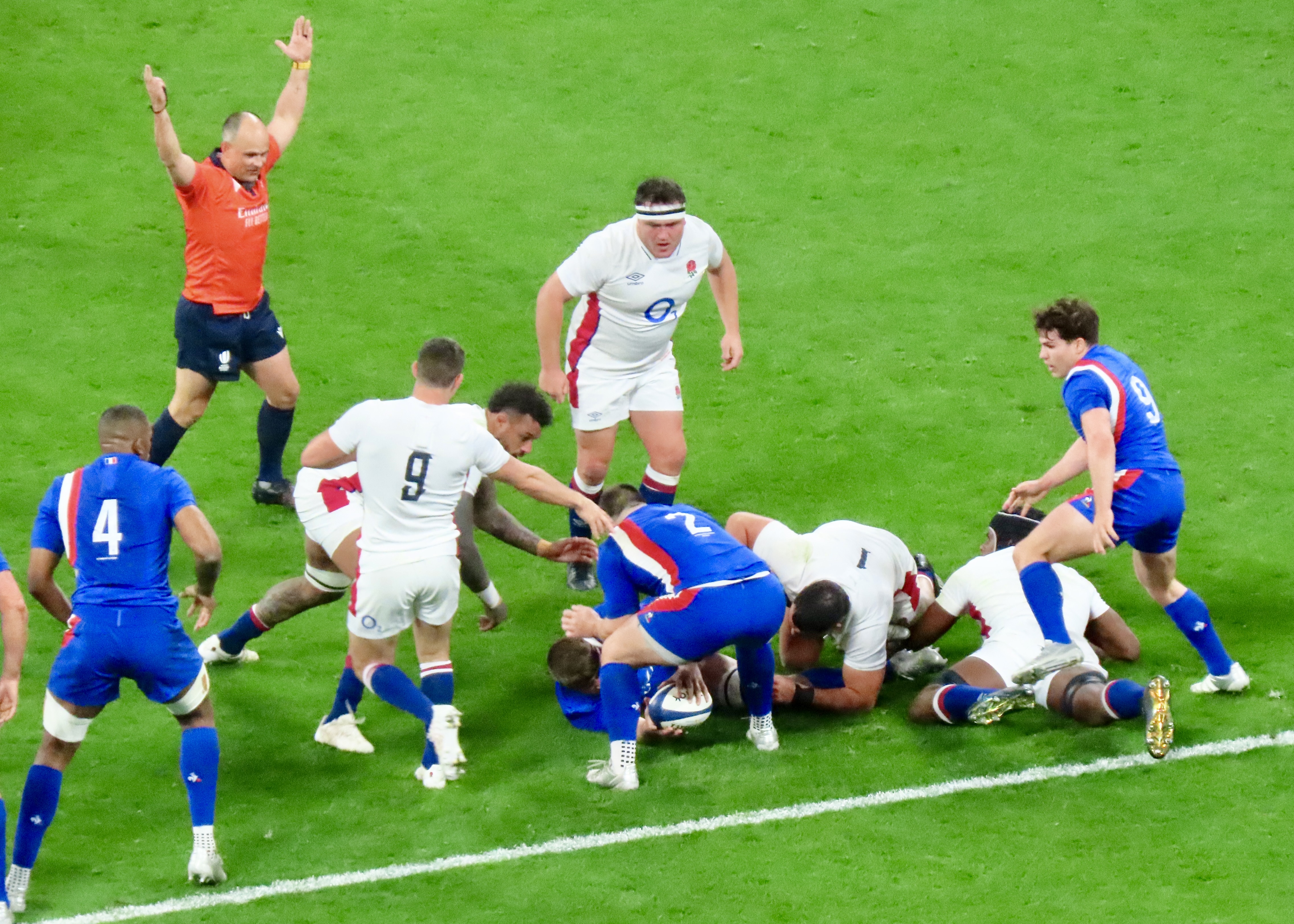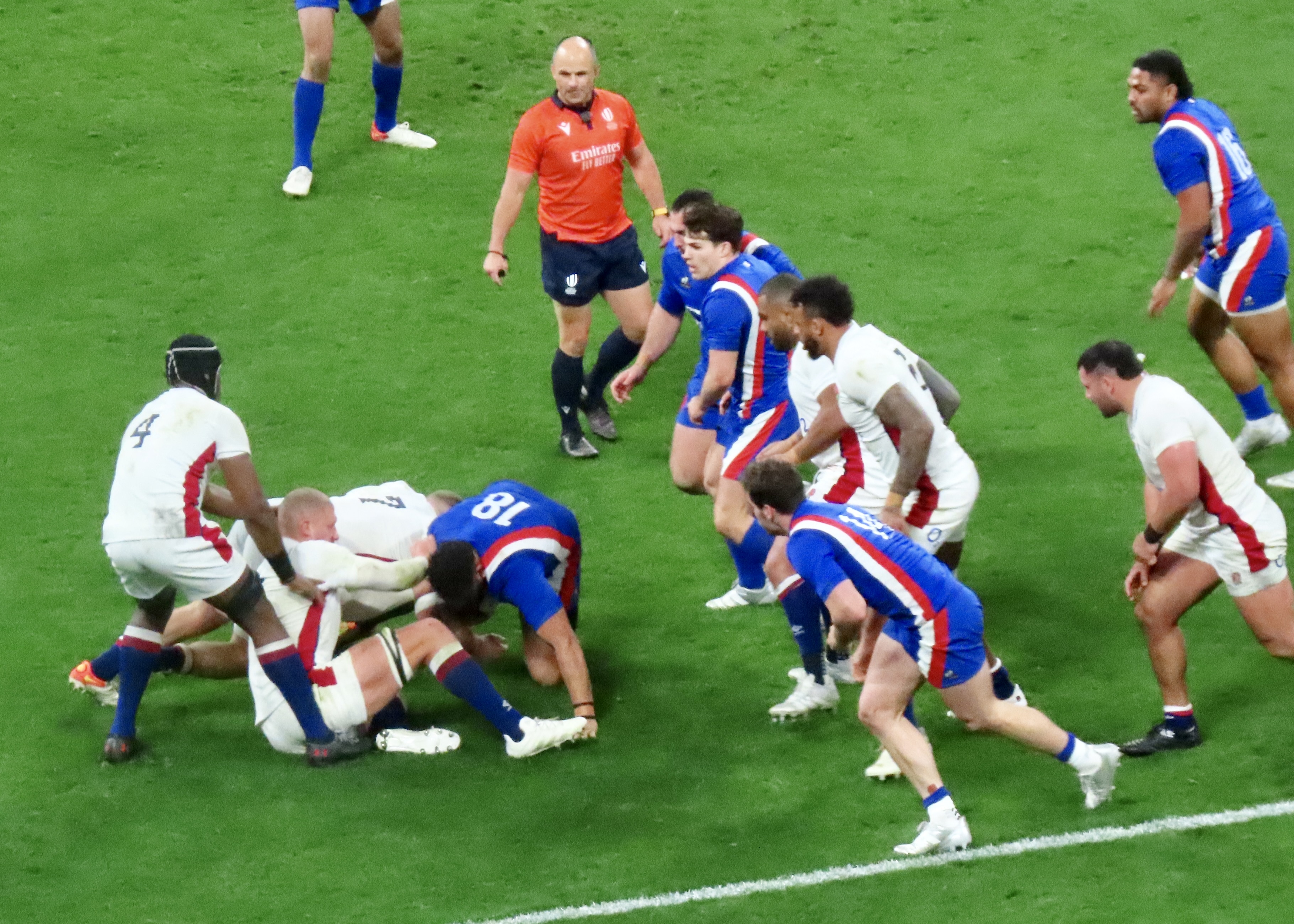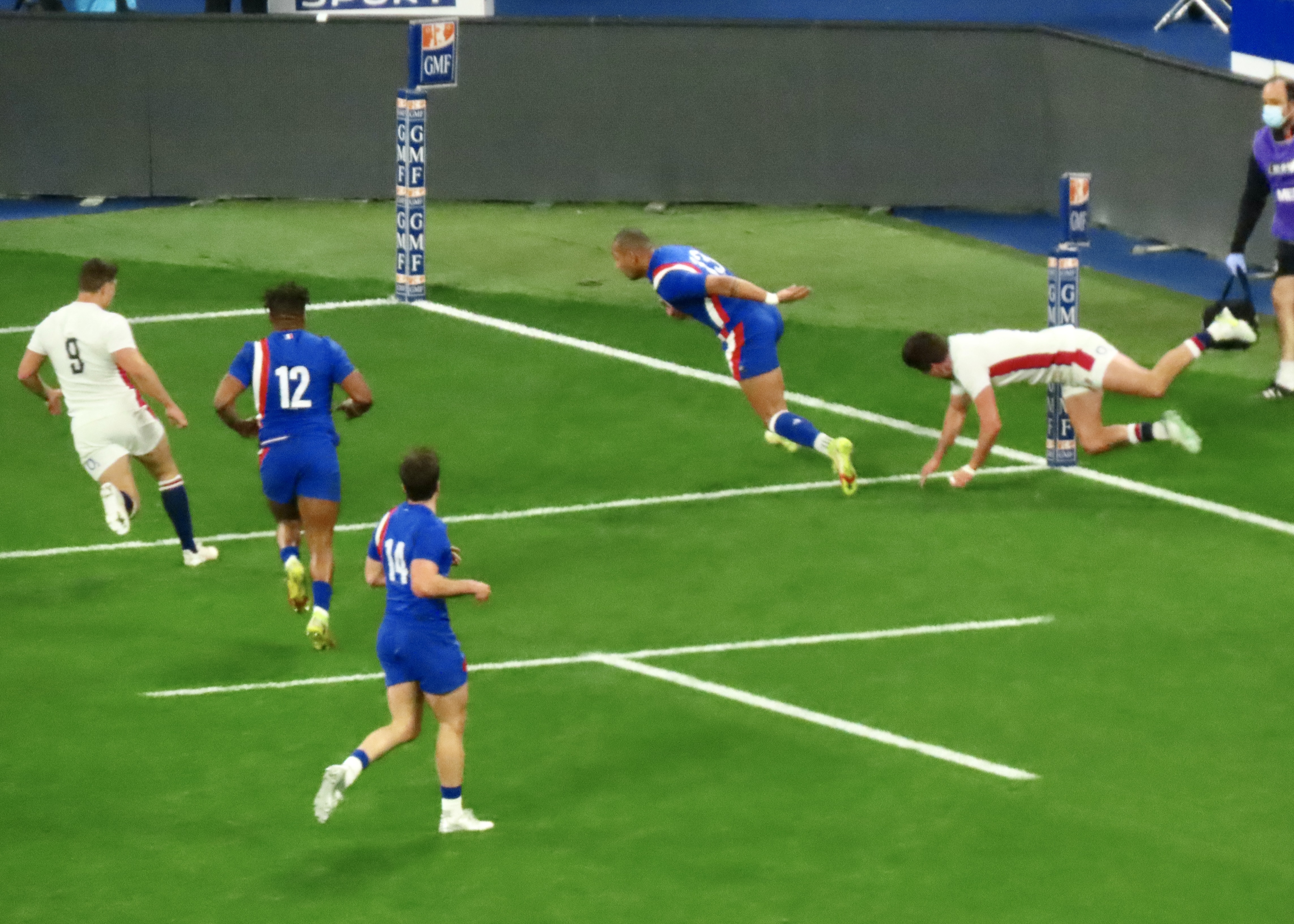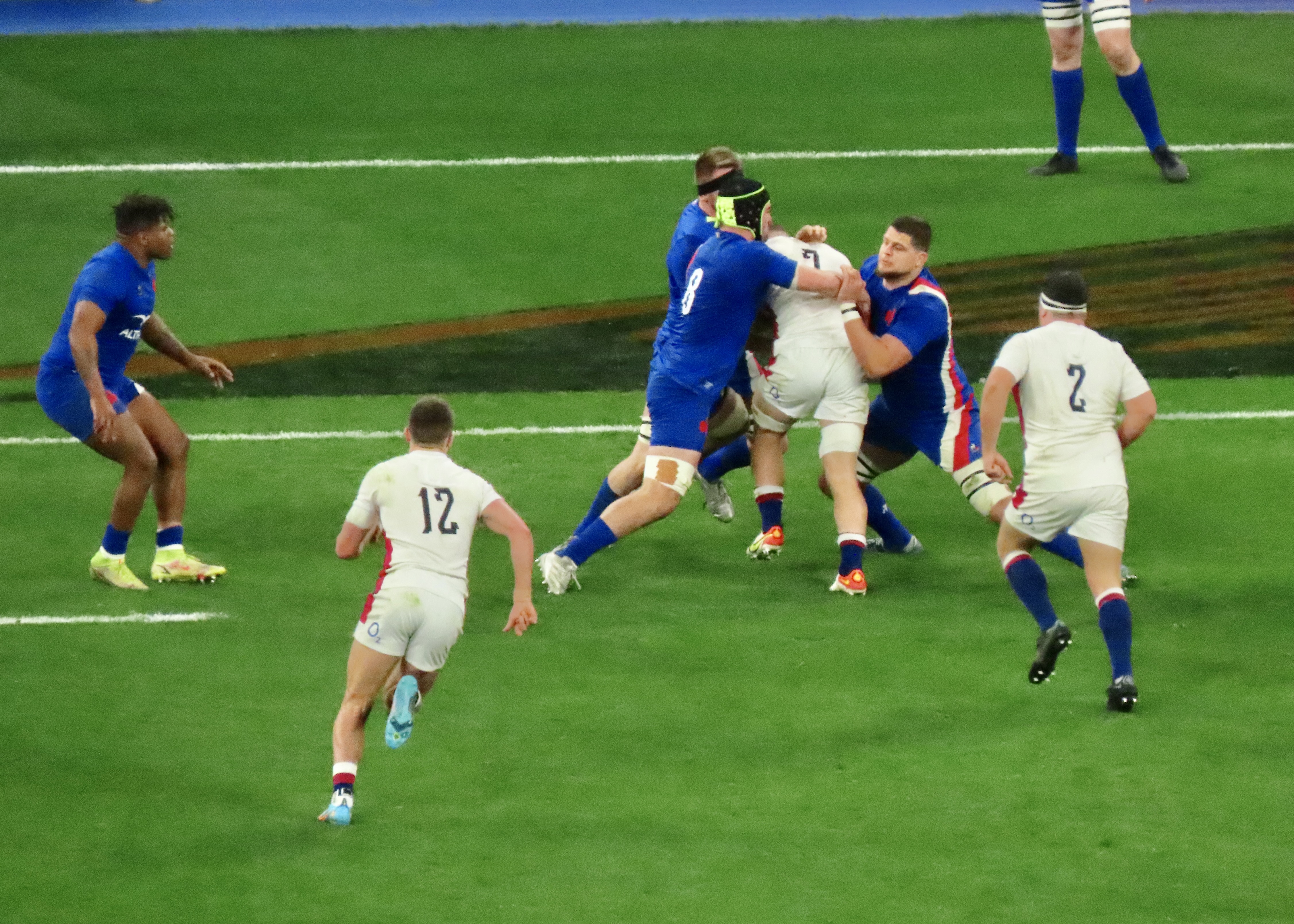 Ellis Genge, the Prop, just to clarify, was second on the metres run, with 78, England’s tactic of him taking the ball from most kicks down field and running it back, was a clarification of his fitness, but a strange tactic. And one that ultimately didn’t lead to much at all. Melvyn Jaminet was given an early penalty opportunity which he duly converted. France’s first try was scored by Gael Fickou, my first trip to the Stade to watch England was in 2014, Fickou came on as a substitute in a game England were winning, he took that win away with a great try, this one was taken in some style in 2022 too! I make no apologies for the raft of photos.