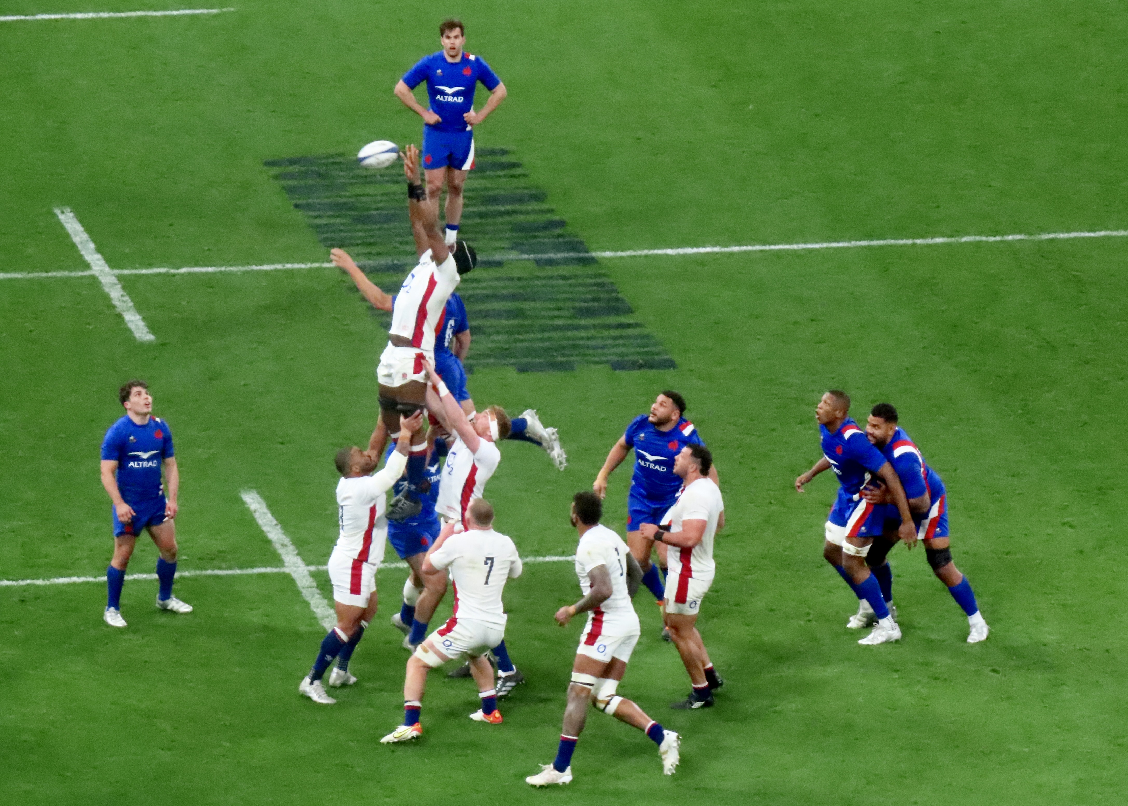 Jaminet had unusually missed the conversion, and Marcus Smith kicked 2 penalties successfully, one on 20 and another on 30 minutes, England were staying in touch. Ellis Genge prevented Romain Ntamack from scoring with a great intervention but Francois Cros was on hand to dot the ball down. The teams went in at half-time with the scores on France 18 England 6.