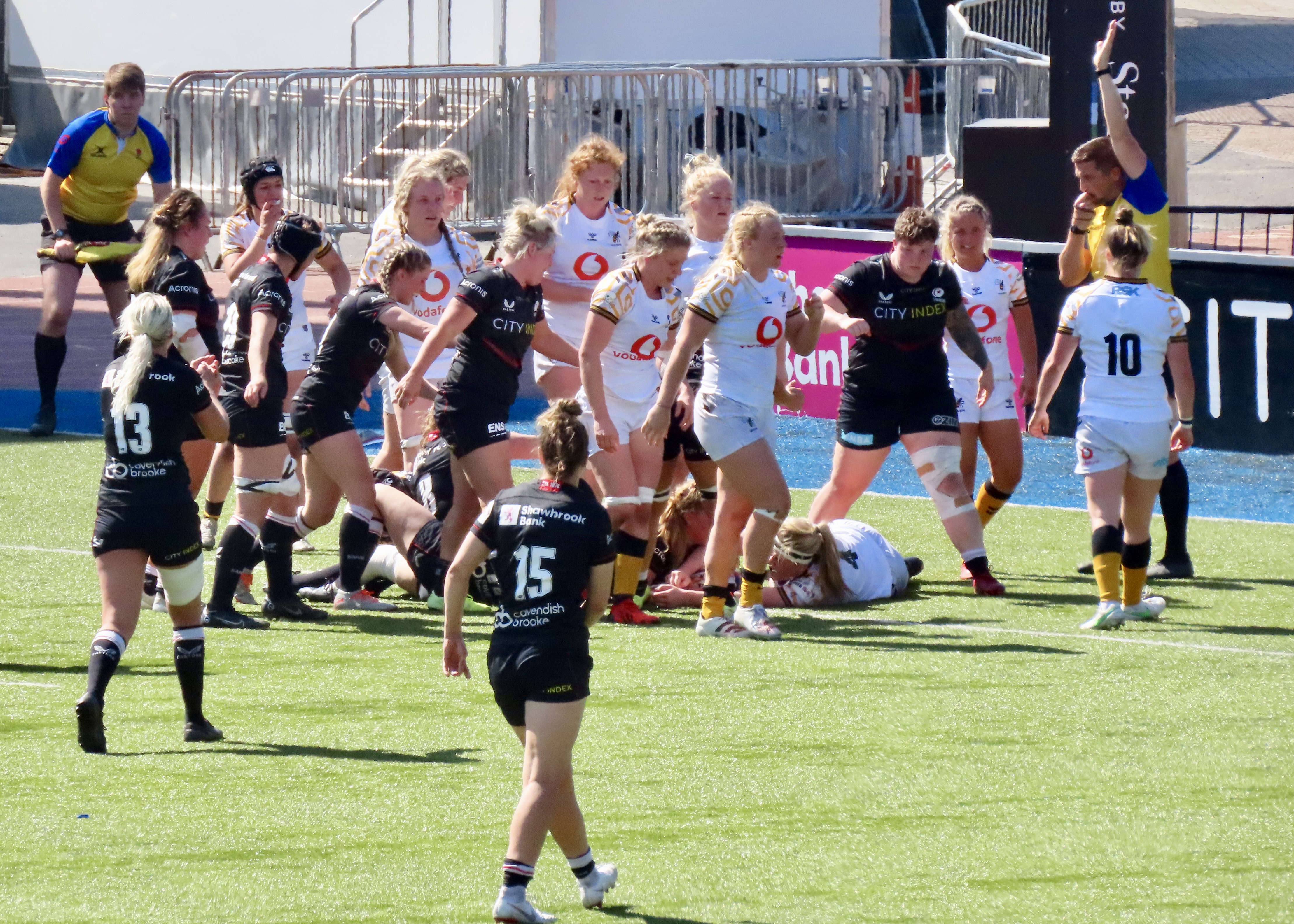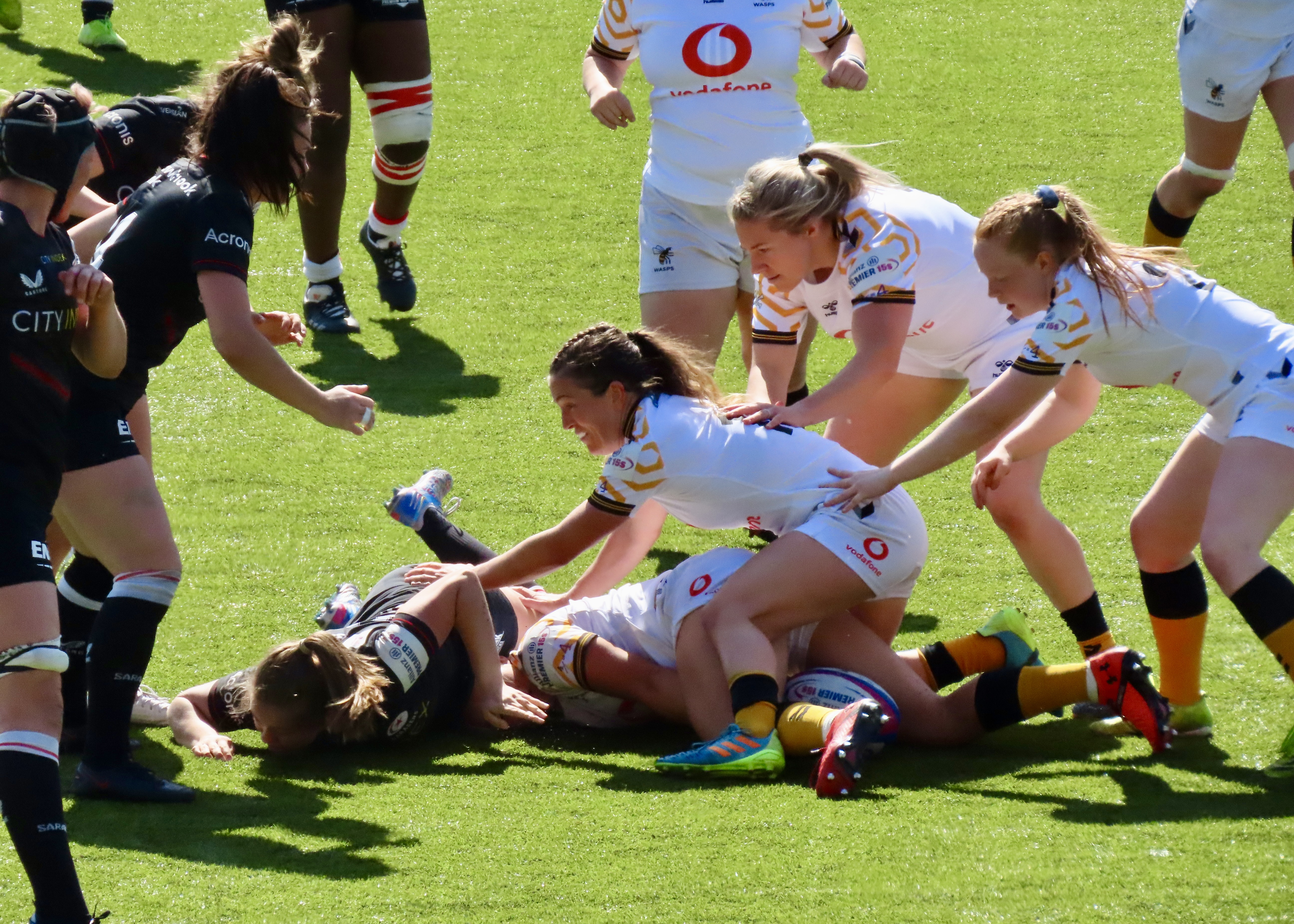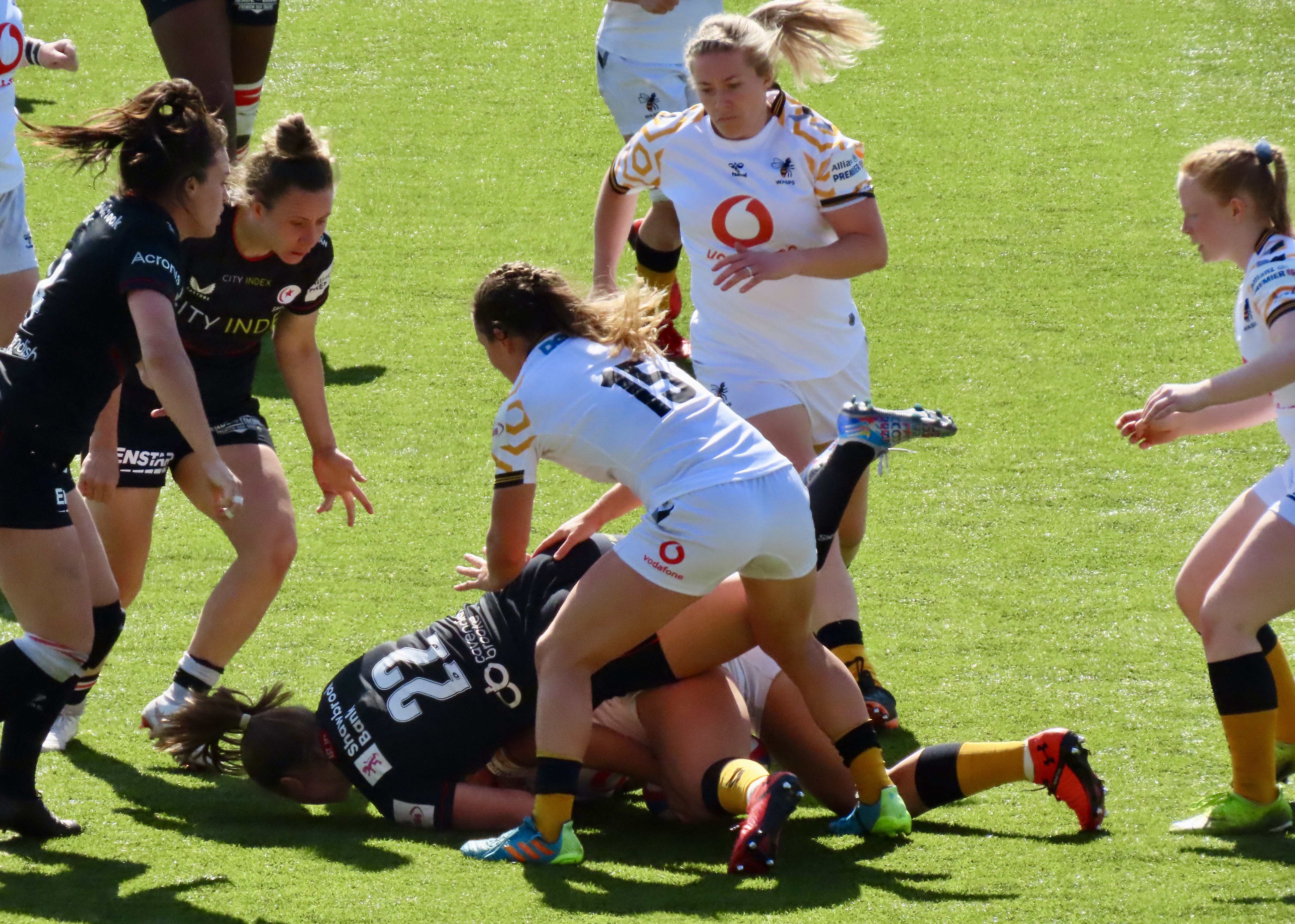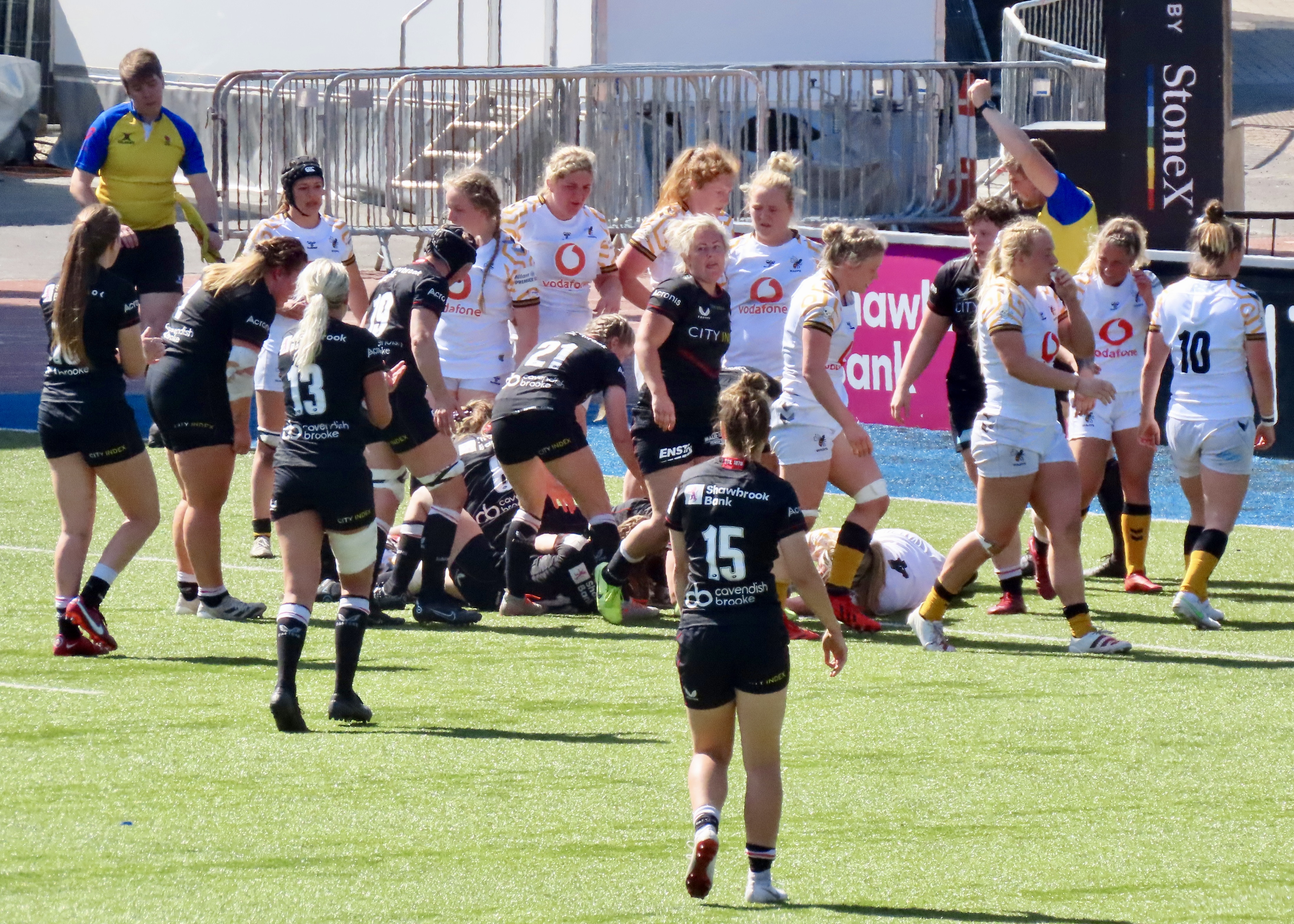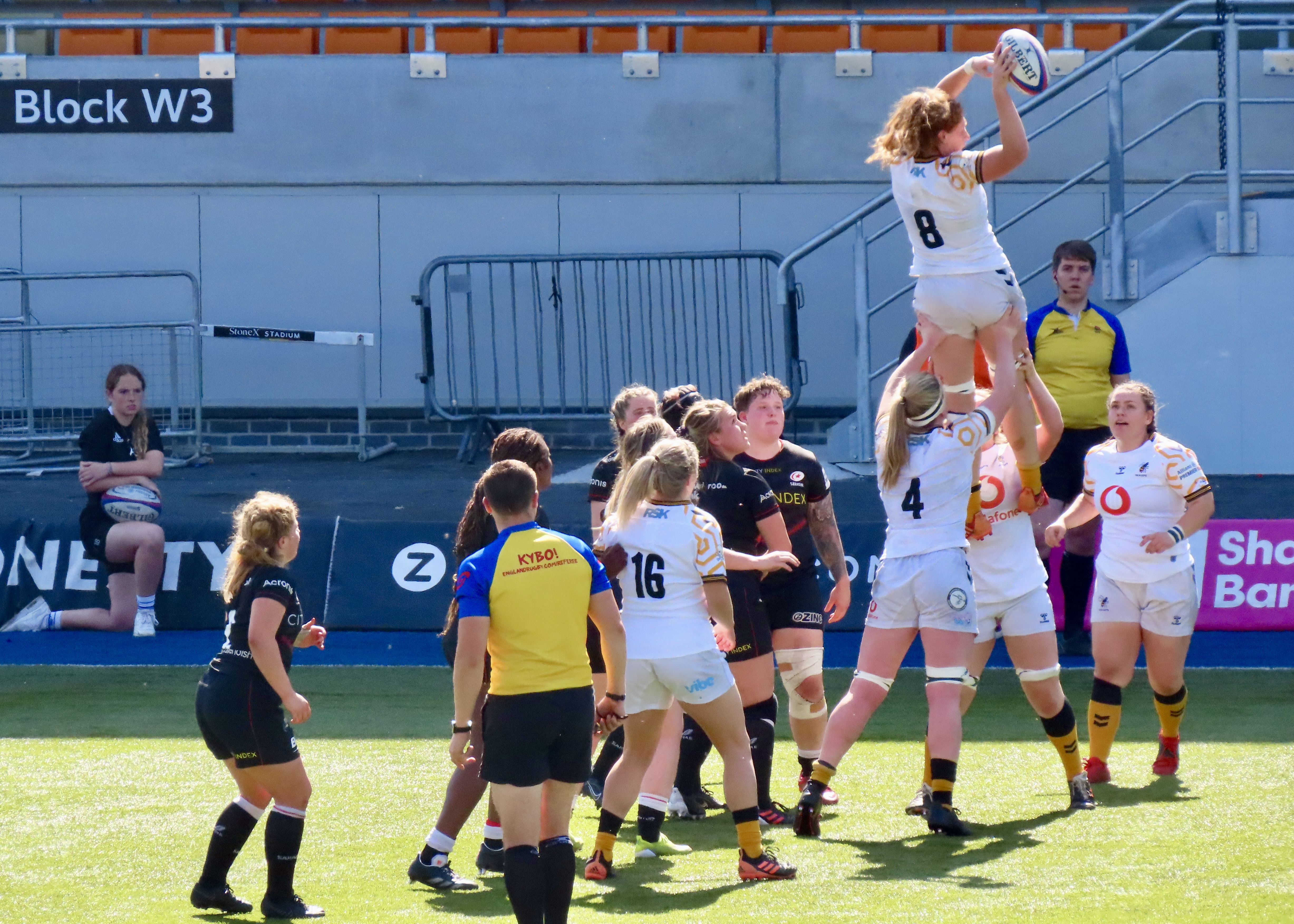 A glorious afternoon at the Stonex Stadium saw Wasps Women visiting, the last game of the regular season was a cracker! Saracens had been heavily beaten in Exeter the week before. Exeter Chiefs Women scored 54 to Saracens 12. Wasps had played and lost to Gloucester Hartpury Women. Saracens had 15 wins for the season and Wasps 9.