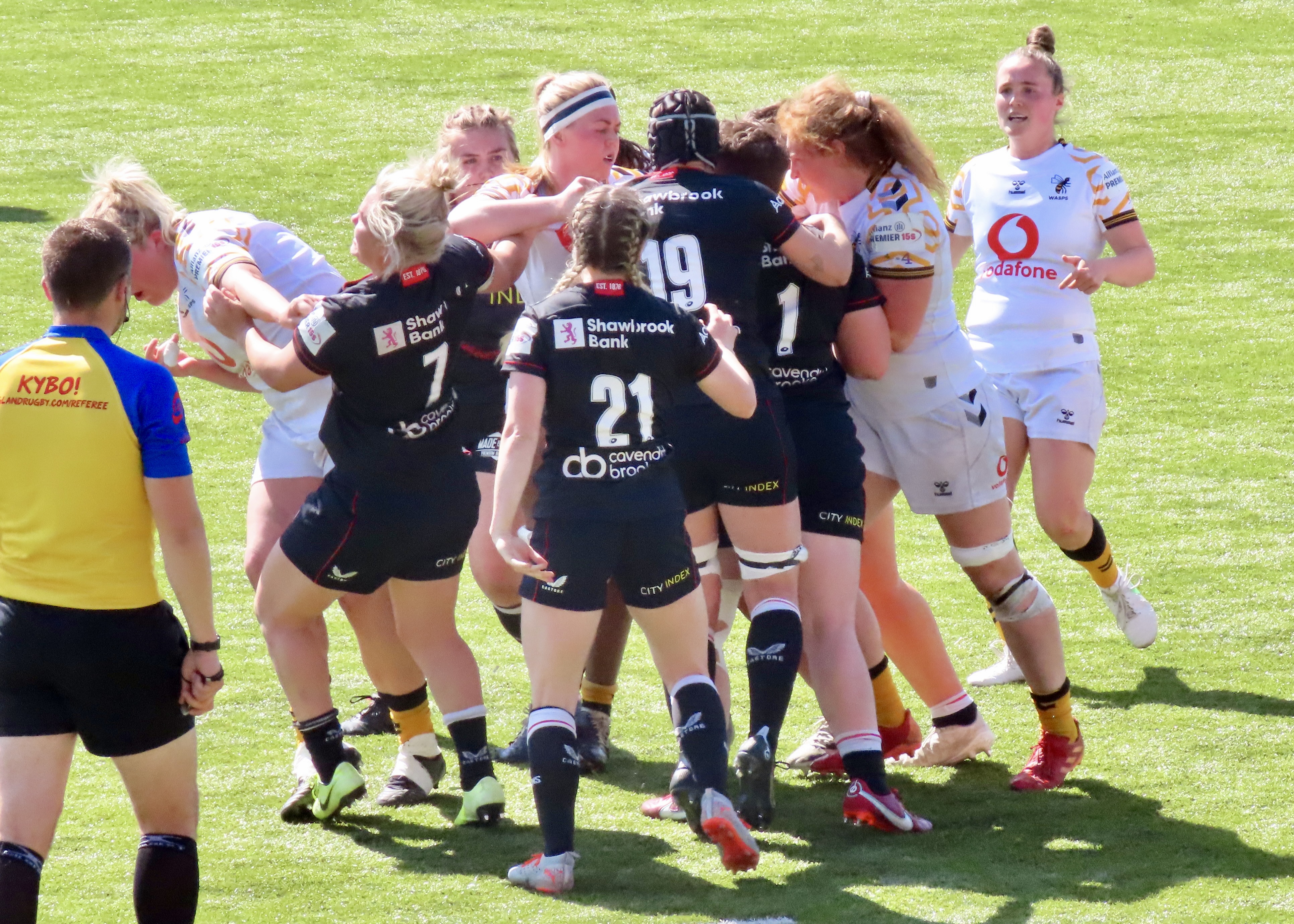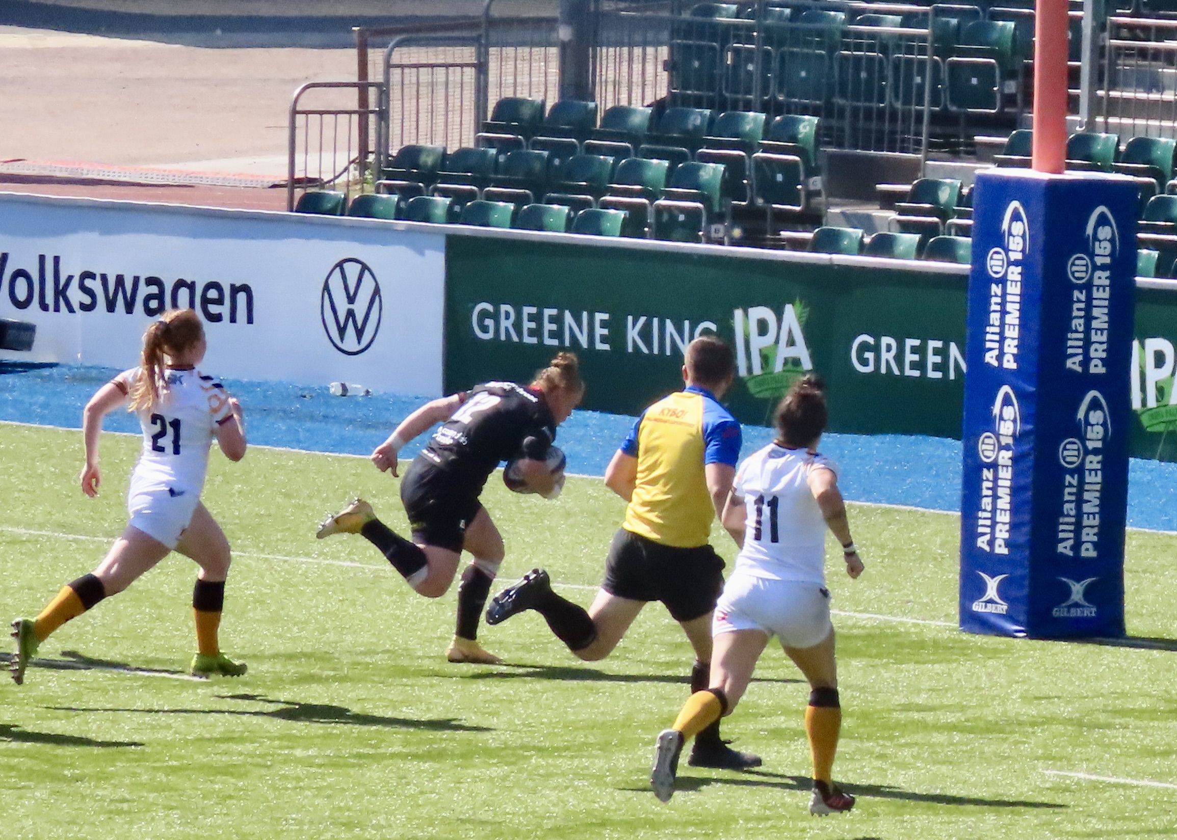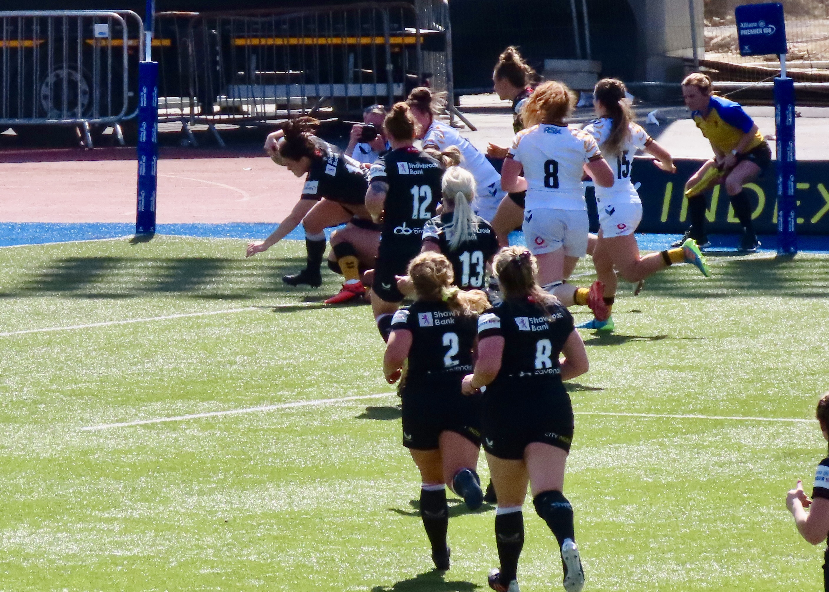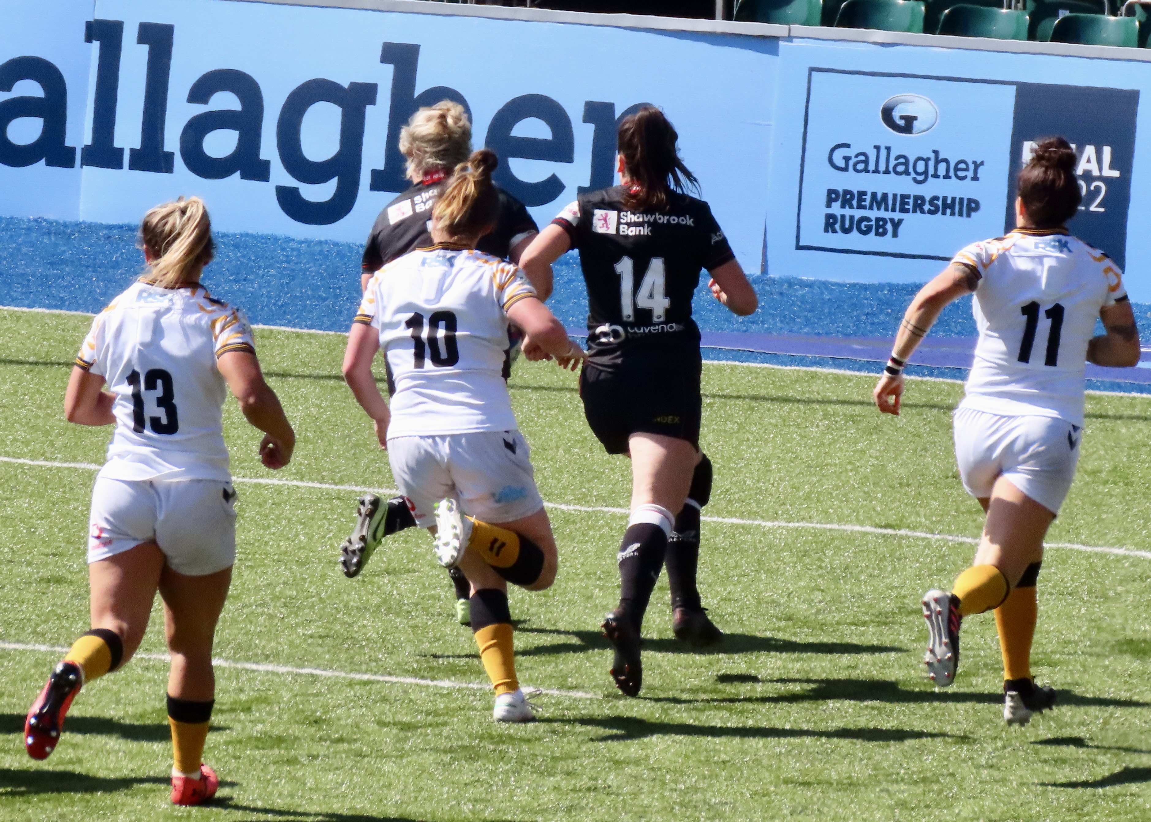 A glorious afternoon at the Stonex Stadium saw Wasps Women visiting, the last game of the regular season was a cracker! Saracens had been heavily beaten in Exeter the week before. Exeter Chiefs Women scored 54 to Saracens 12. Wasps had played and lost to Gloucester Hartpury Women. Saracens had 15 wins for the season and Wasps 9.