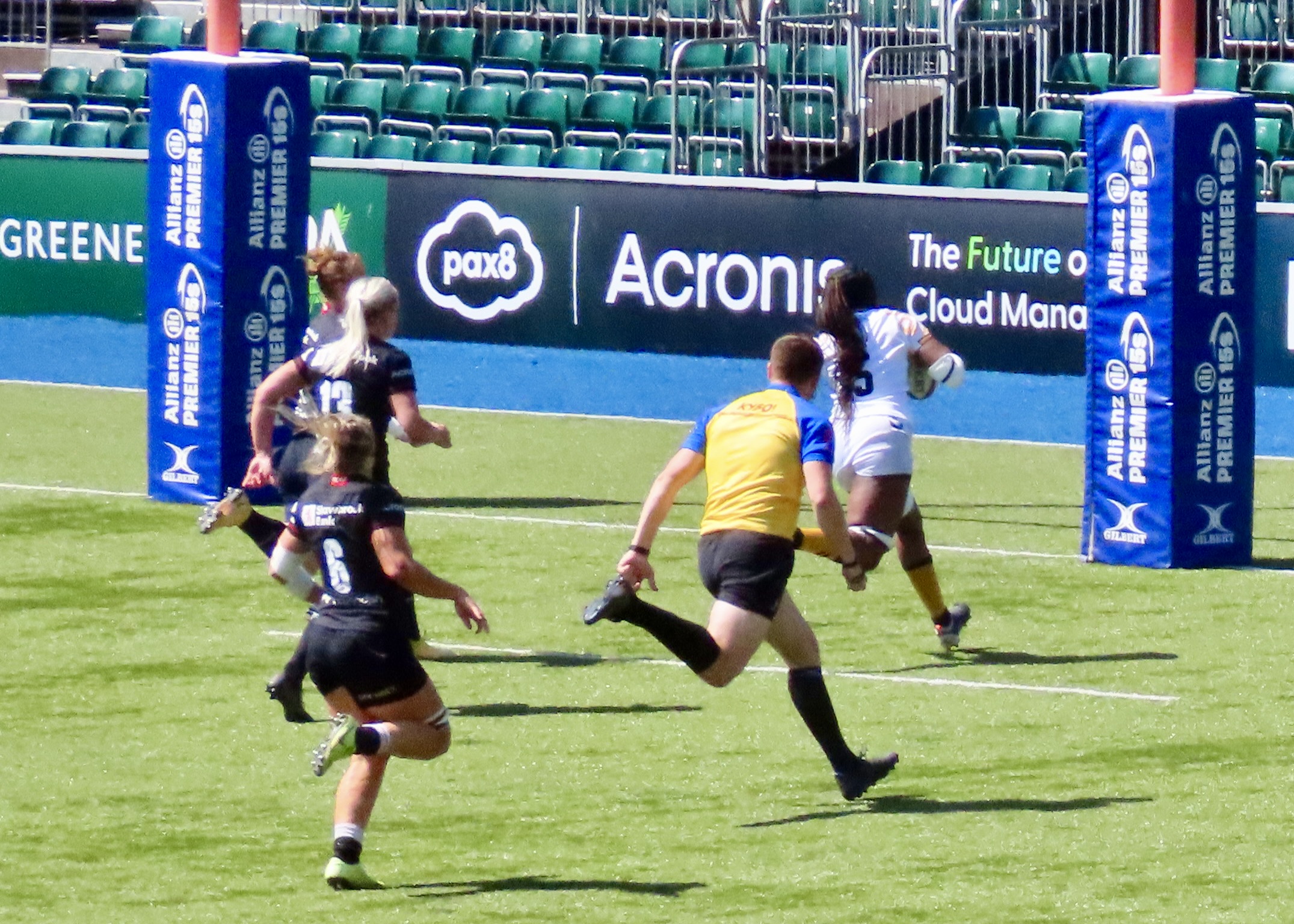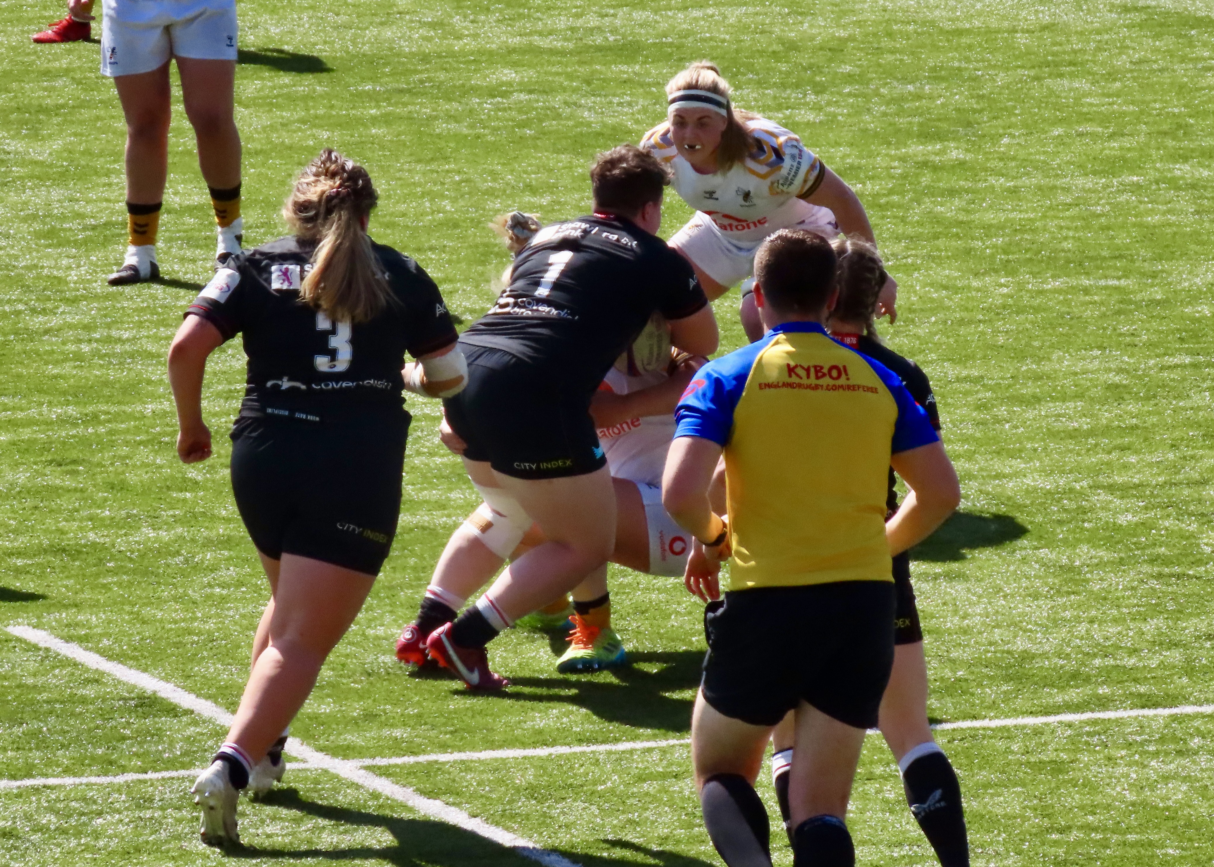 This was the proverbial game of 2 halves, Wasps werte the better team by far in the first half, they scored 3 tries to Saracens one on the first half. The first was from an intercept by Second Row Chris Balogun, it tells us something that Linkedin is where I’ve had to go to find anything out about Balogun, and of course what I can find there are her professional details. When I search for a young, average county cricketer online I can find all sorts of details, including age etc. Not so for this Premier 15’s rugby player. Hopefully that will change and soon.