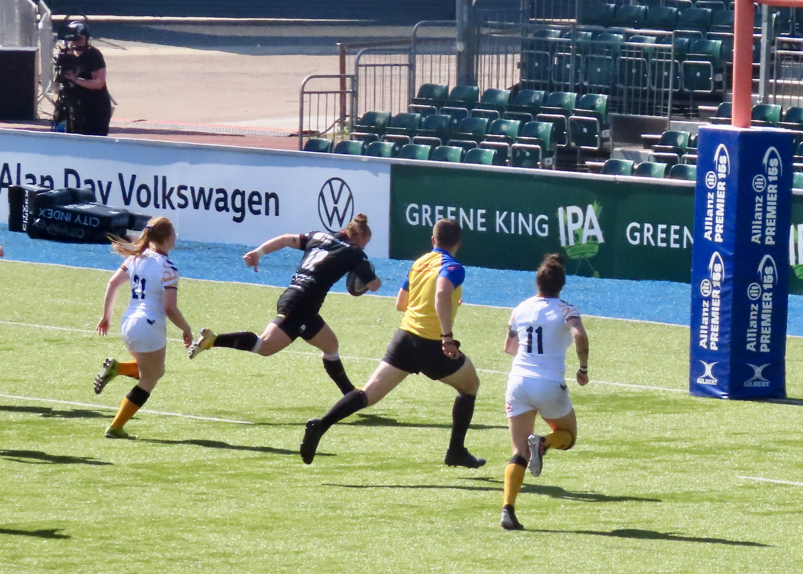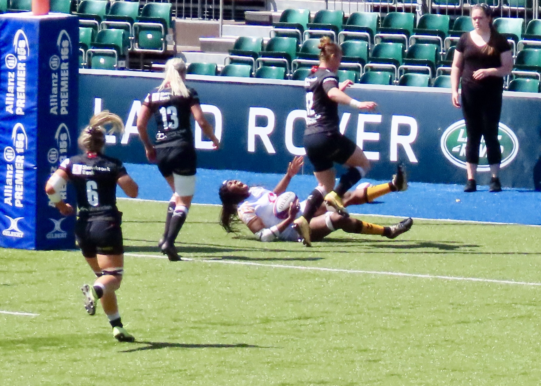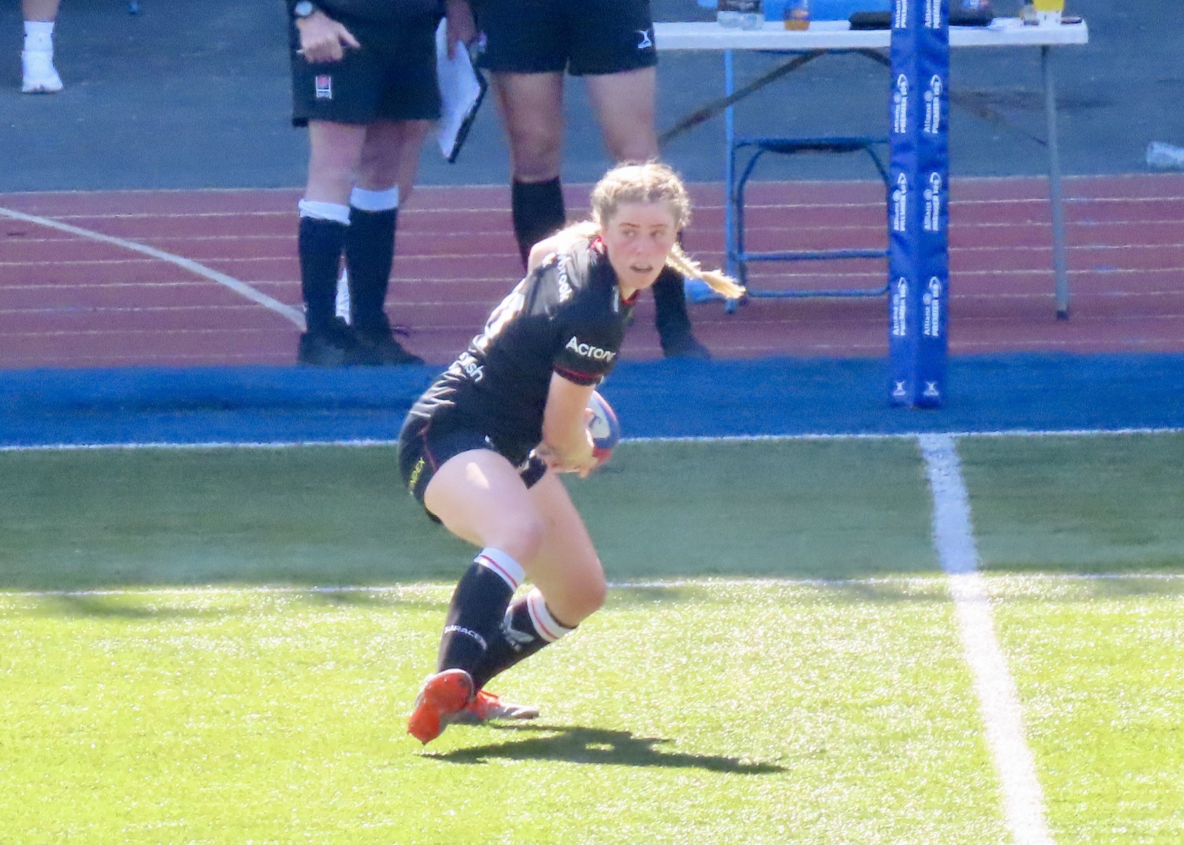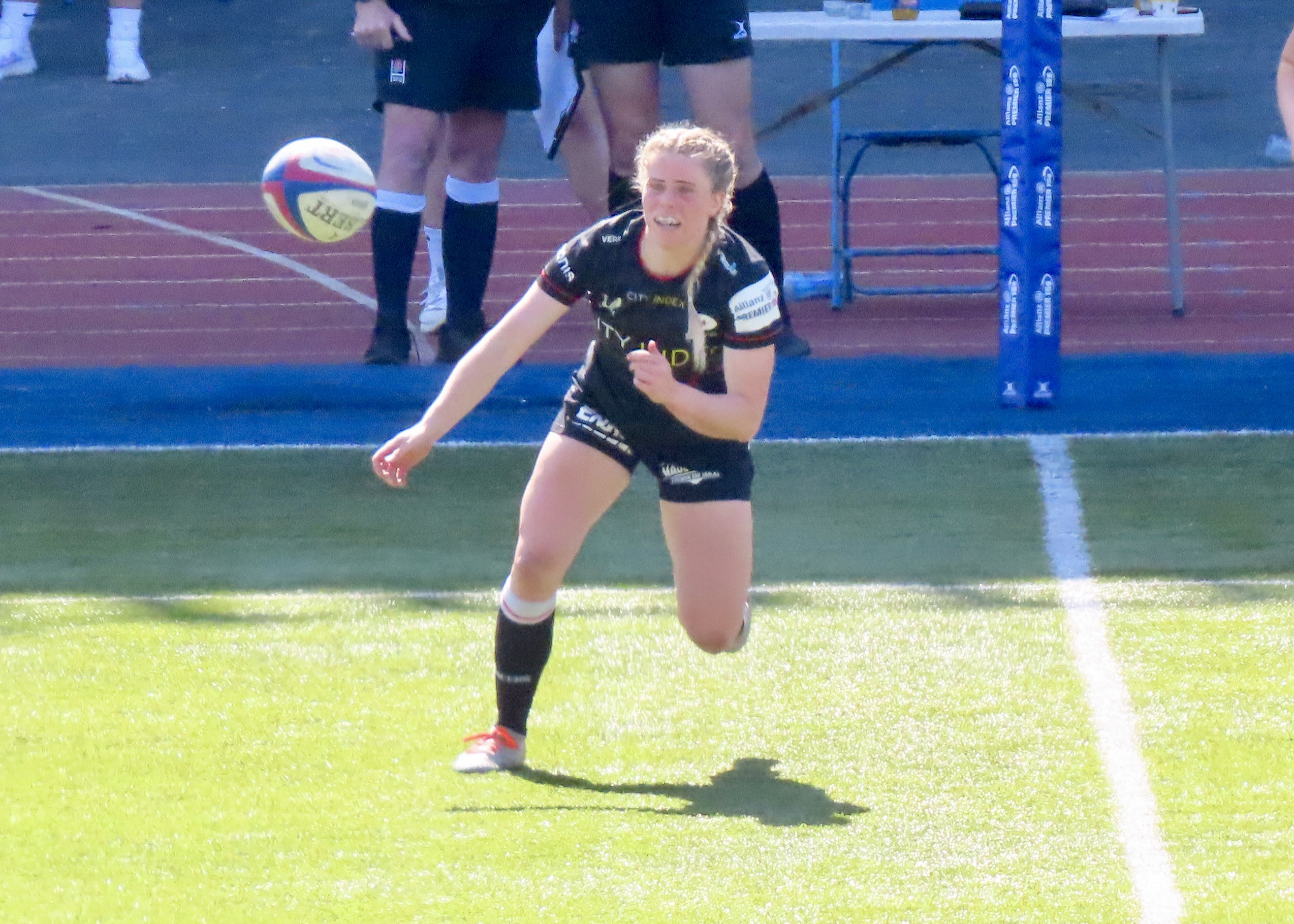 I was very premature with the yellow card scenario, Packer and Cleall left the field on 61 minutes. Holly Aitchison was next on the board for Saracens, this one I don’t have a photo for, the try closed the gap to 2 after the successful conversion. It took something special from someone special to get Saracens over the line. With 2 minutes remaining Alev Kelter who arrived at Saracens this year from America has settled in so well. Her Mum was sitting in front of us and she was giving great support throughout. I’m intrigued to know how this American became a special rugby player.