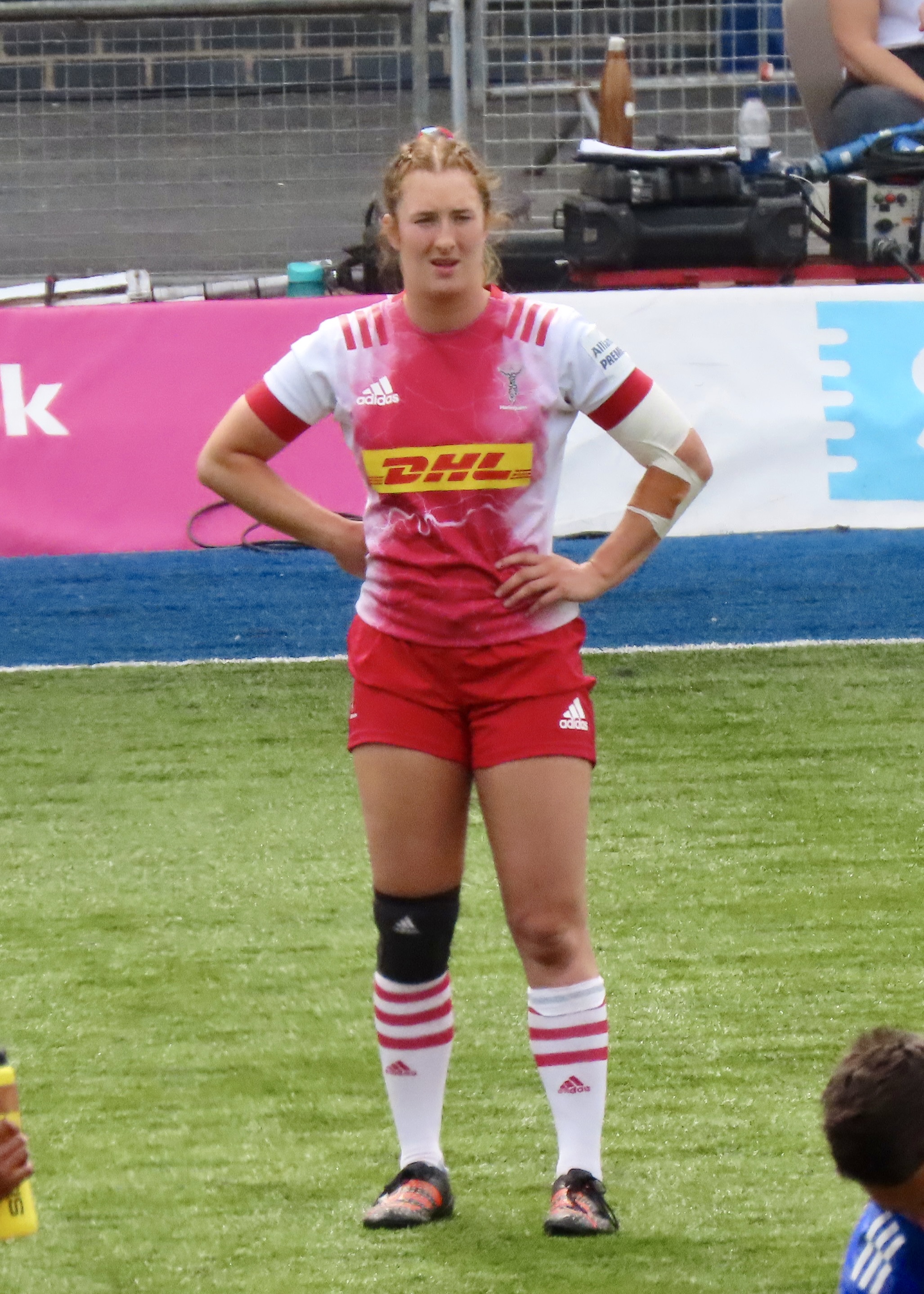 Unfortunately Kelter fell foul of the referee, taking a card for the team after too many infringements close to the line. Quins made the most of the space and Jess Breach scored a minute later. We saw the speed of that back line as Breach and Kildunne combined, but the final pass from Breach was forward.