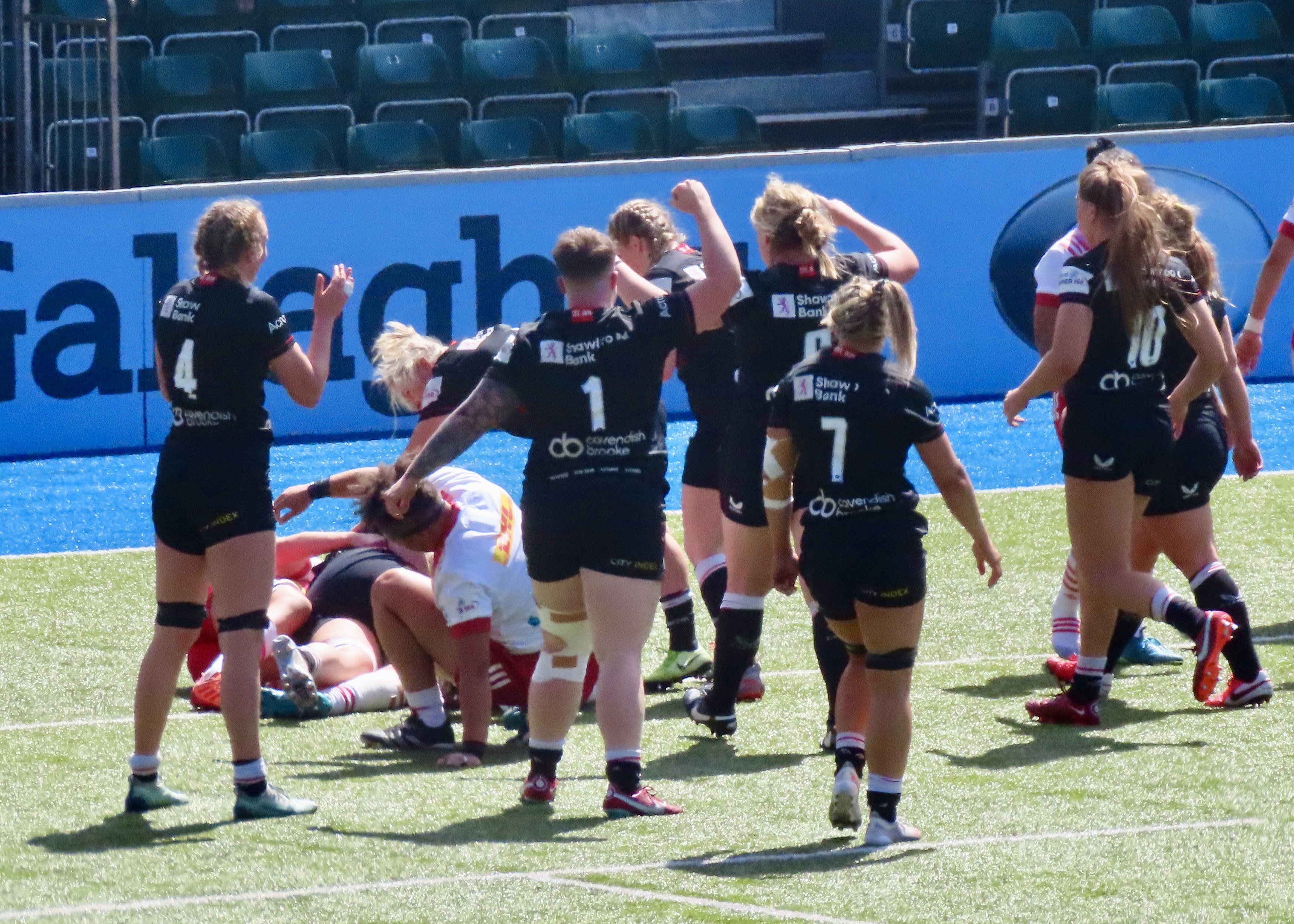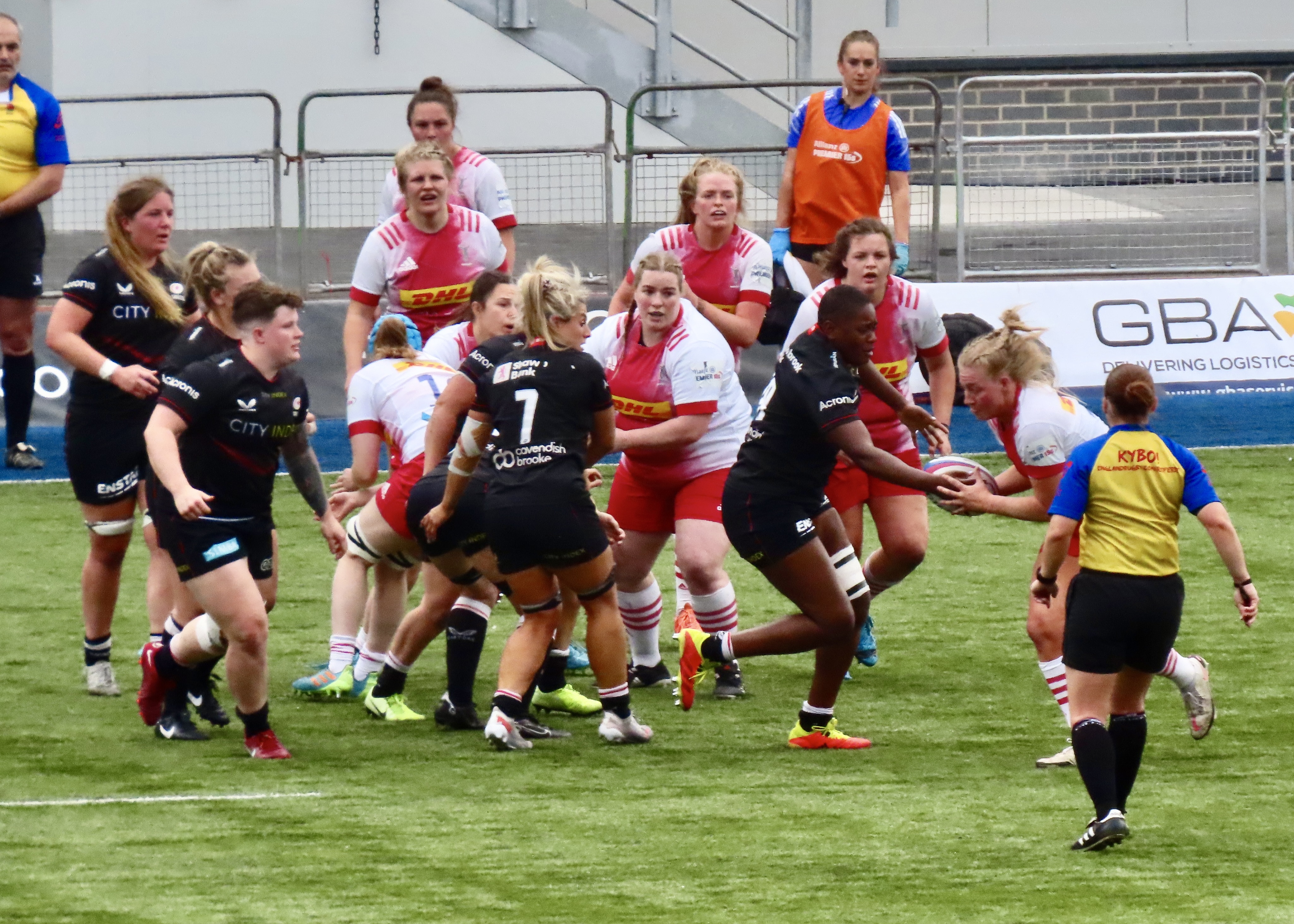A break by Alysha Corrigan was well halted but the ball remained with Saracens and none other than Marlie Packer powered over the line for Sarecens 2nd try. Another top class rugby player, her presence on the pitch is undoubtedly a driving factor for this team. This conversion was a success and Saracens had a lead of 12. Kelter added a penalty in the 27th minute.