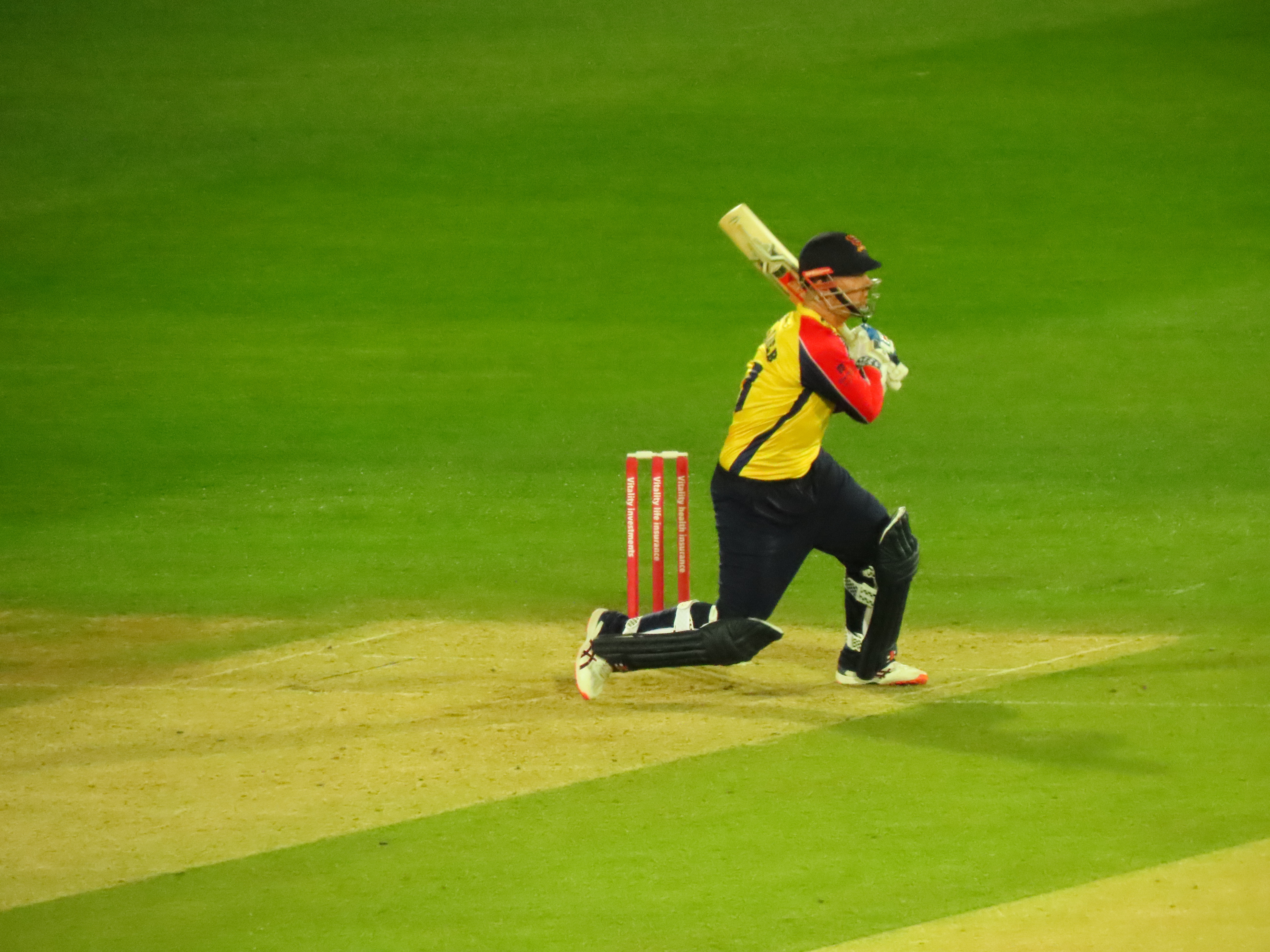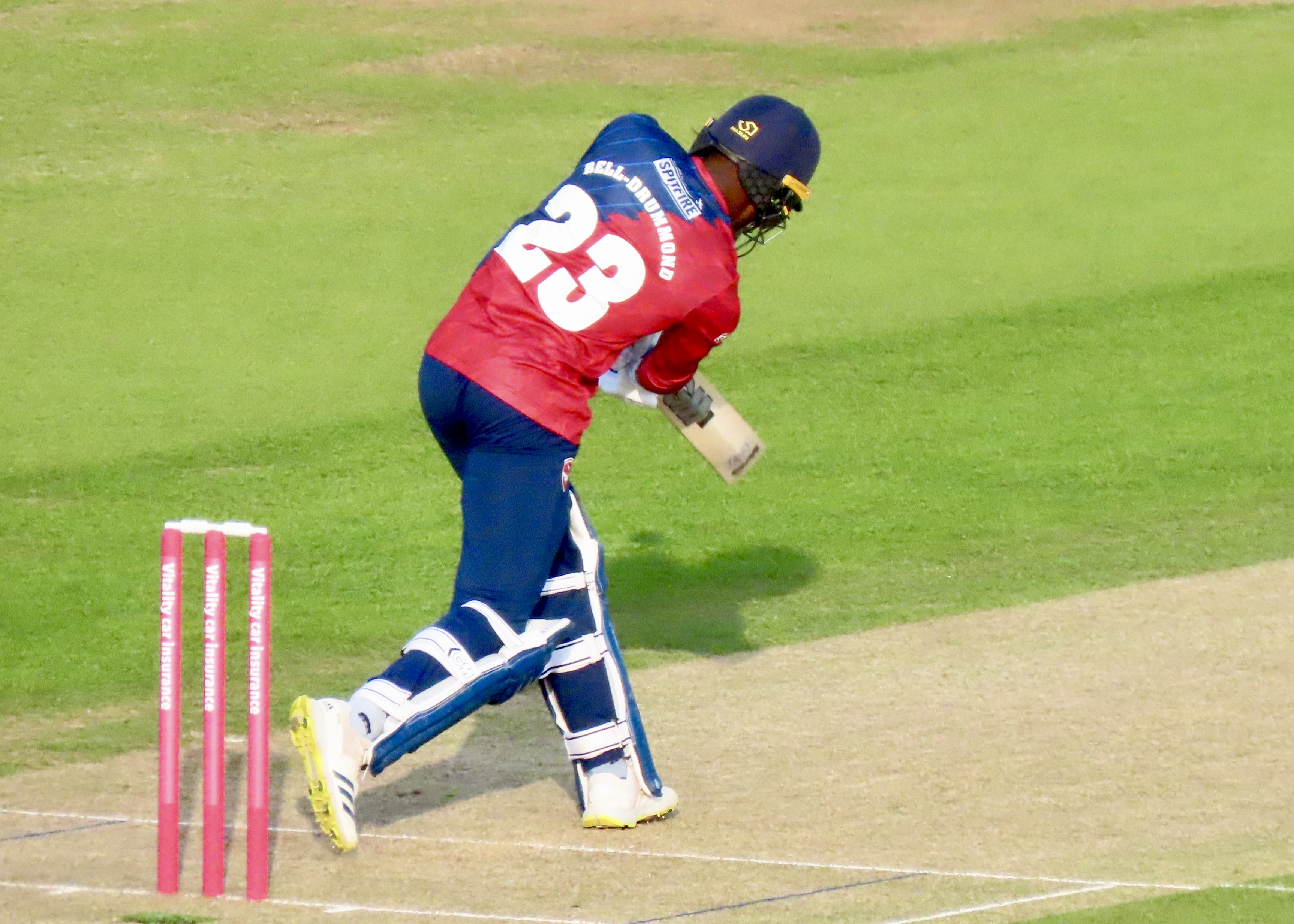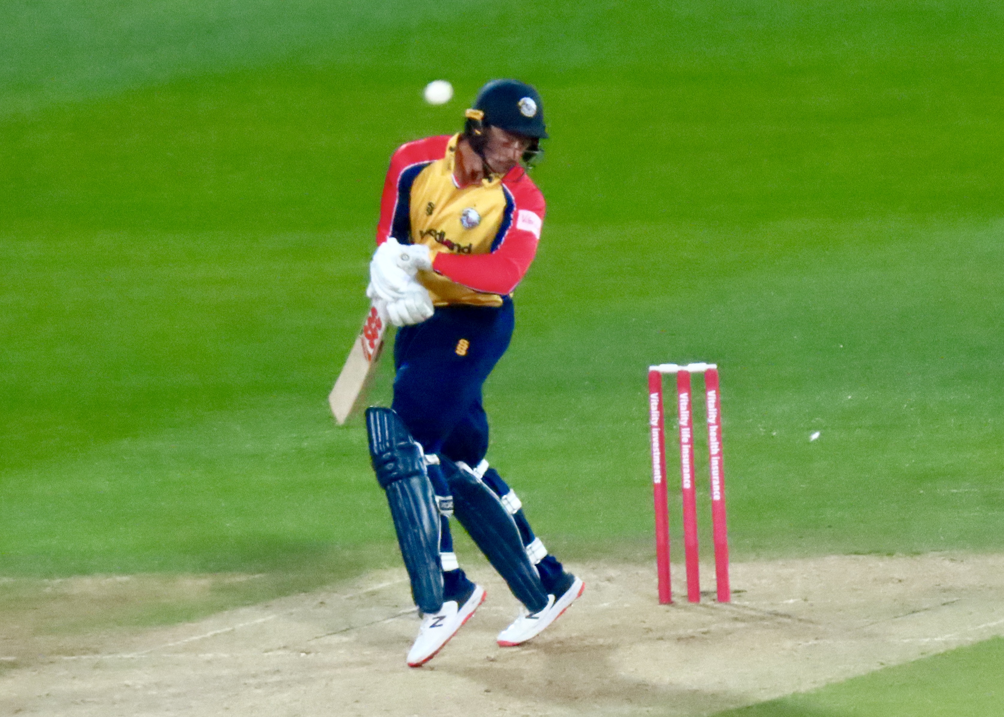 Jack Leaning was next up, and also next into the dressing room as a great Simon Harmer catch from the bowling of Matt Critchley saw him heading back to the dressing rooms after just 4 balls with 2 to his name! George Linde in at 6 hit a quick 23 from 11 balls. Billings was not out 48 from 31 balls and Kent had 184 for 4 from their 20 overs.