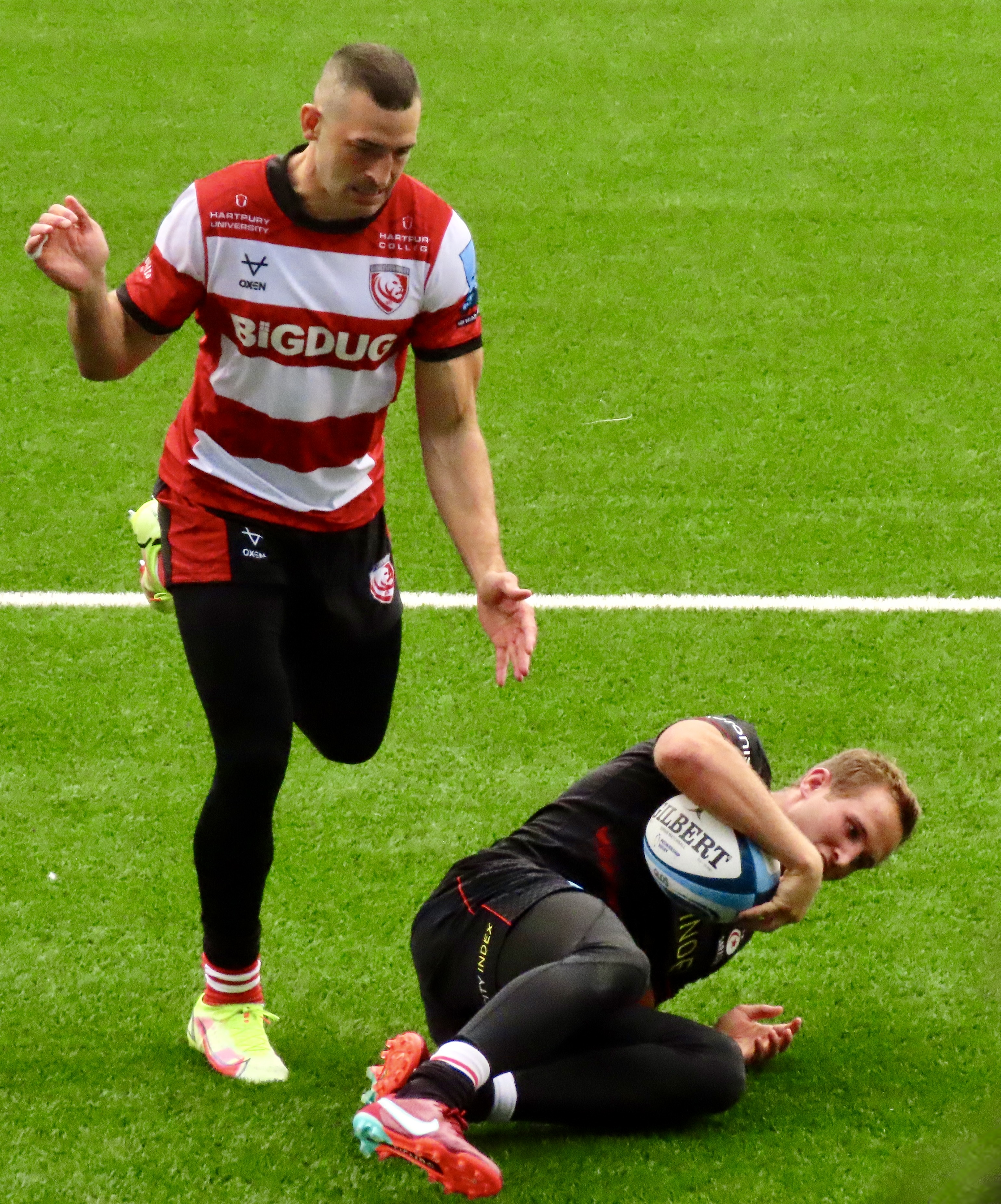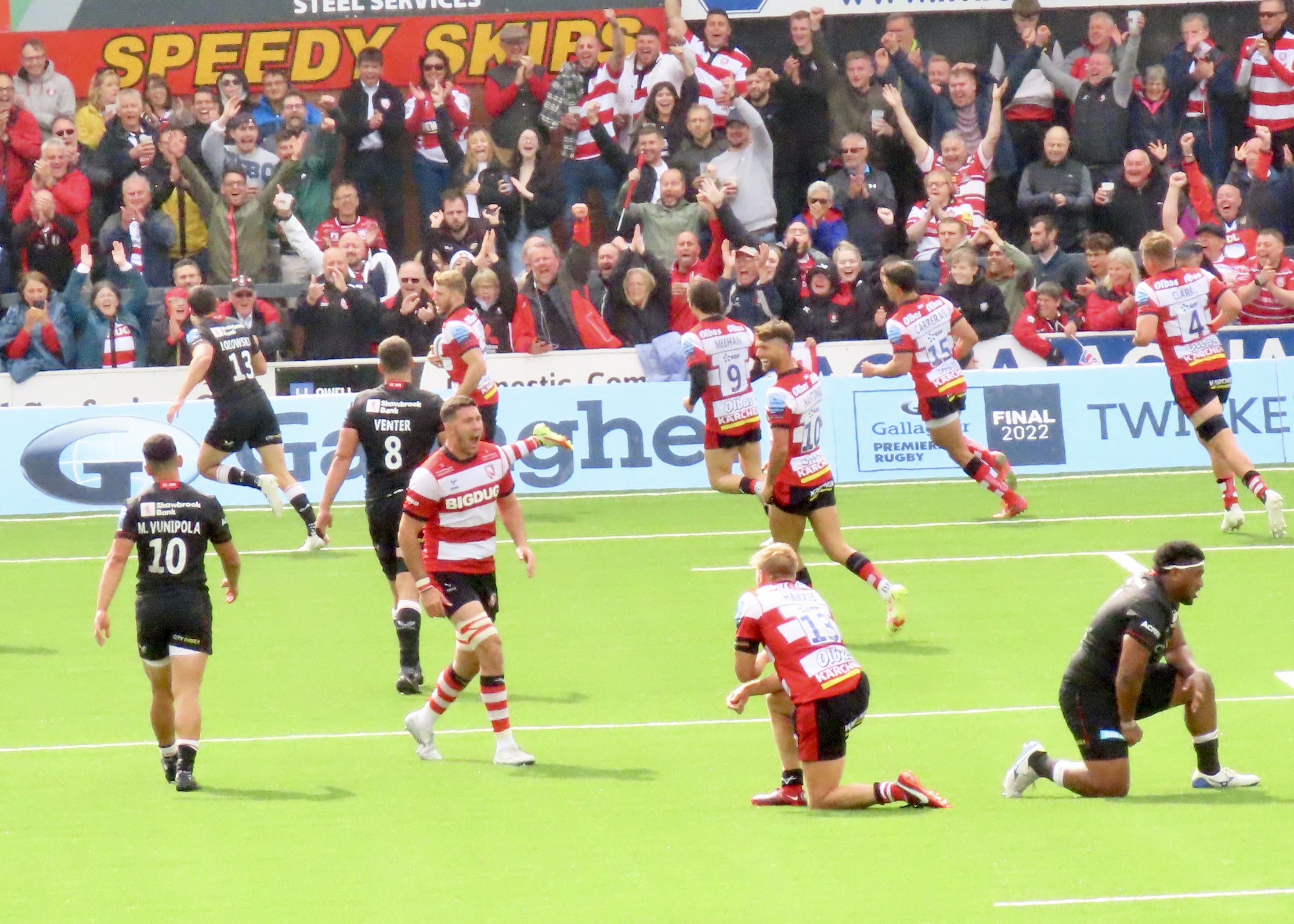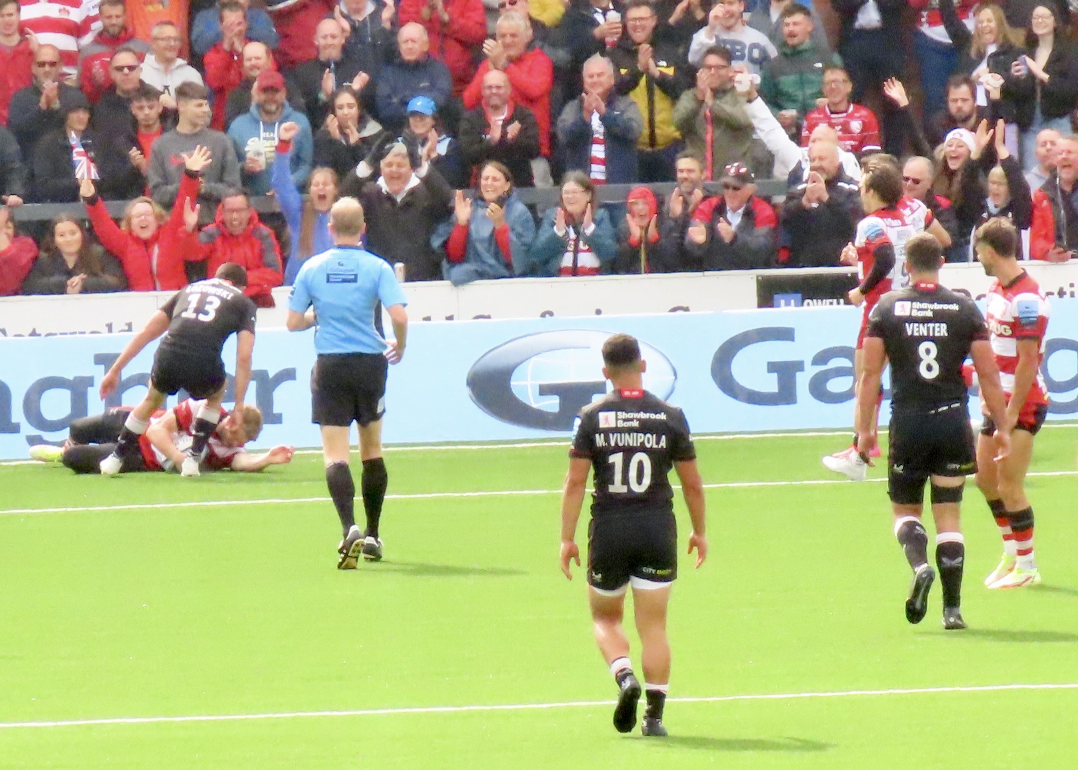 There was something to shout about for the visiting Saracens fans Max Malins scored a try on 59 minutes, it was a shame to hear a few boo’s from the crowd, overall the day was a happy, good humoured one, not something that always happens at Kingsholm as a Saracens fan, perhaps that’s because we often play there on a Friday evening.