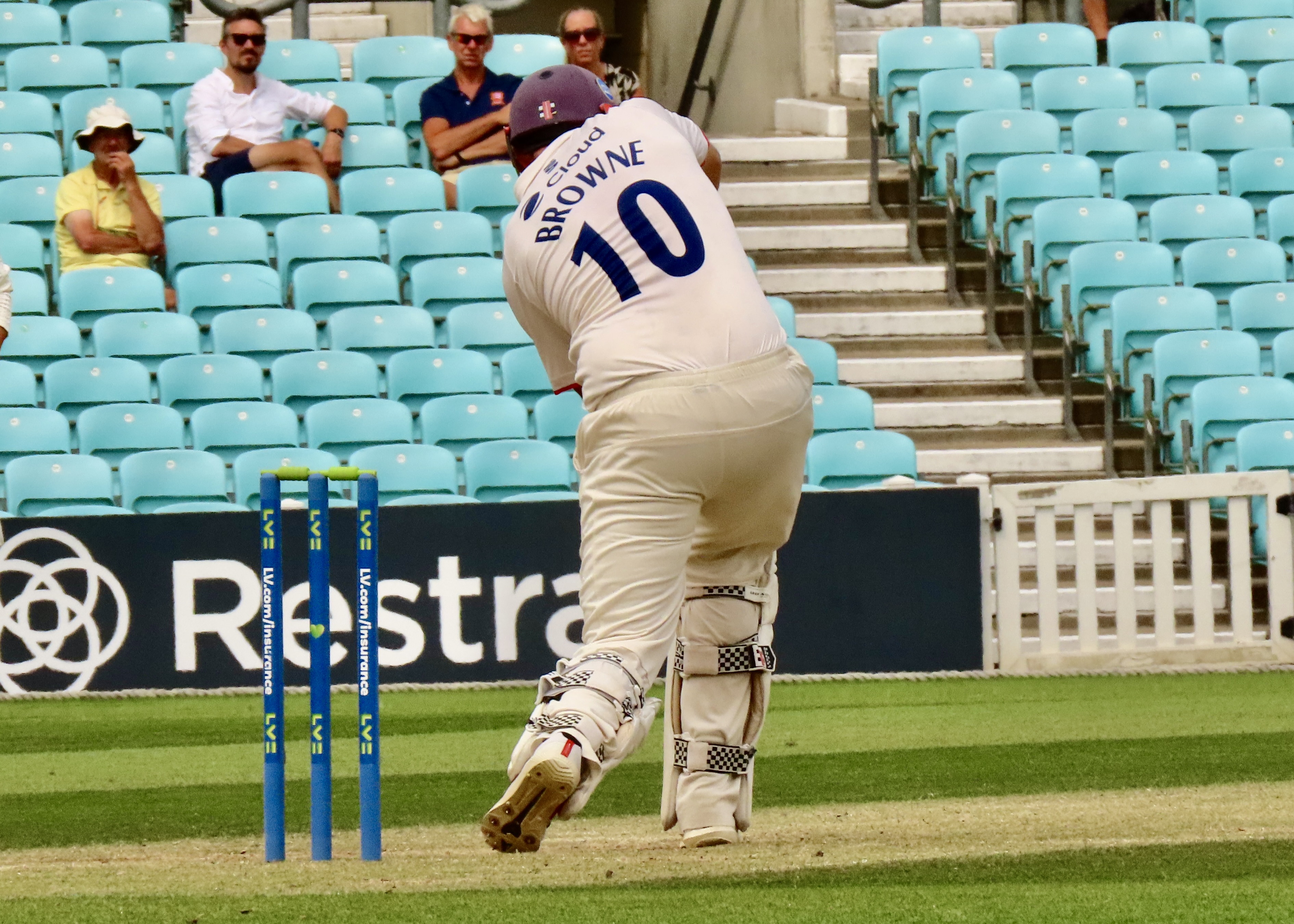 Northants fell to 81 for 4 before Rob Keogh with 54 from 82 balls and keeper Lewis McManus with 61 from 88 got some runs on the board. They were bowled out in 76.3 overs. Indian bowler Washington Sundar took 5 for 76 – he’s some bowler to have at your disposal!