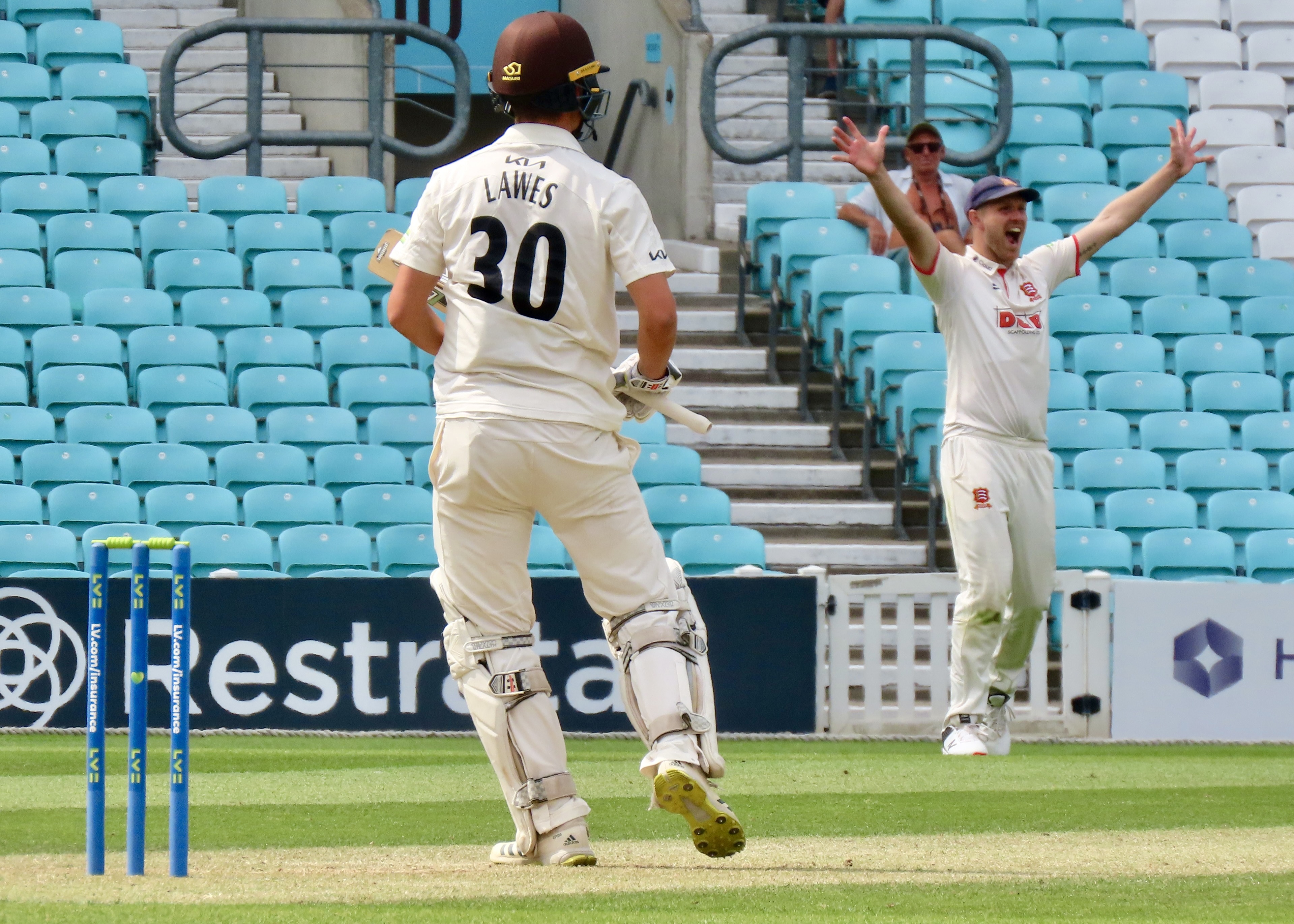 Joe Denly put his team into a good position to get only their 2nd win off the season, as he scored 141 from 269 balls, Jordan Cox who’d top scored in the first innings scored 79 from 150 balls. The wickets were shared between 4 of the 5 bowlers In an innings that lasted 110 overs.