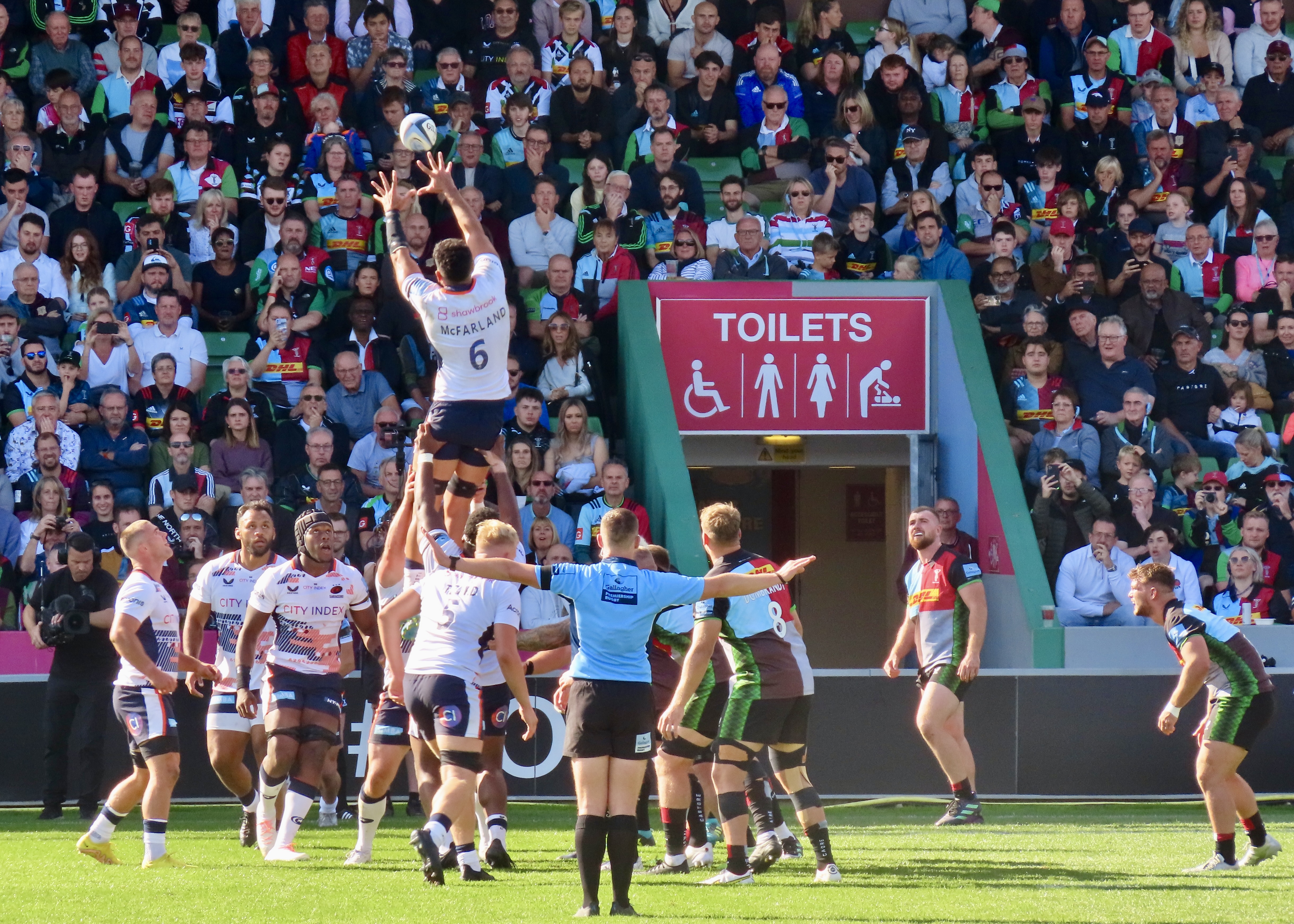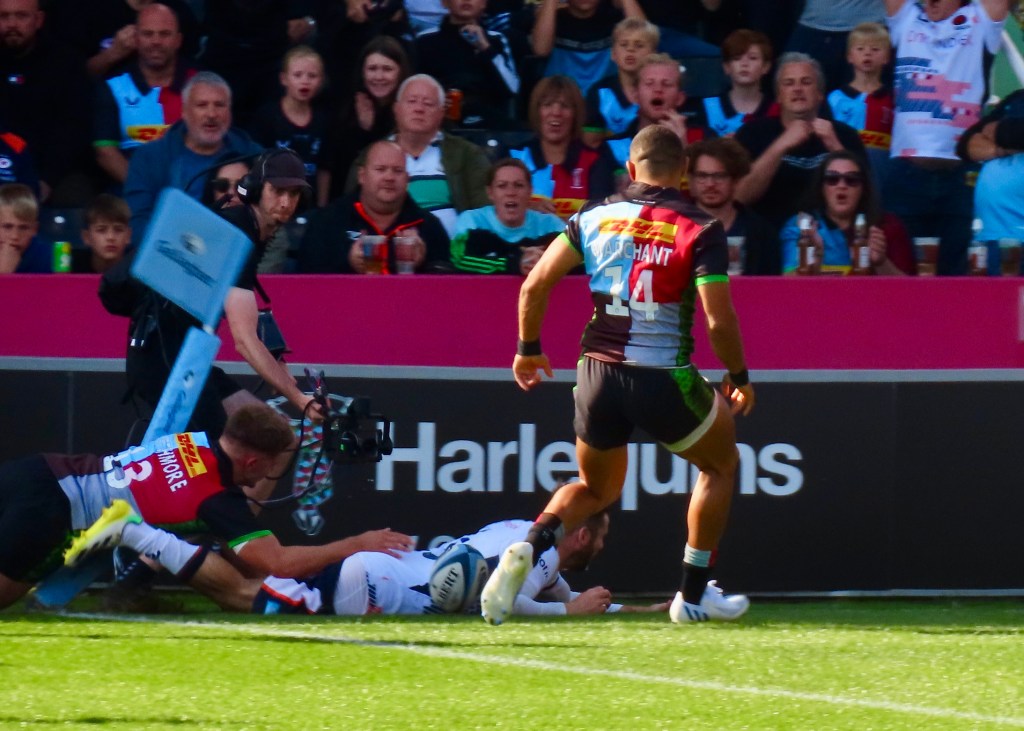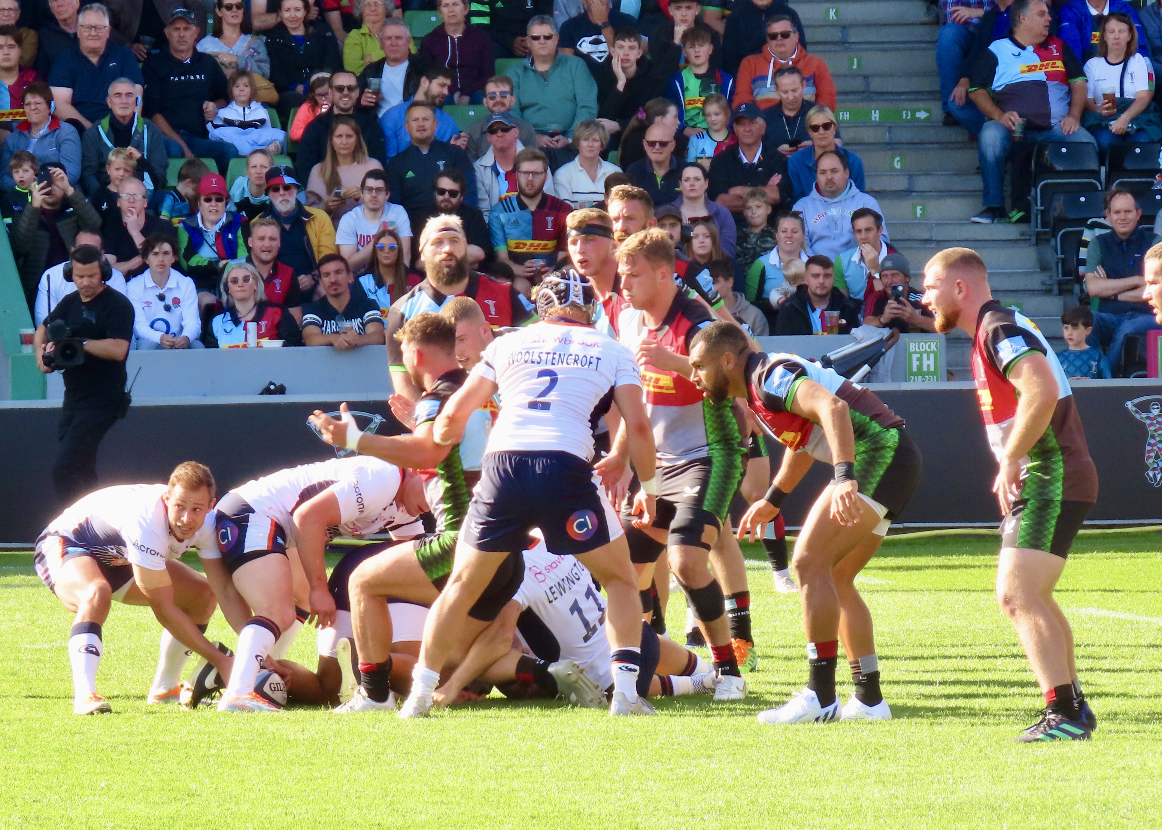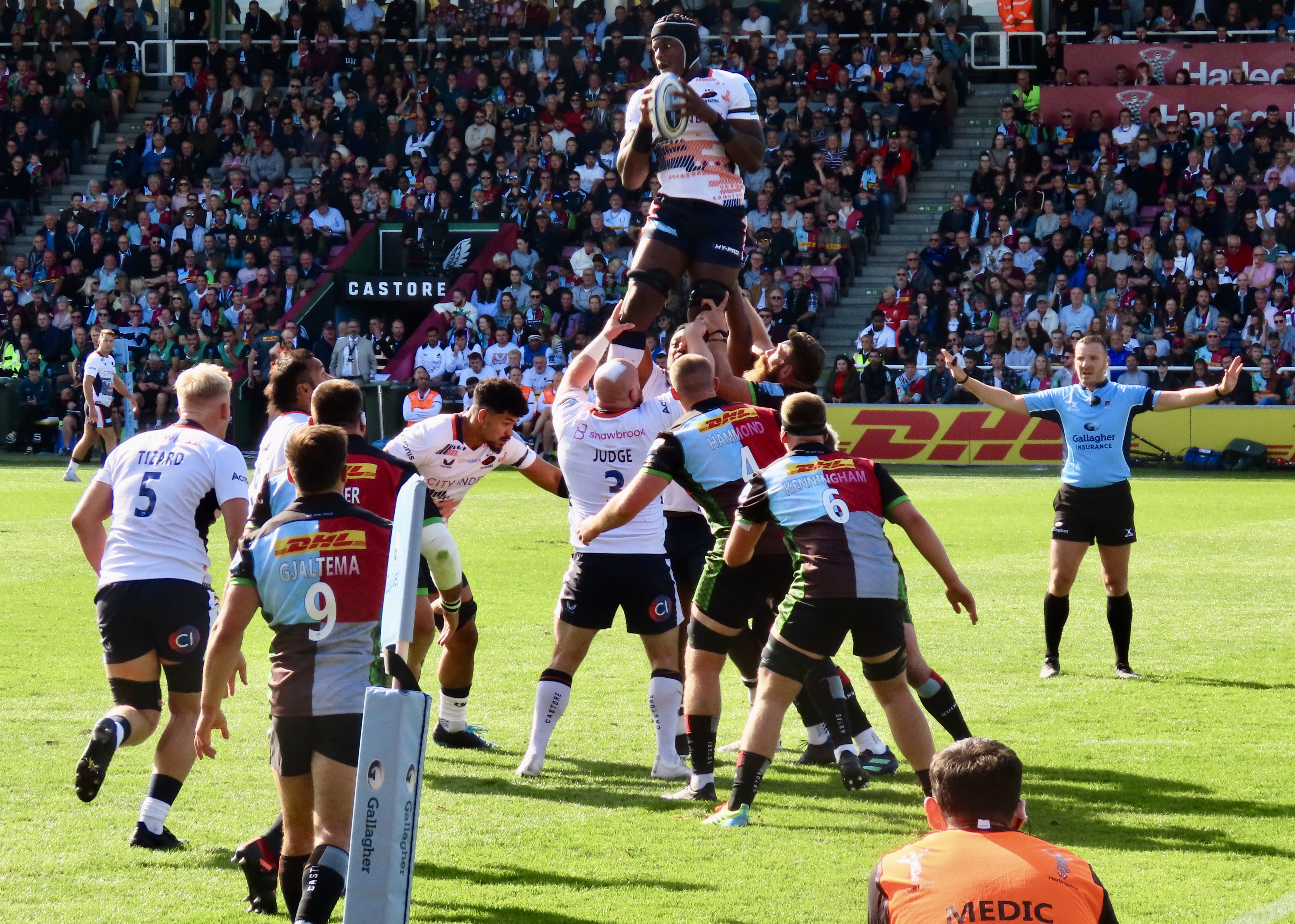 Match 1 of the new Premiership season for Saracens, after they had a bye in week 1, saw them heading to the Stoop, a tough first fixture for Lock Hugh Tizard who’d moved to North London at the end of the season from Harlequins. I can only imagine his mixed emotions! It took me a 2 hour drive to get to Twickenham, where I had a lovely lunch courtesy of friends Nick and Gill, avid Quins fans, my good Quins friends Sue & Henry were there too. It was a delight, and as the only Saracens fan there I only took a bit of stick! The question on why Saracens had all of their England contingent playing, but Quins were denied Marcus Smith; was of course raised. Unlike cricket, my summer choice of sport, England players aren’t centrally contracted, but Quins were still denied their young playmaker. That, must have been galling for Quins management and fans alike. However I’d say Tommaso Allen, the Italy Fly Half wasn’t a bad stand in.