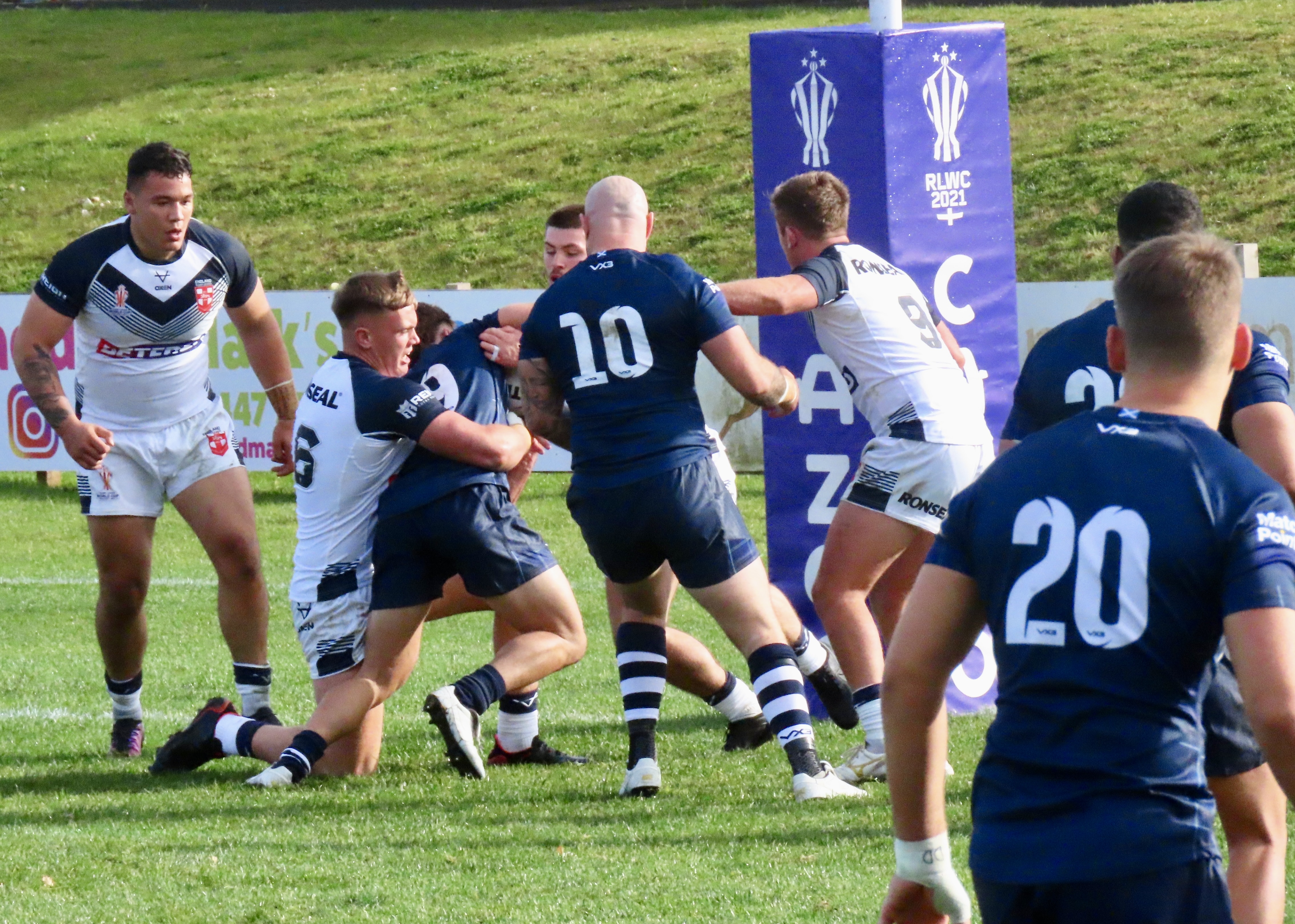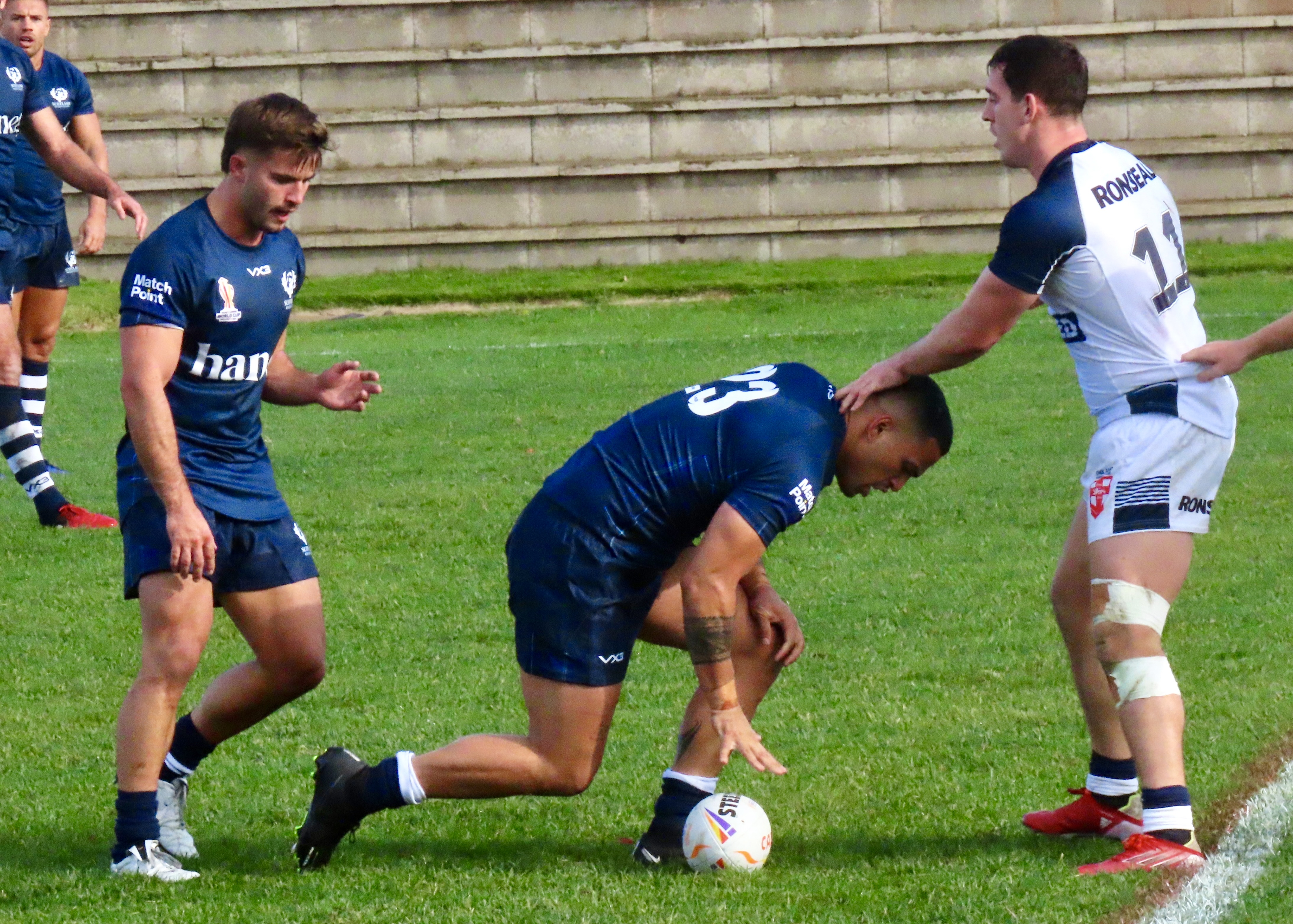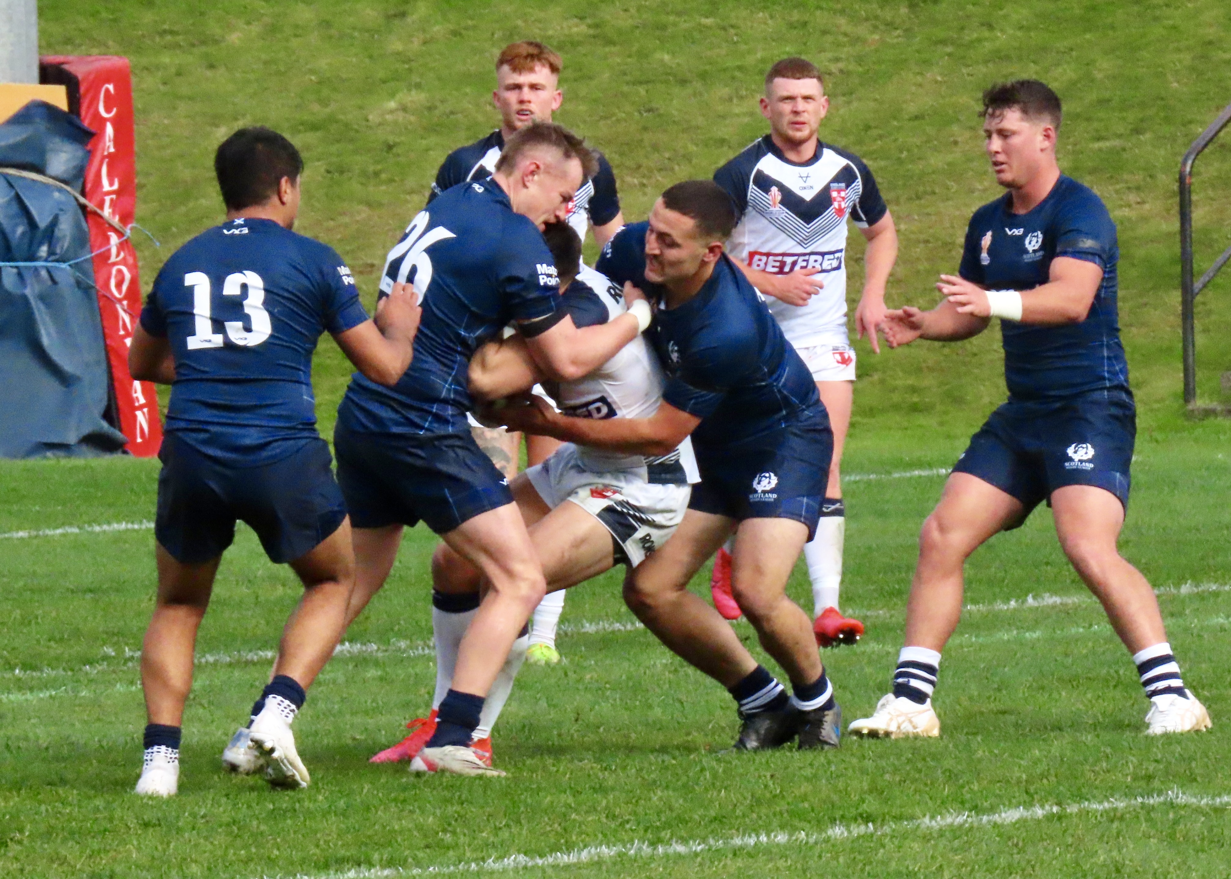 Josh Thewlis was next on the score sheet, he threw a lovely dummy after receiving the ball from the play the ball to dive between the Scotland defenders. That took the score to Scotland 8 England Knights 0, would this be a rout? The England World Cup team had beaten Fiji 50 nil last night. There to support Scotland I hoped not!