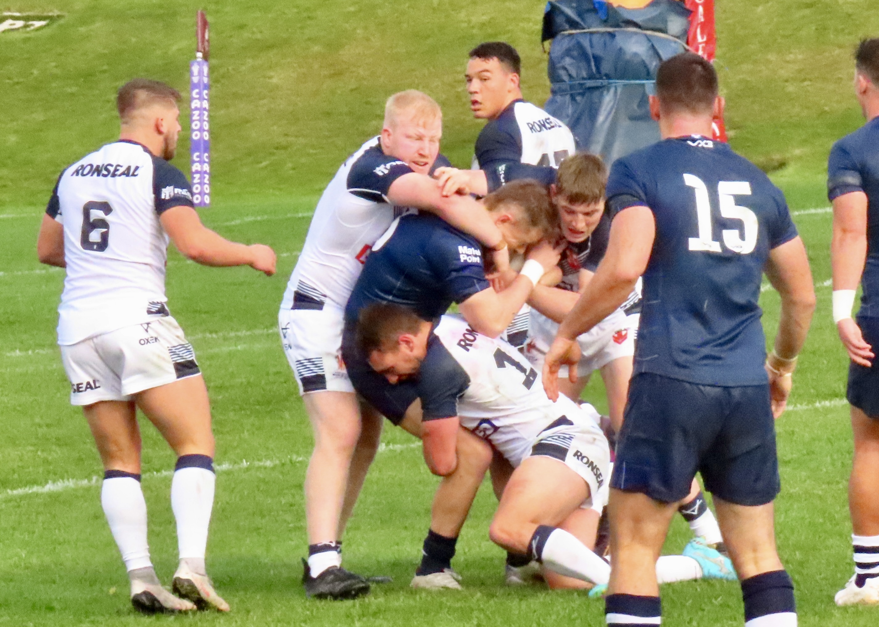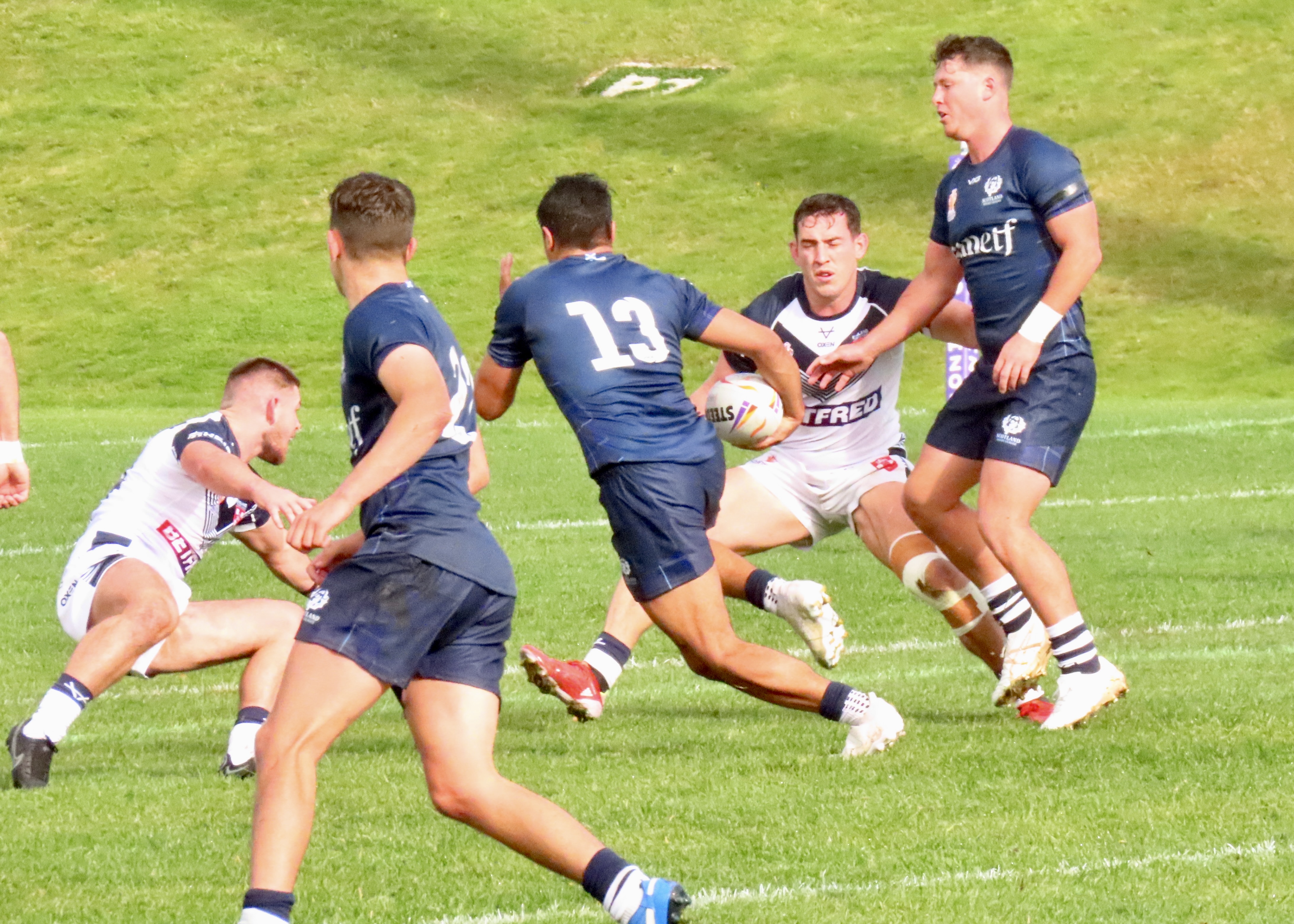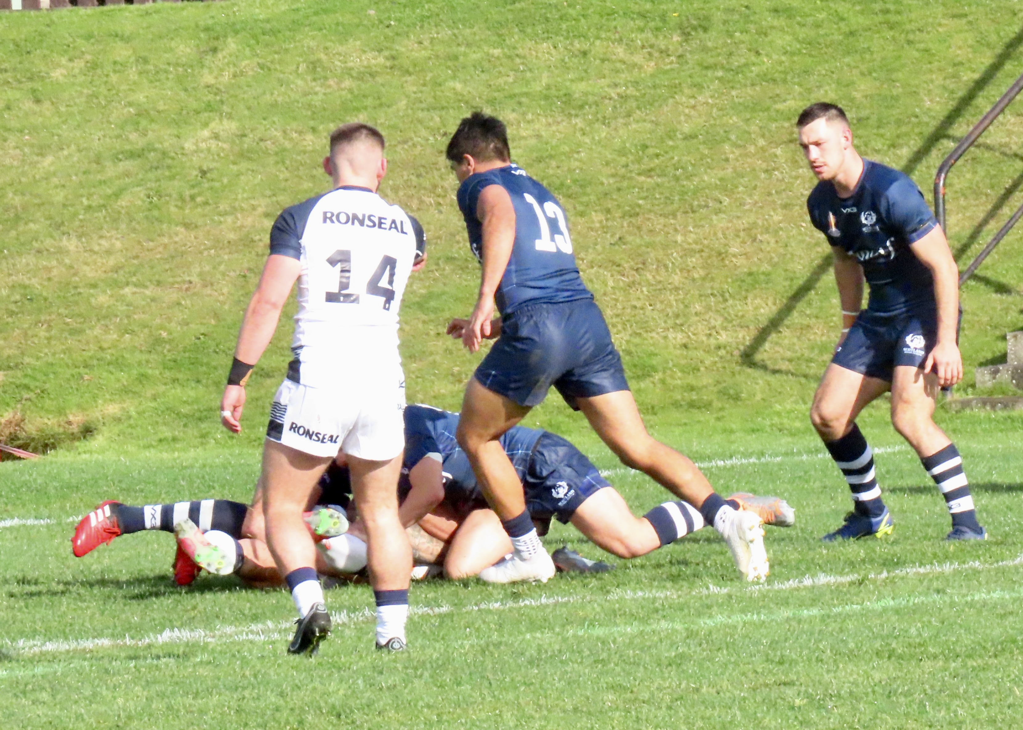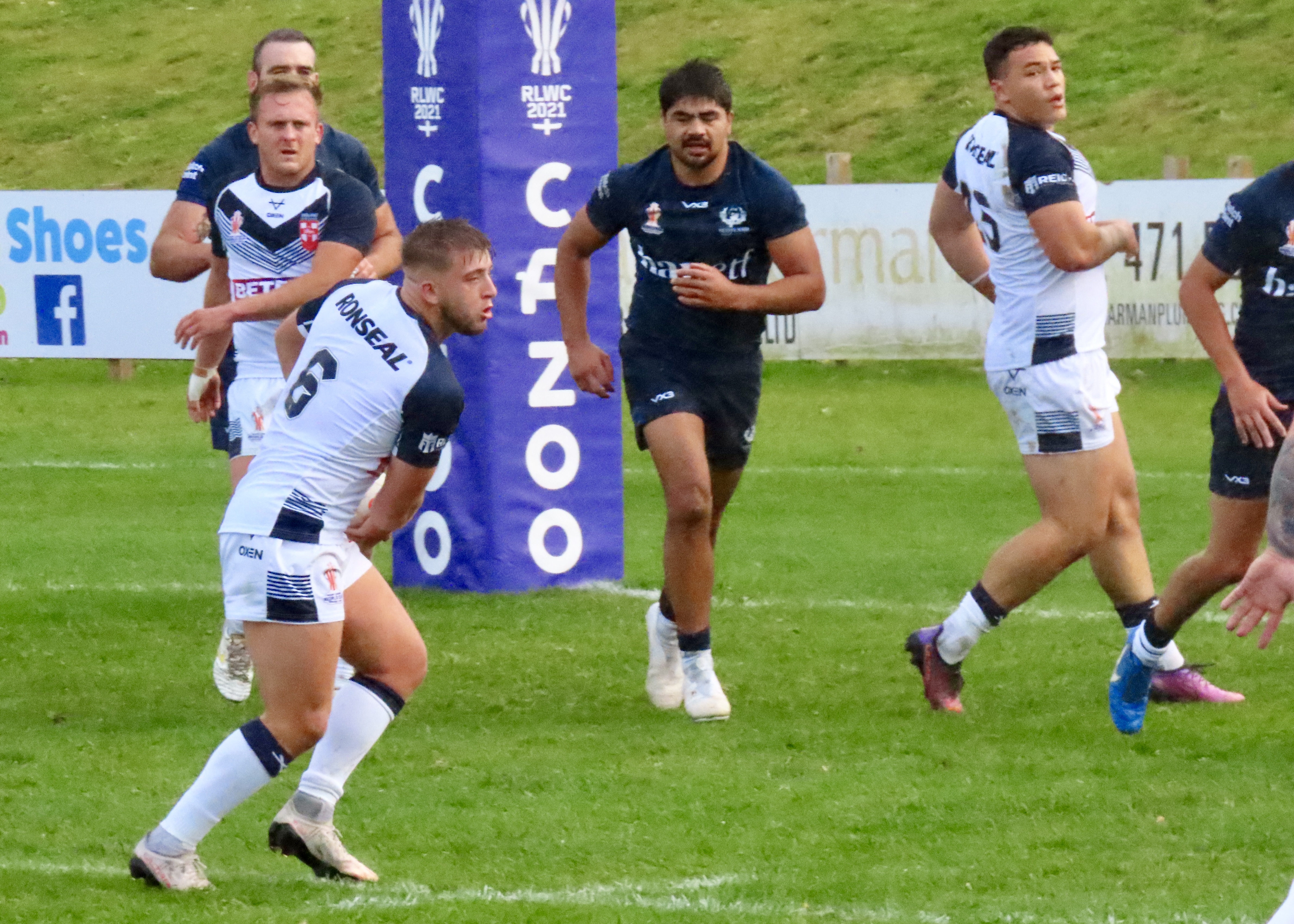 Josh Thewlis was next on the score sheet, he threw a lovely dummy after receiving the ball from the play the ball to dive between the Scotland defenders. That took the score to Scotland 8 England Knights 0, would this be a rout? The England World Cup team had beaten Fiji 50 nil last night. There to support Scotland I hoped not!