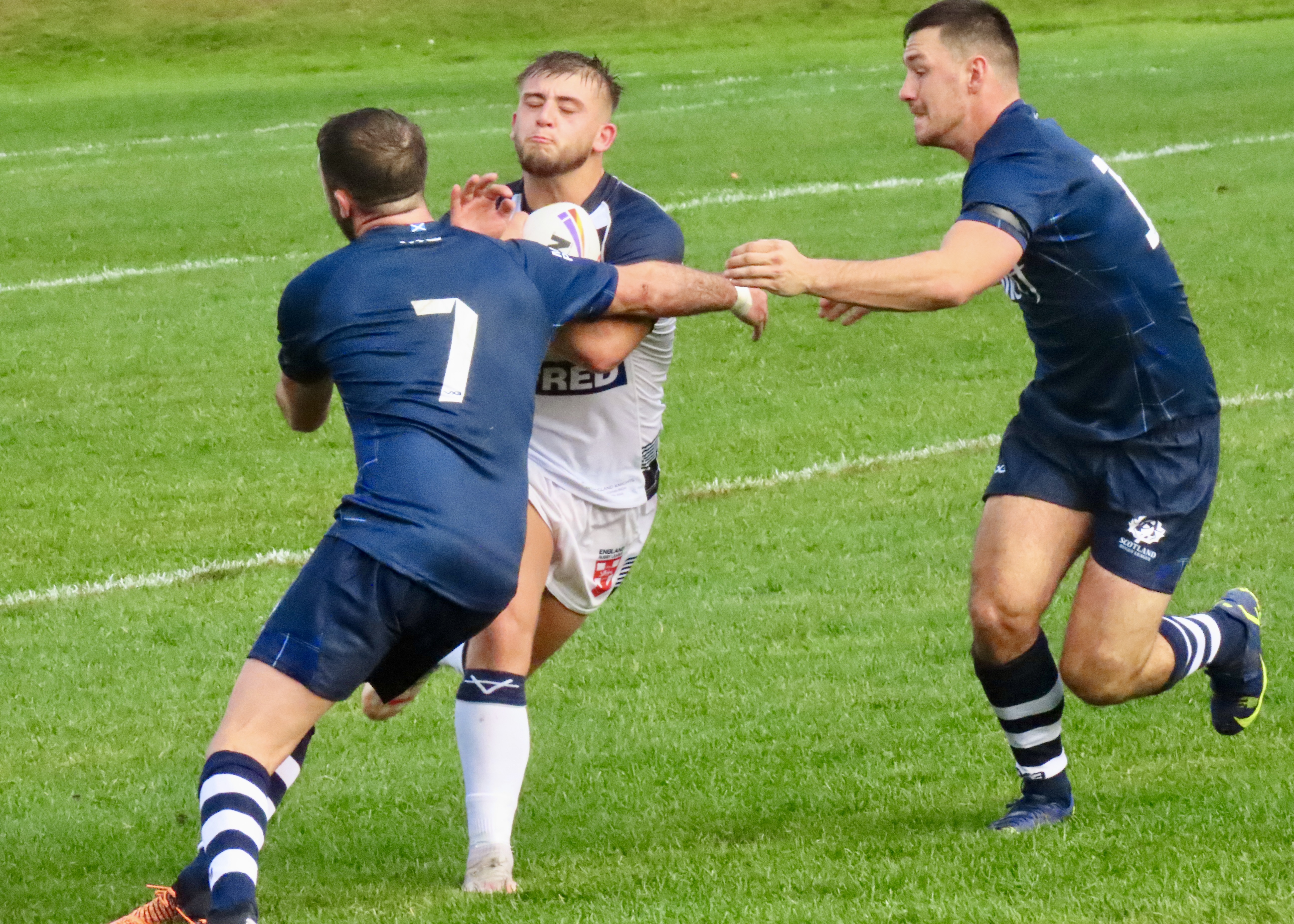 England Knights had the last word through Jez Litten who backed himself to run in a good try, he ran through a few tired Scotland defenders who’d given their all throughout the game. The final score was Scotland 4 England Knights 28. A deserved win for this young England team and a positive run out for Scotland before they face Italy in Newcastle next Sunday.