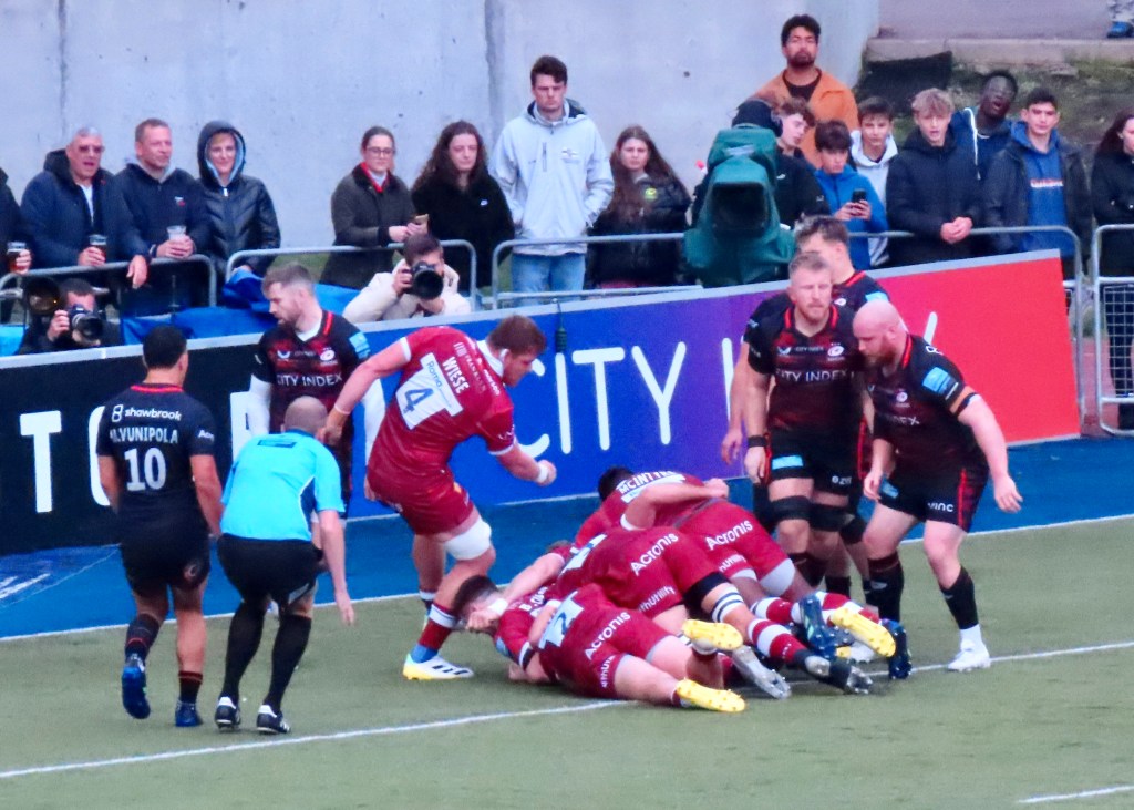 Sale’s penalty try happened in the 15th minute, their next score was Joe Carpenter’s try on 61 minutes, a great kick from Sam James to the Saracens corner saw some better decision making as the ball went our to Carpenter on the wing. they’d eschewed a similar opportunity against 13 men. The conversion was good taking the score to Saracens 26 Sale Sharks 22.